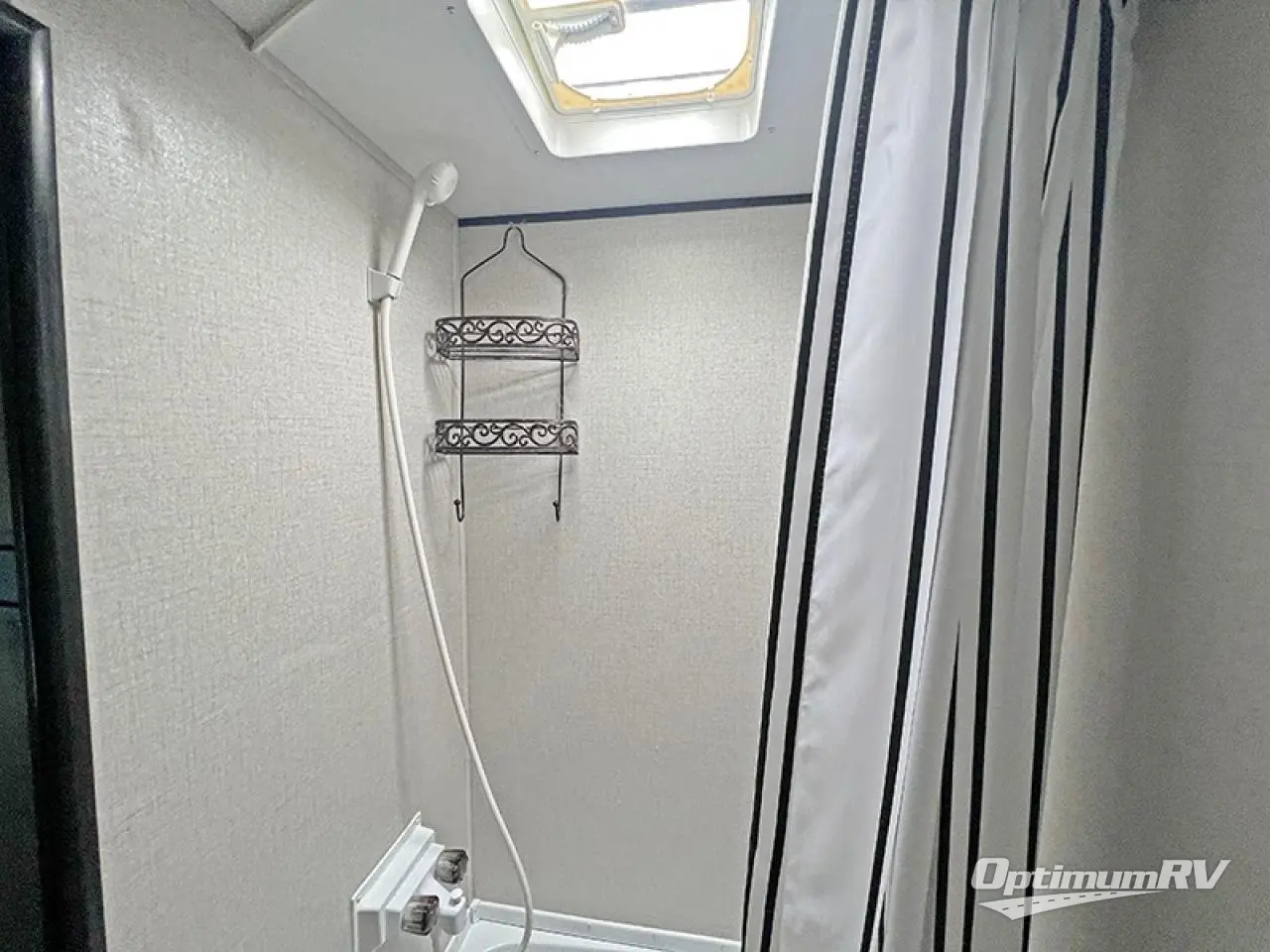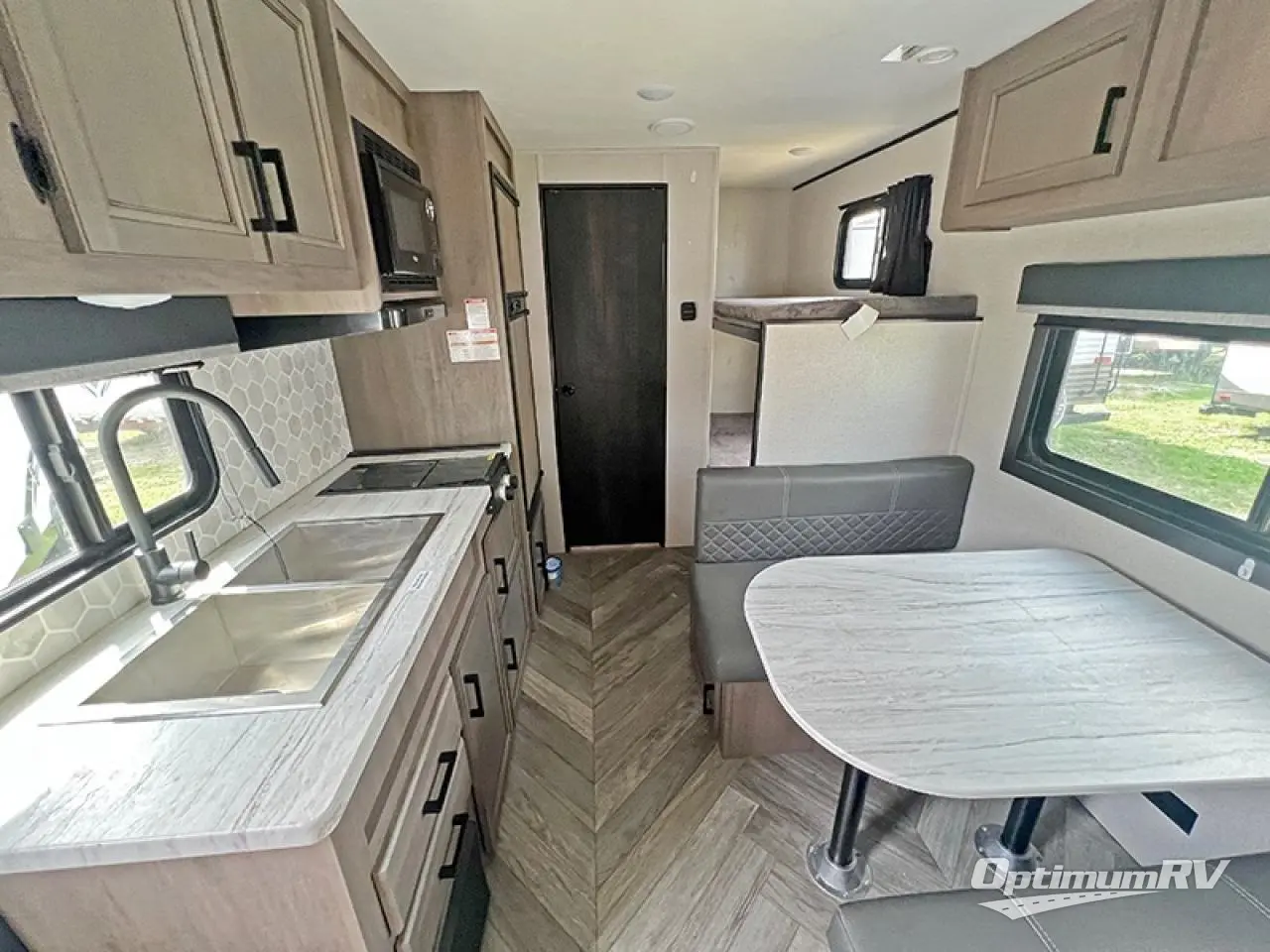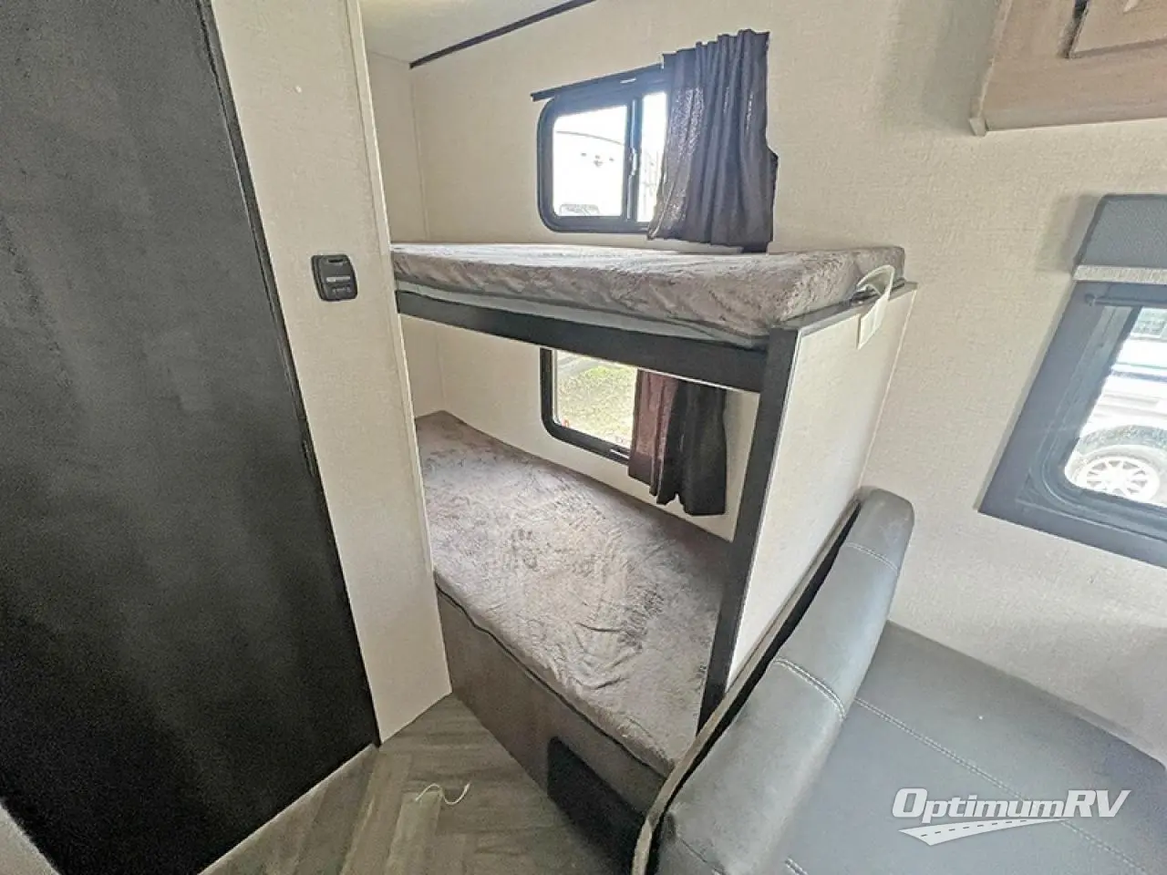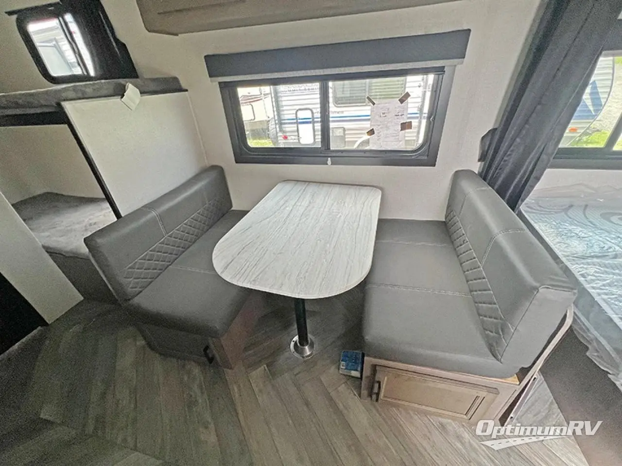 This Olympia Sport travel trailer will be your family's new favorite friend! This trailer can sleep five people because of the bunk beds, booth dinette, and front bed. It also provides you with a bathroom so that you stay clean, and there is a kitchen with all of the amenities needed to create dinner. You have a microwave for easy meals or fast snacks, a 6-cubic foot refrigerator for storing your milk and eggs, and a two-burner range for sautéing some veggies. As you sit outside underneath the 13' power awning, you'll be able to use the marine-grade exterior speakers to listen to the AM/FM/Bluetooth radio, and there is an exterior storage compartment for your gear.
