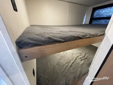 The cook is going to enjoy having choices for every meal, whether to use the full kitchen amenities inside or the outdoor kitchen while visiting with others relaxing under the 13' power awning. With the inclusion of a walk-around queen bed in the front bedroom, plus the sofa and booth dinette in the combined kitchen and living area, and the double-size bunks next to the bathroom sink and private toilet and toilet room, there is plenty of room to sleep eight or nine people each night. And the power awnings plus outdoor speakers give you an additional living area for everyone.