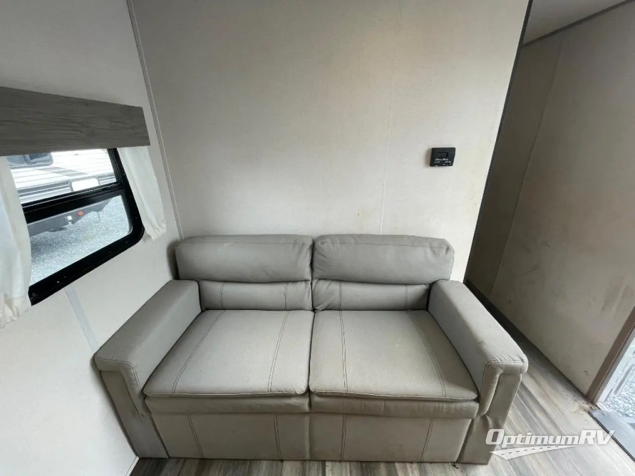 With any Avenger or Avenger LE travel trailer by Prime Time, the exterior includes an aerodynamic radius front profile, a diamond plate front rock guard for protection on the road, a power tongue jack for easy setup, and four stabilizer jacks. There is an aluminum exterior skin, a walk-on roof with decking, and an Extreme Weather package plus enclosed underbelly. The interior offers a 13,500 BTU air conditioner for the perfect climate inside, in-floor ducted heat, a systems monitor panel, and a Bluetooth entertainment system plus more depending on the travel trailer you choose to begin your outdoor adventure with.