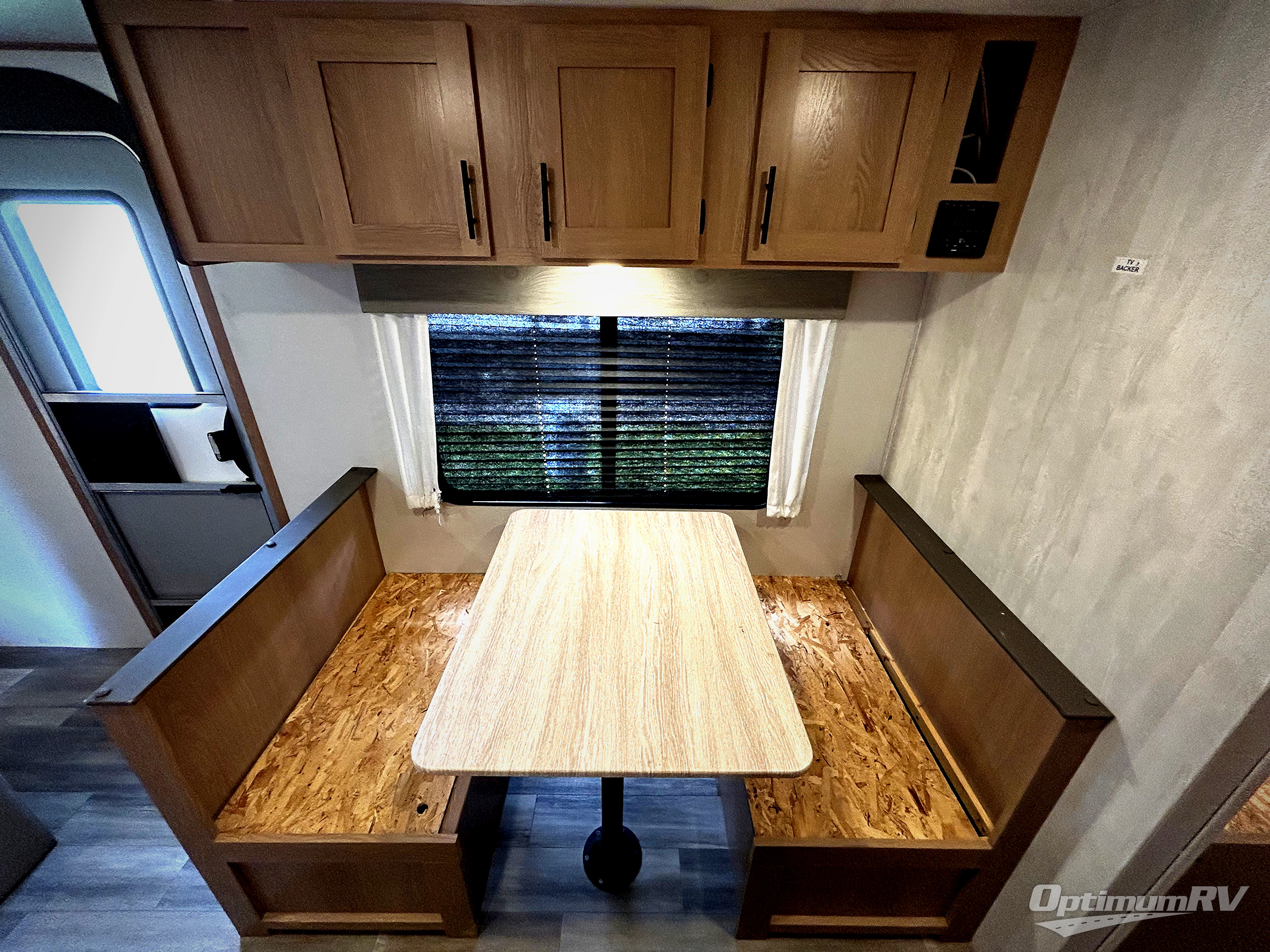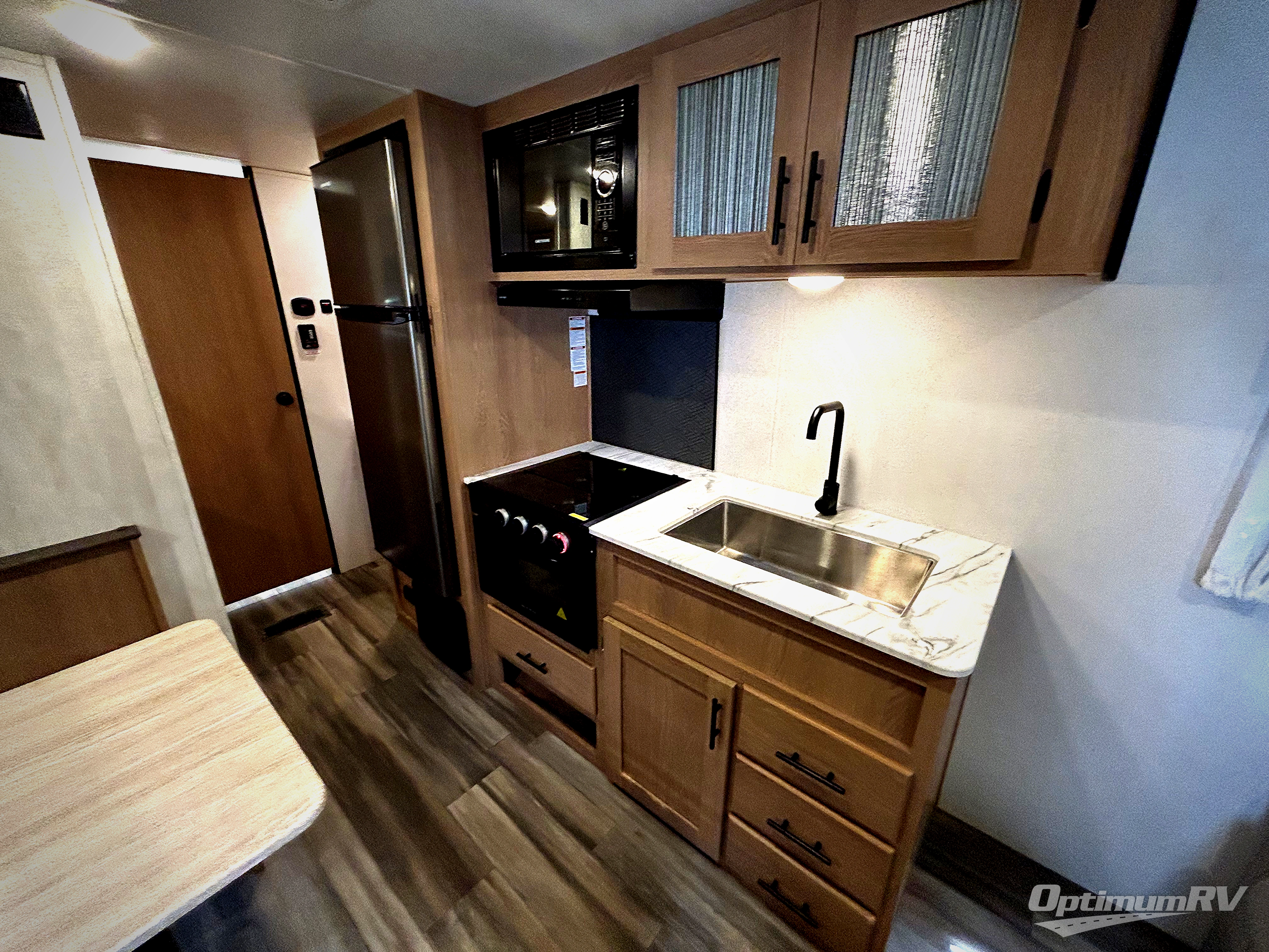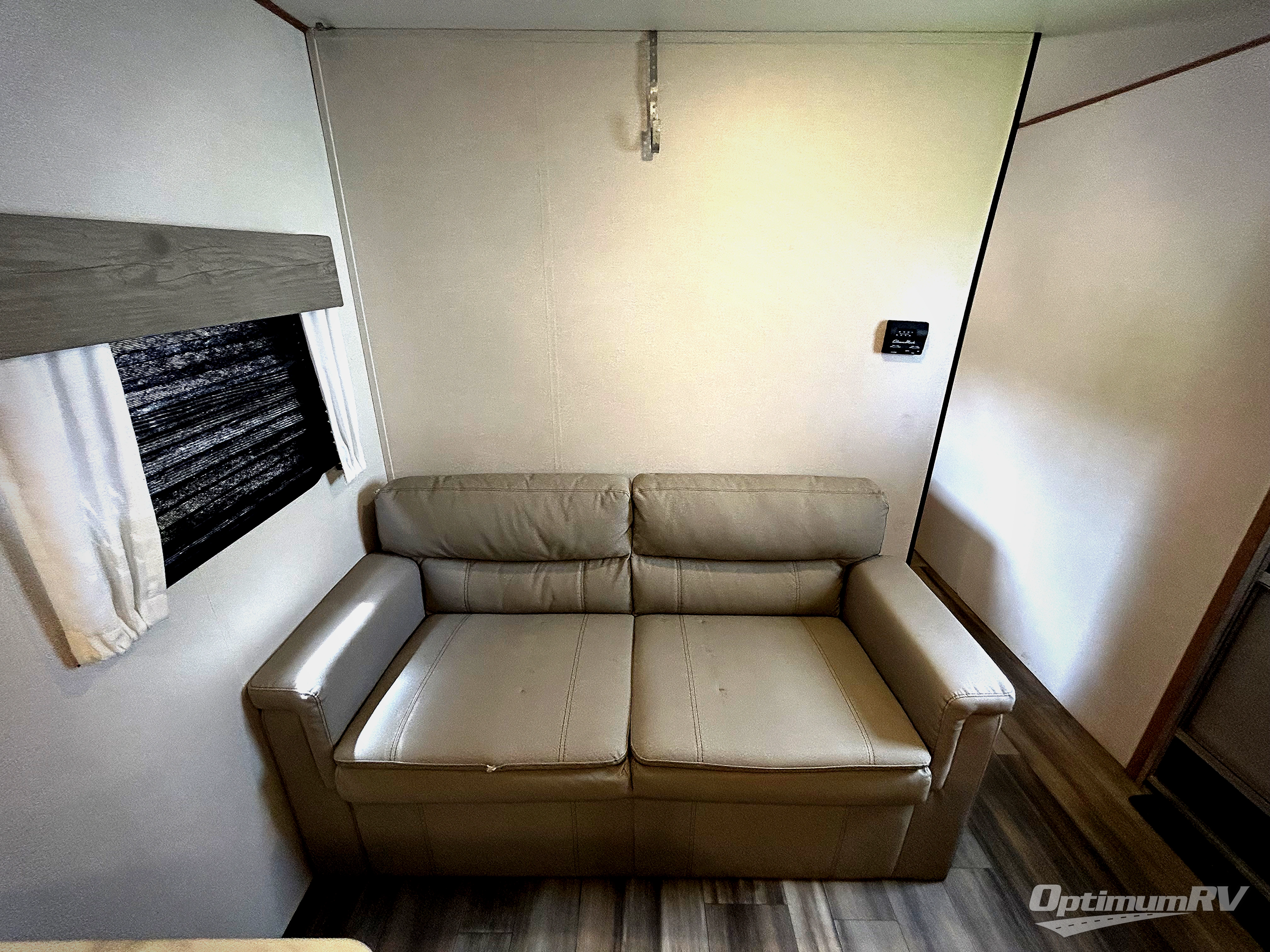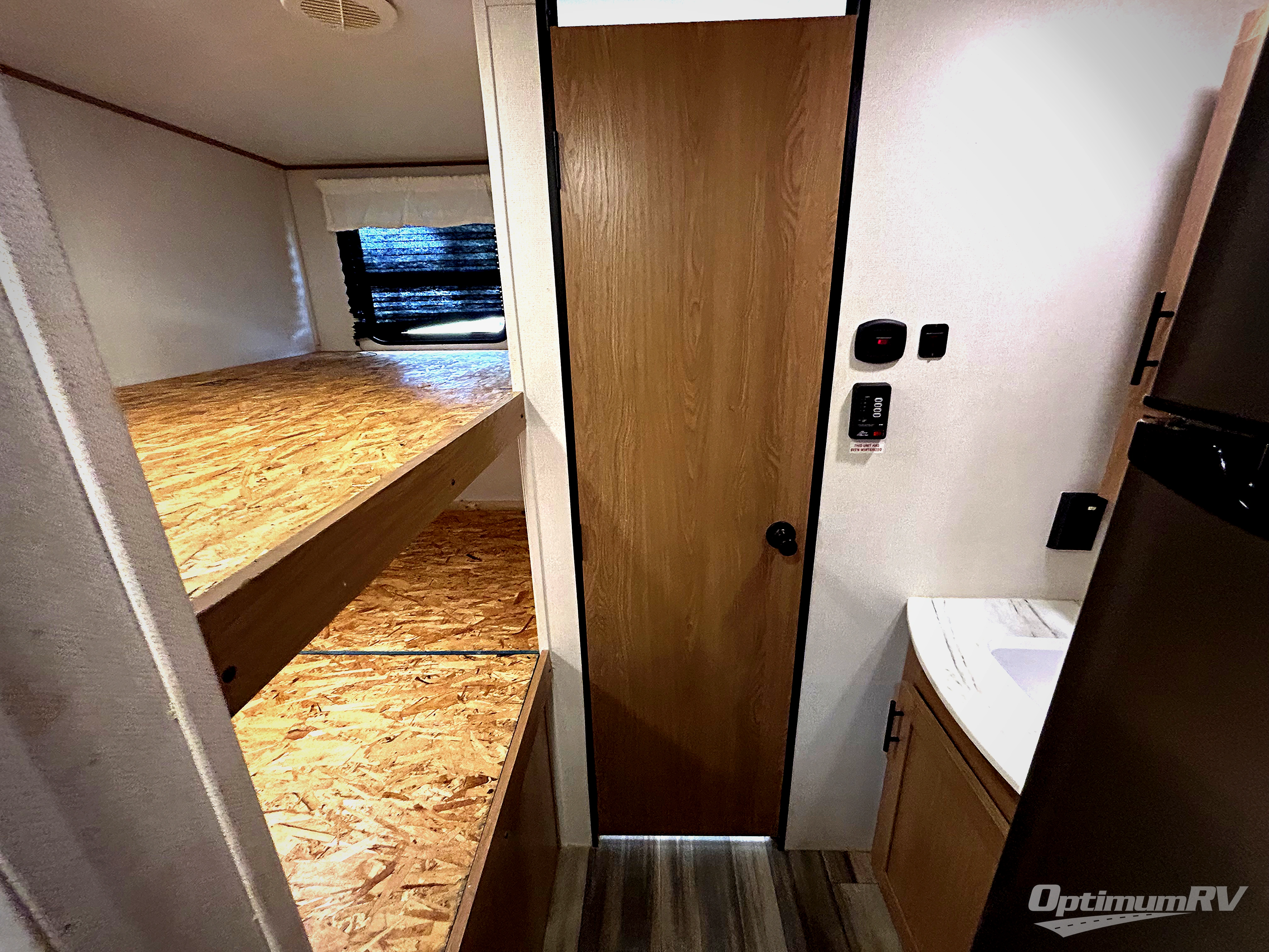 The cook is going to enjoy having choices for every meal, whether to use the full kitchen amenities inside or the outdoor kitchen while visiting with others relaxing under the 13' power awning. With the inclusion of a walk-around queen bed in the front bedroom, plus the sofa and booth dinette in the combined kitchen and living area, and the double-size bunks next to the bathroom sink and private toilet and toilet room, there is plenty of room to sleep eight or nine people each night. And the power awnings plus outdoor speakers give you an additional living area for everyone.