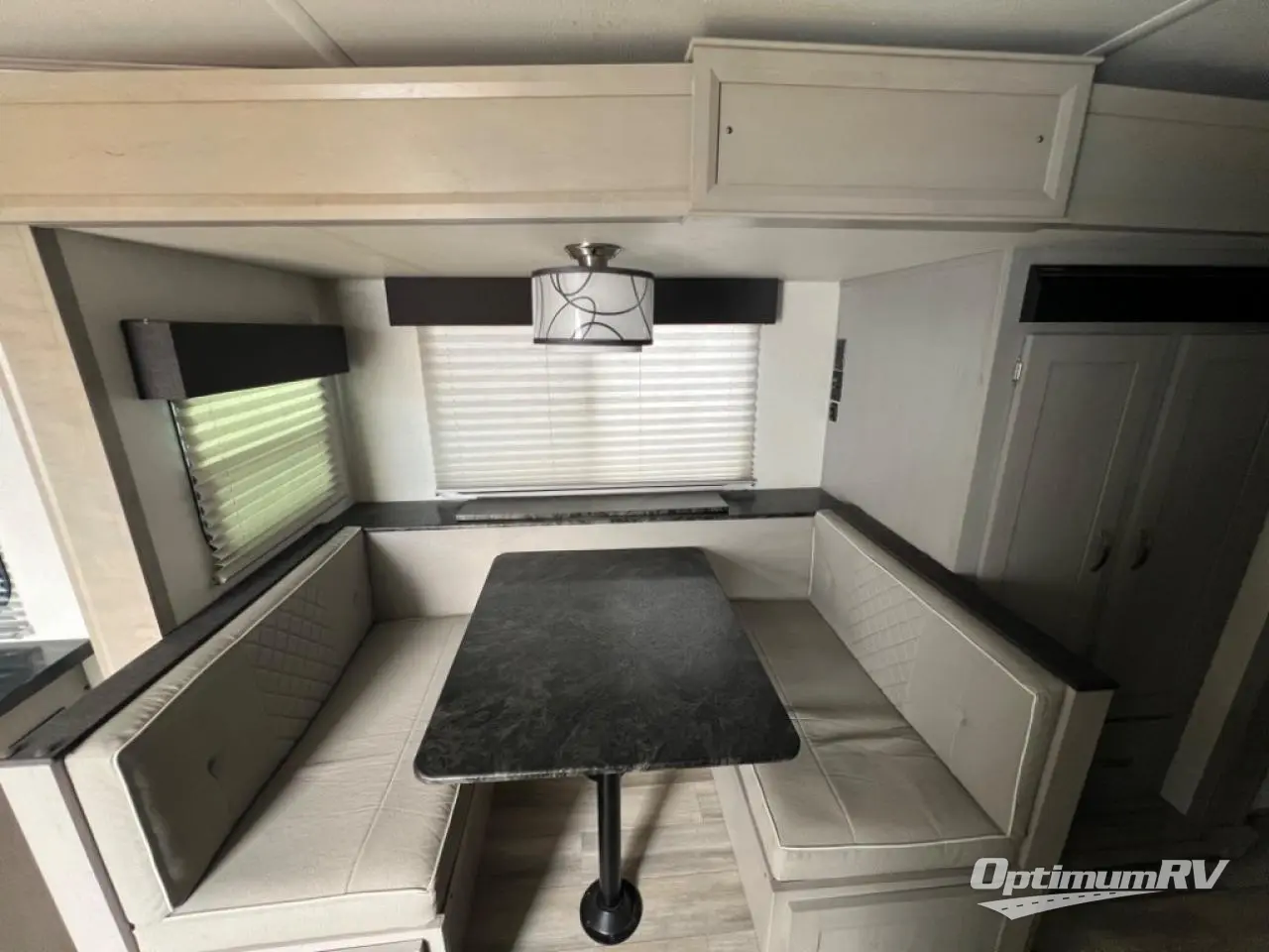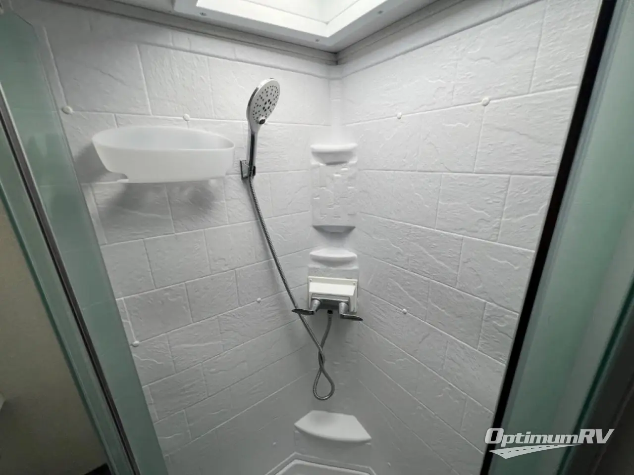 The cook in the family will love this trailer with its rear kitchen which includes all the appliances and a farm-style sink, plus windows for views, and the slide out in the main living area provides more elbow room and includes a booth dinette with under bench storage, a pantry for dry goods and a wardrobe for your guests. The full bathroom offers a radius shower and vanity, and the front bedroom gives you privacy, a queen bed with wardrobes and the second entry/exit door for convenience.