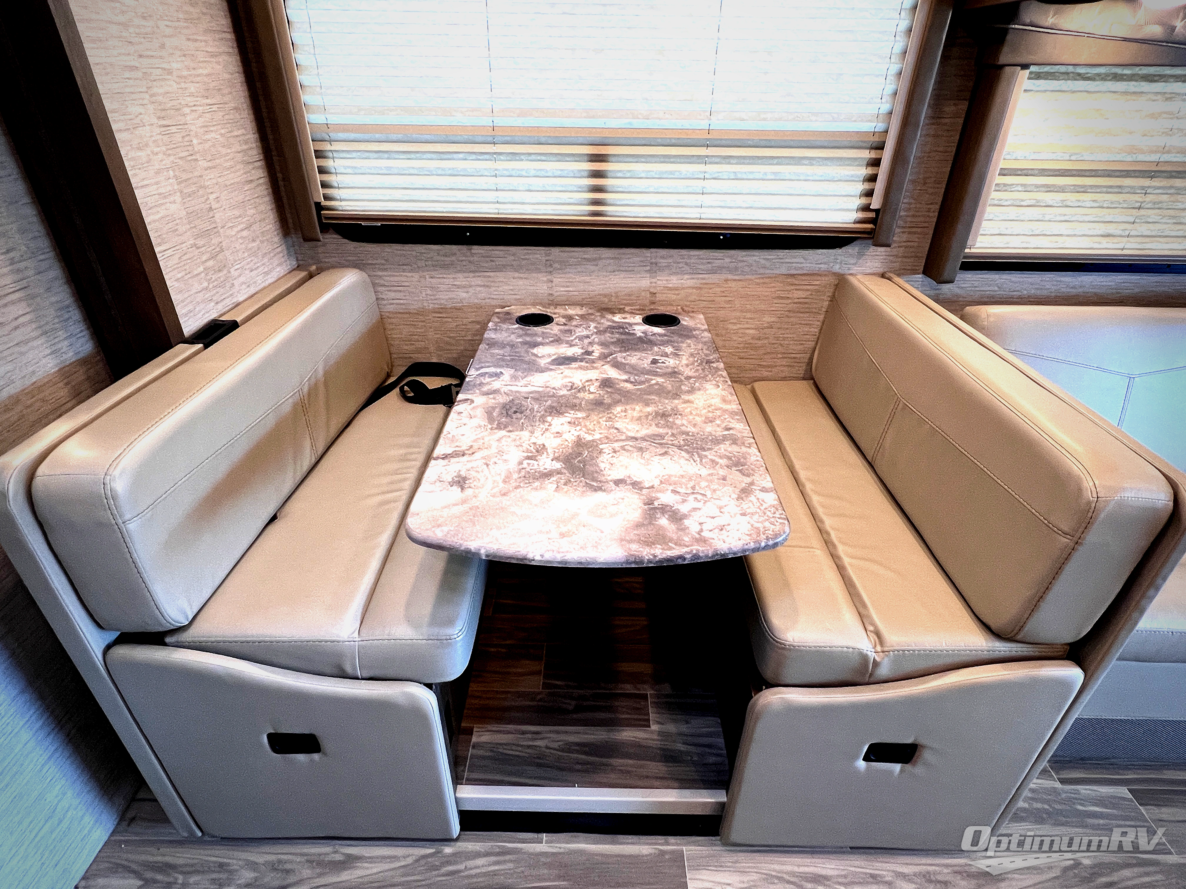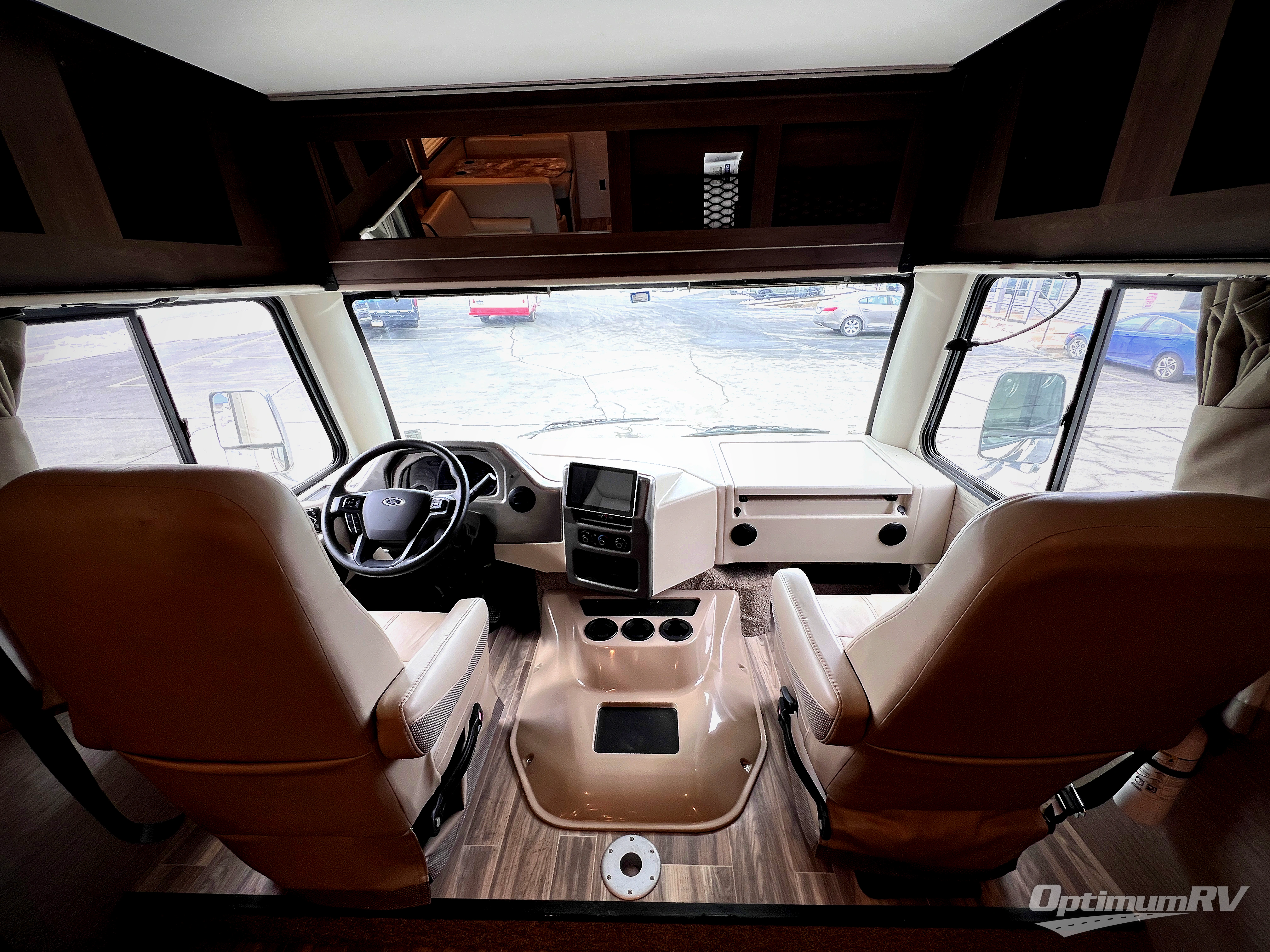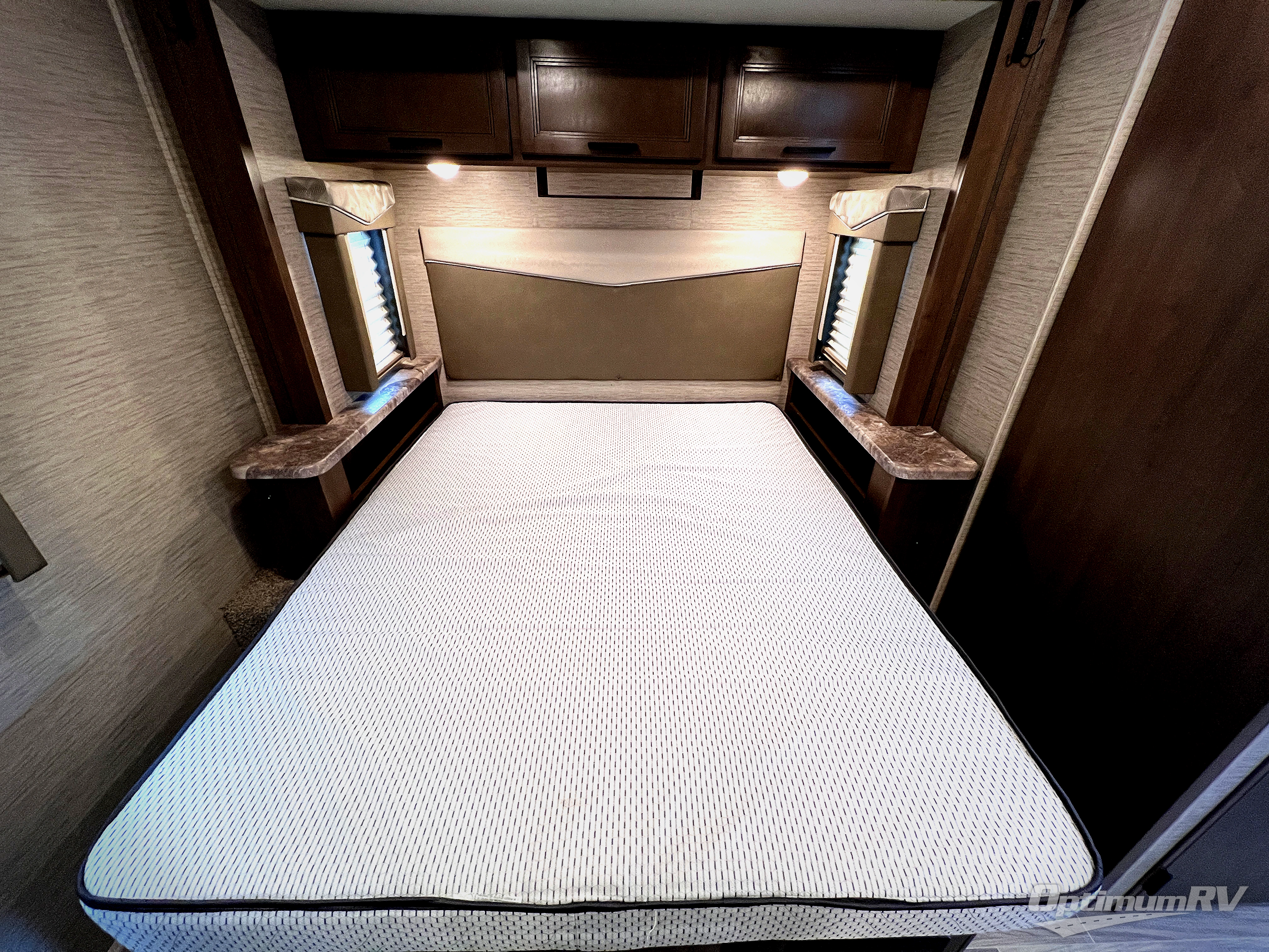 The A.C.E Class A gas motorhome is constructed with a welded tubular steel floor, vacu-bond laminated roof, walls and floor with block foam insulation, and a premium one-piece exterior roof for a coach made to last. You will love the pet-friendly features, like the Bird's Eye window, the Pet-Link multi-purpose tie-down and the Pull-Out Kibble Station with an FDS approved pet bowl liner. Each model includes an Onan RV QG 4,000 gas generator, a Winegard ConnecT Wi-Fi extender +4G, and are pre-wired for solar charging. Some of the other convenient amenities you will find on the A.C.E are frameless windows, a basement pass-through storage, and an exterior LP connection. Head inside to find residential vinyl flooring, pressed laminate countertops, glass tile backsplash in the kitchen, and a designer headboard, bedspread and pillow shams in the bedroom for all-around comfort!