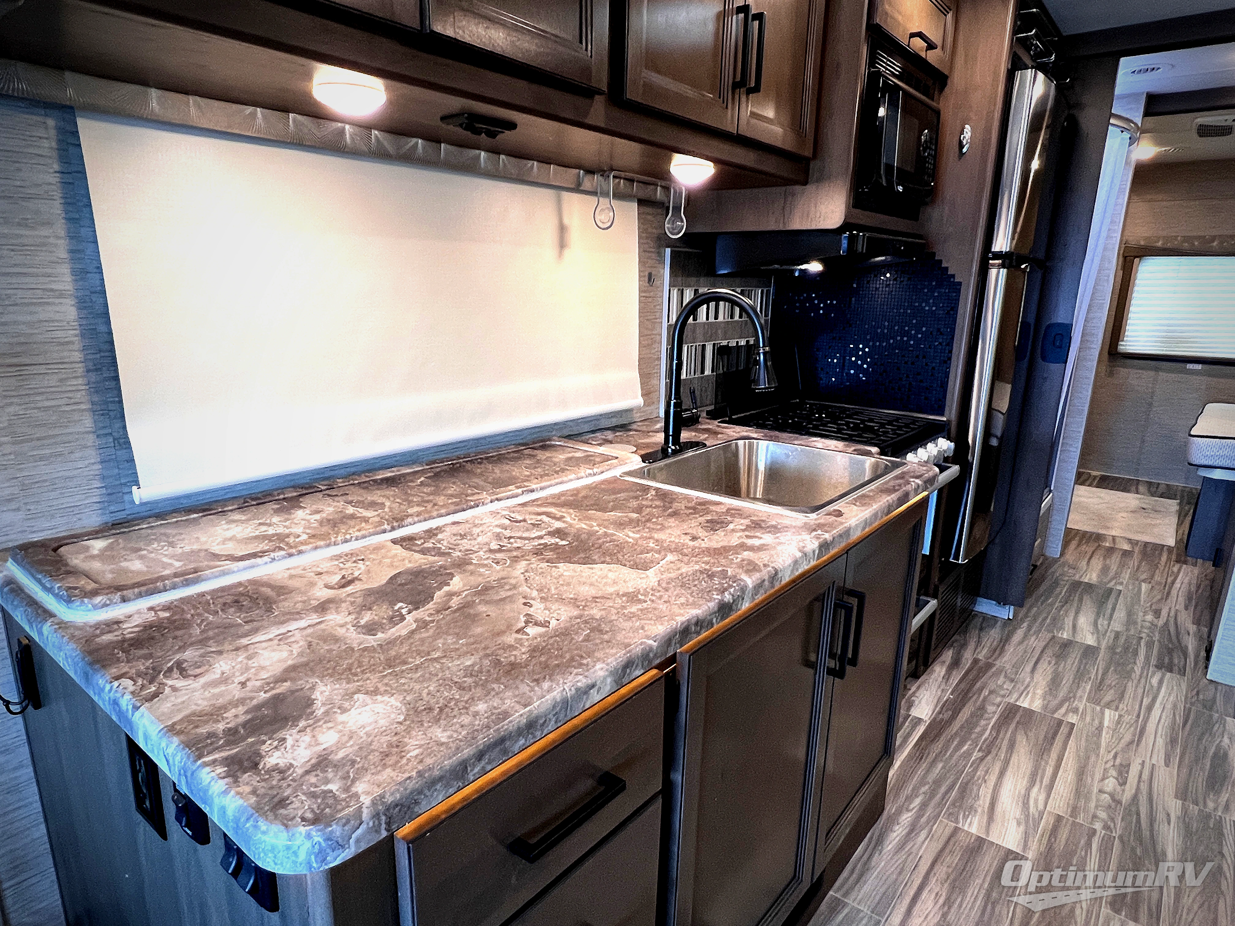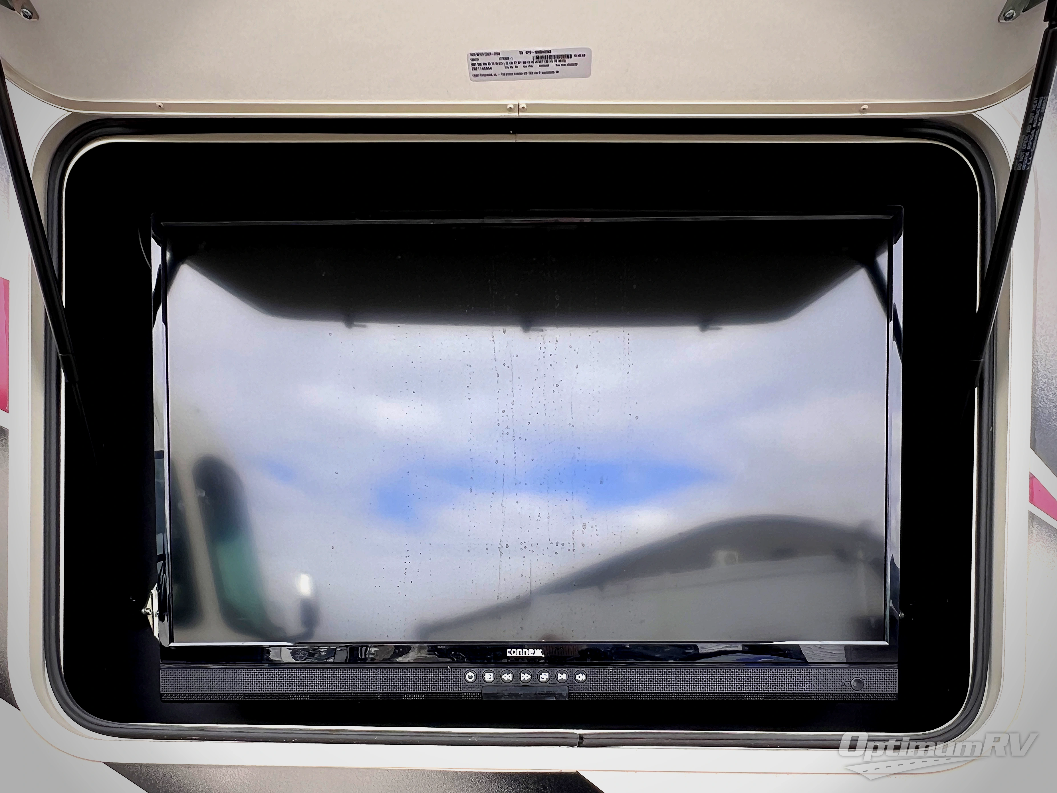 Pack up the family and bring your furry friends along too for fun camping trips in this double slide motorhome. The rear private bedroom includes a queen bed slide out, a closet, plus a 32" TV. You both can easily get clean up each morning thanks to the private lavy and sink, and the shower right across the hall. If you have any guests staying over, they can sleep on the Dream Dinette, the jack-knife sofa, or the drop-down overhead bunk. There is a three burner gas cooktop and a microwave oven to prepare meals at, and an exterior kitchen with a refrigerator, a sink, and a 1000-watt inverter. The retractable 39" TV provides everyone a view for movie night, or you may just find yourselves outdoors under the 19' power awning with LED lights!