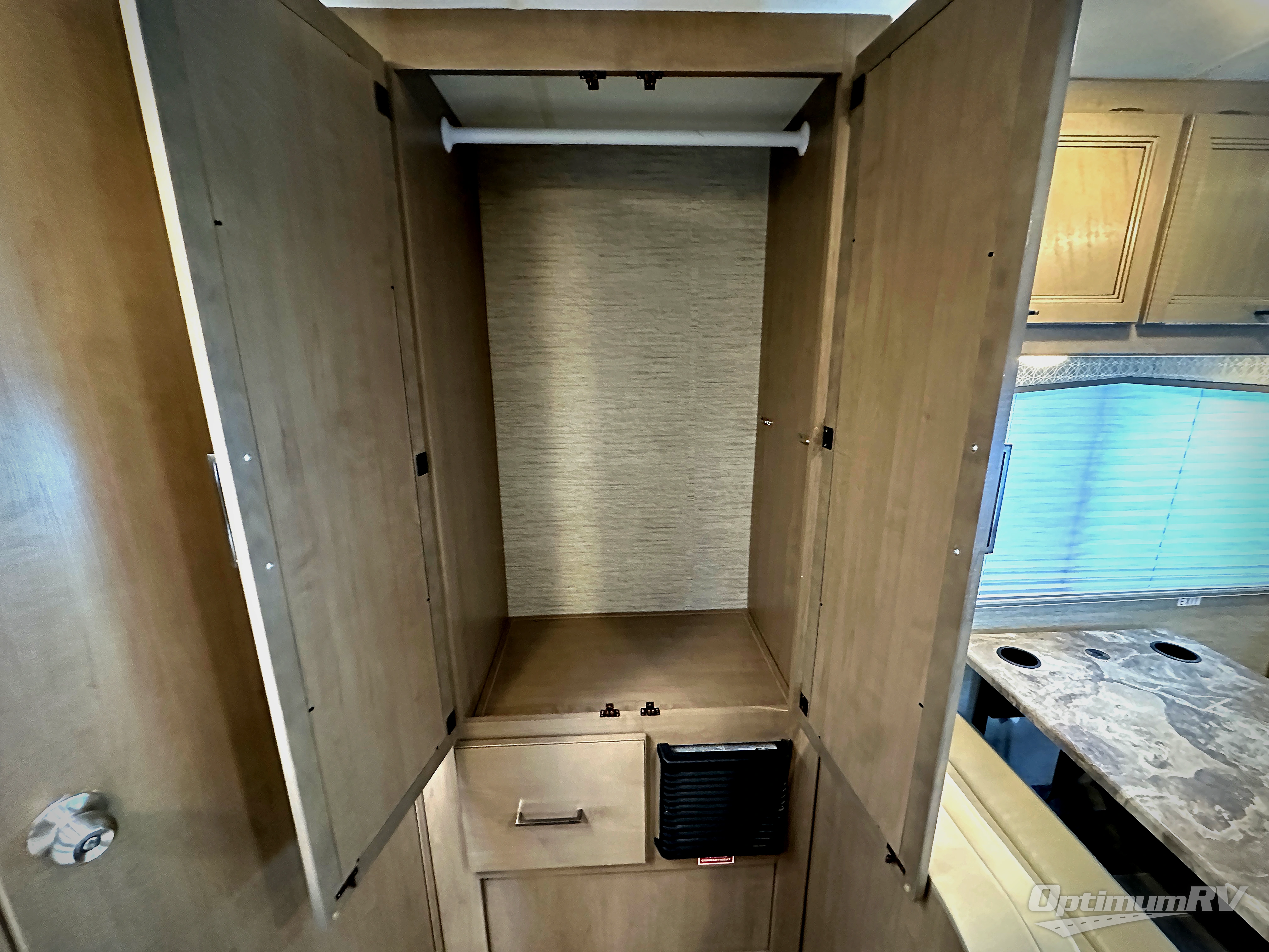 Pack your bags and fuel up this motorhome for a great adventure! Start each morning feeling recharged after sleeping on the corner 54" x 80" queen bed or the 54" x 96" bunk over cab then freshen up in the rear corner bathroom with the 24" x 36" shower. Grab some eggs from the double door refrigerator, fry them up on the three burner cooktop, and set your cup of coffee on either the flip-up countertop or the 76" dream dinette which can also transform into an extra sleeping space. You can choose to add an optional exterior 32" TV but you also have a standard 39" TV with swivel by the bunk over cab for your entertainment needs!