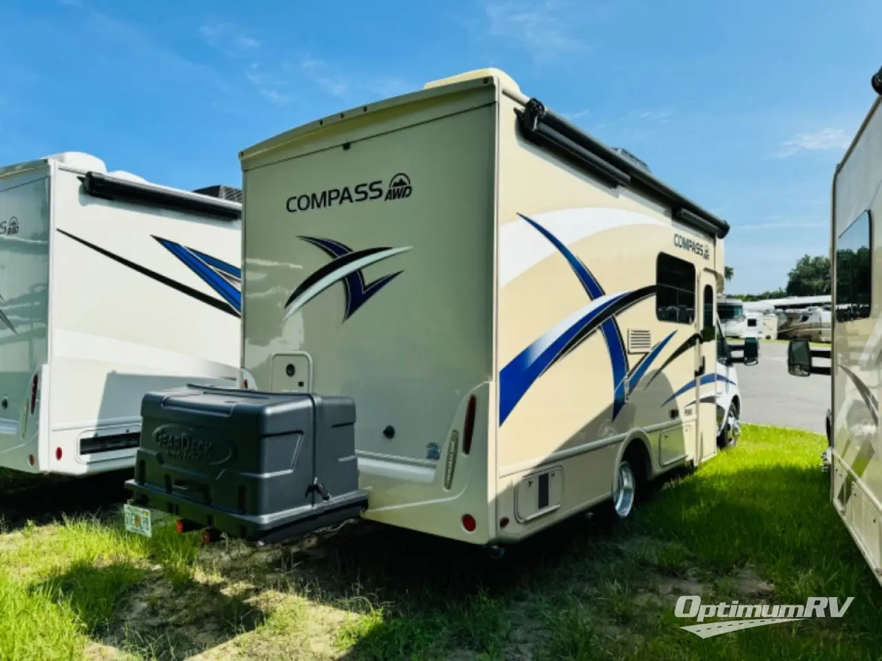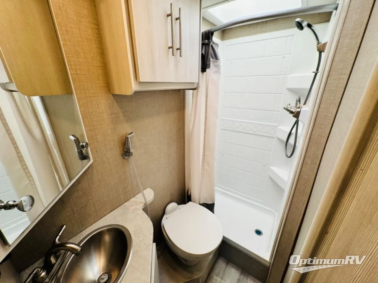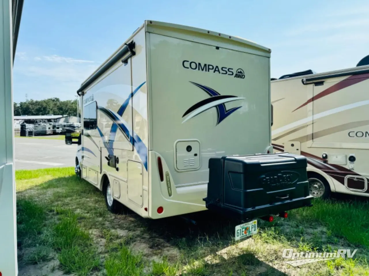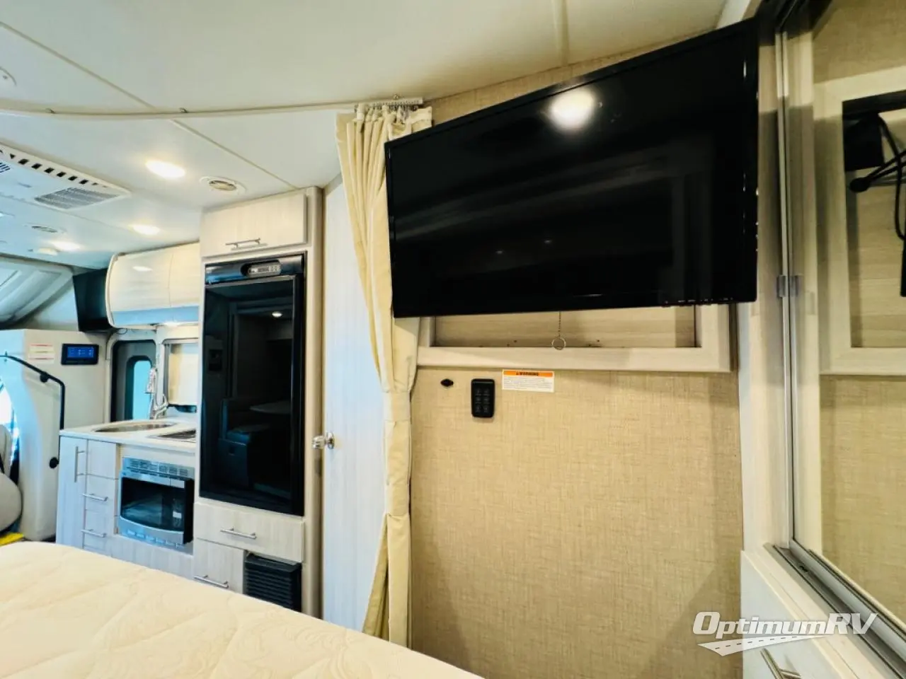 You can tour a local winery or trek up north to find a cozy and secluded camping spot with this Compass AWD Class B+ gas motorhome! All of your needs will be met with the excellent features and amenities included on this coach, like the full bathroom complete with a 24" x 32" shower, three robe hooks, a shower skylight, a foot-flush toilet, and a power bath vent. The kitchen is ready to help you make mobile meals, and the 68" Dream Dinette is the perfect place for eating those meals or playing a game later on. At the dinette table top, you'll find a wireless phone charger with USB plug so that you can charge your phones. There is a privacy curtain that sections off the flip-up RV queen bed, and you'll also find a 32" TV in the bedroom. The second 32" TV is located out in the main living area for everyone else to watch.