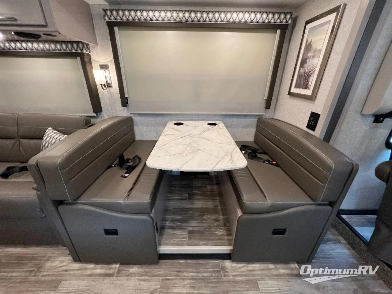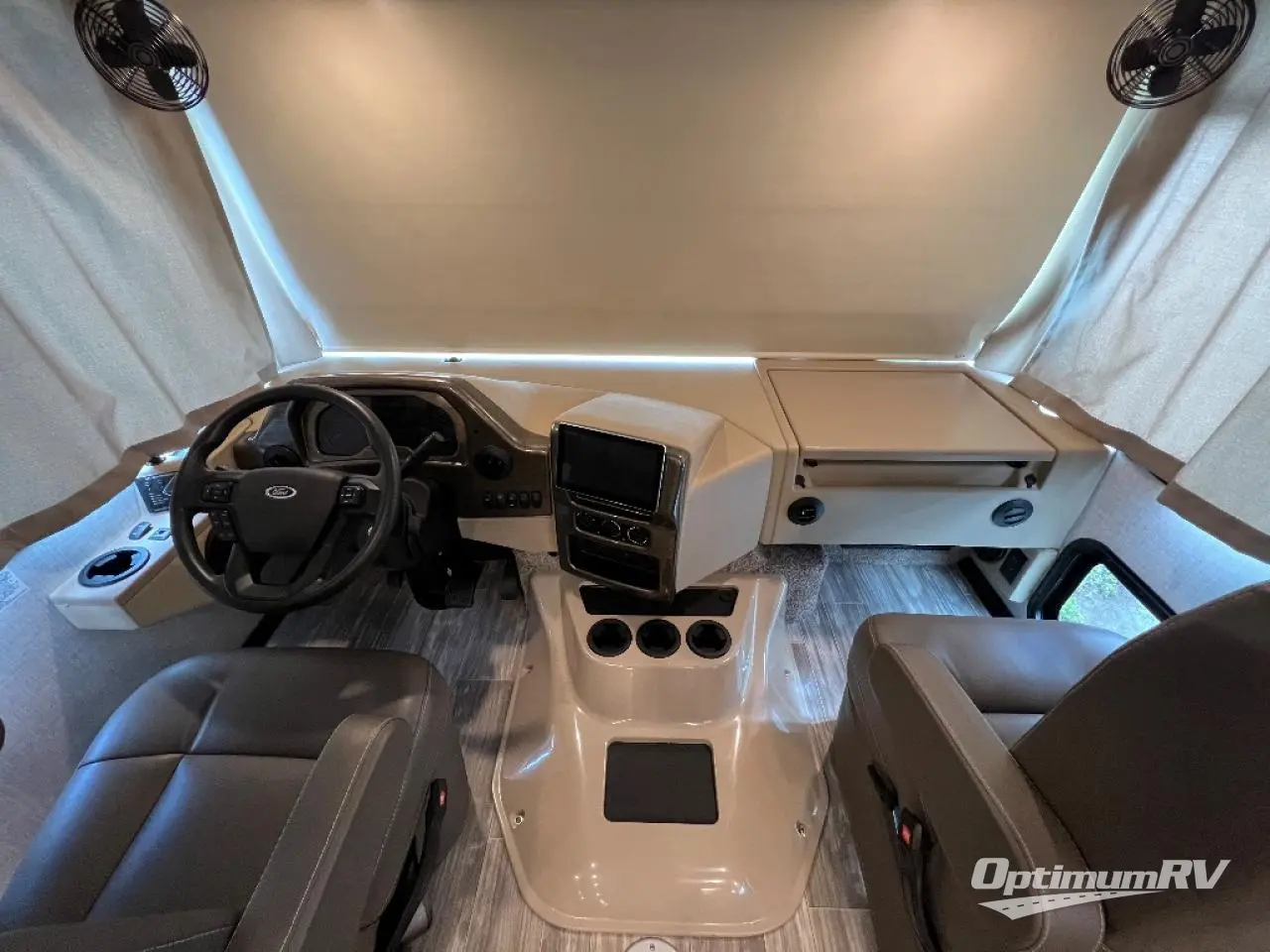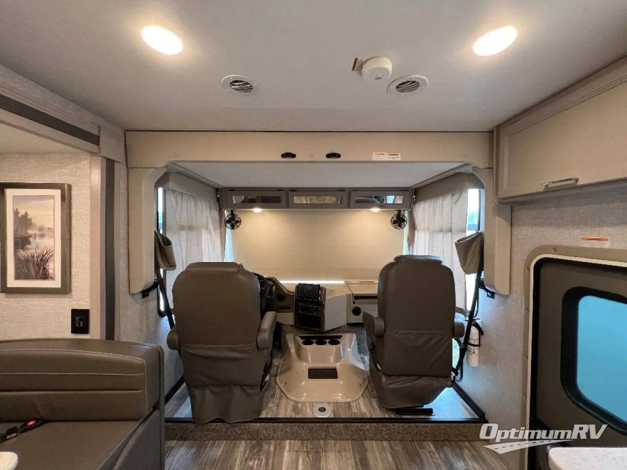 With any Hurricane Class A gas motorhome by Thor Motor Coach you will appreciate solid construction materials, like the welded tubular steel floor and the Vacu-Bond laminated roof, walls, and floor with block foam insulation. Each model sits on a Ford F-53 chassis with a 7.3L Triton V8 engine for power you can feel, plus there is an 8,000 lb. trailer hitch with a 7-pin round connector to pull your car along. The Rapid Camp+ multiplex system with Bluetooth will allow you to easily set up camp from the convenient 7" touchscreen provided, and the Winegard ConnecT WiFi extender +4G will let you catch up on work if needed. The Hurricane includes pressed laminated countertops inside, as well as residential vinyl flooring, decorative glass and tile backsplash in the kitchen, and many more at-home comforts.