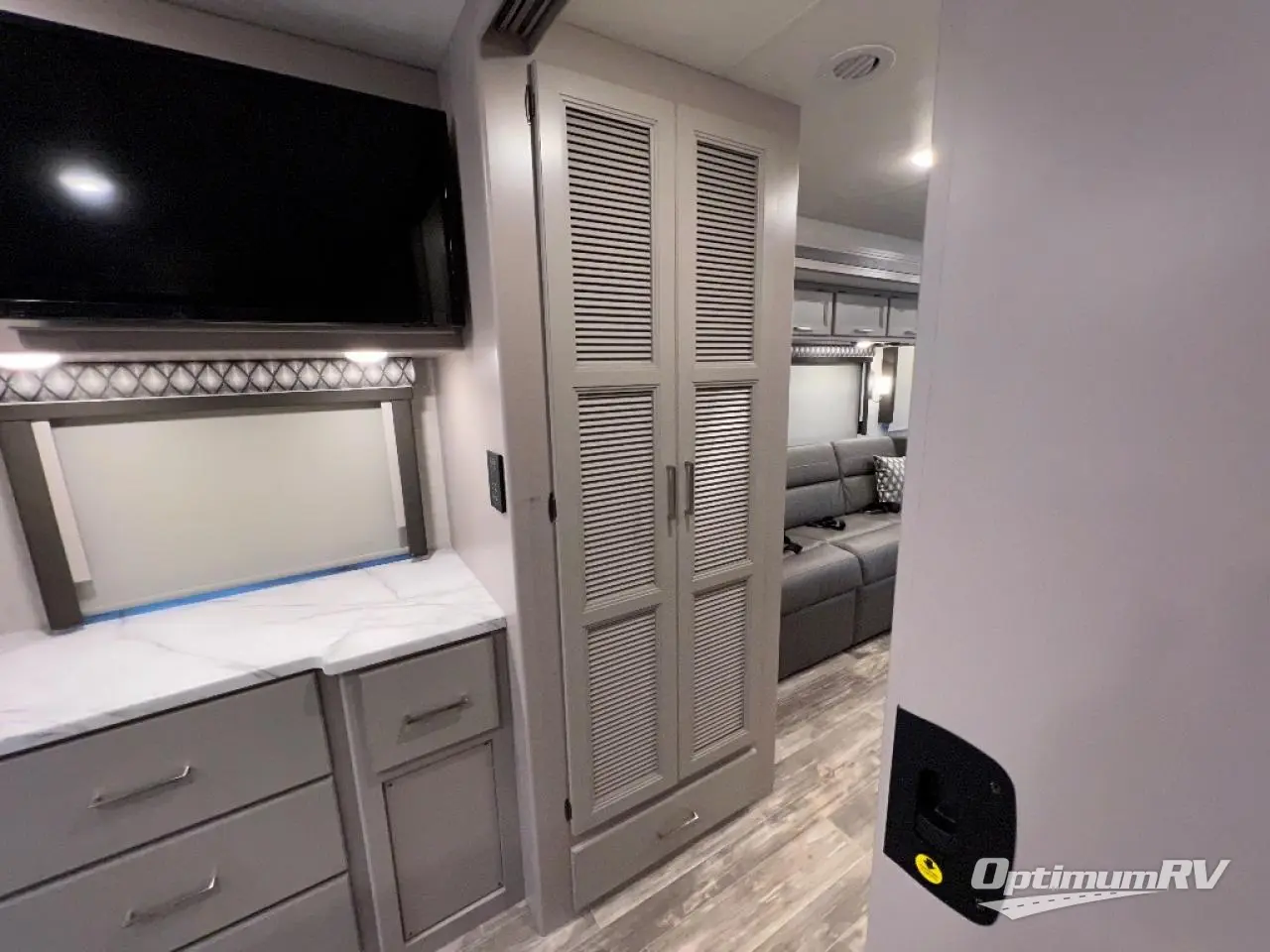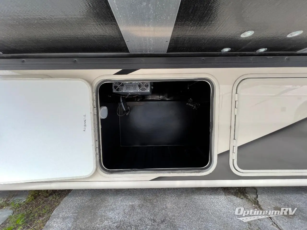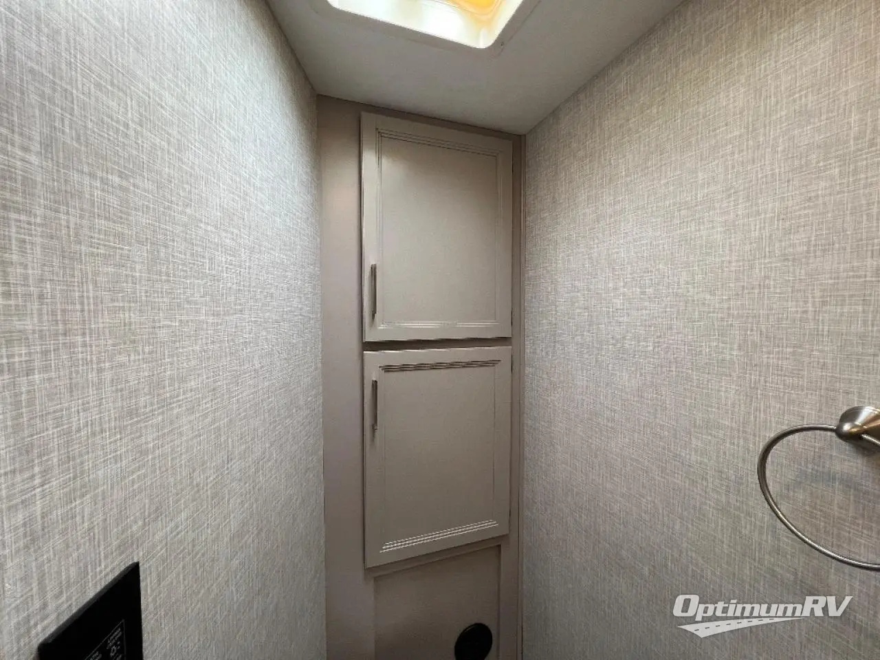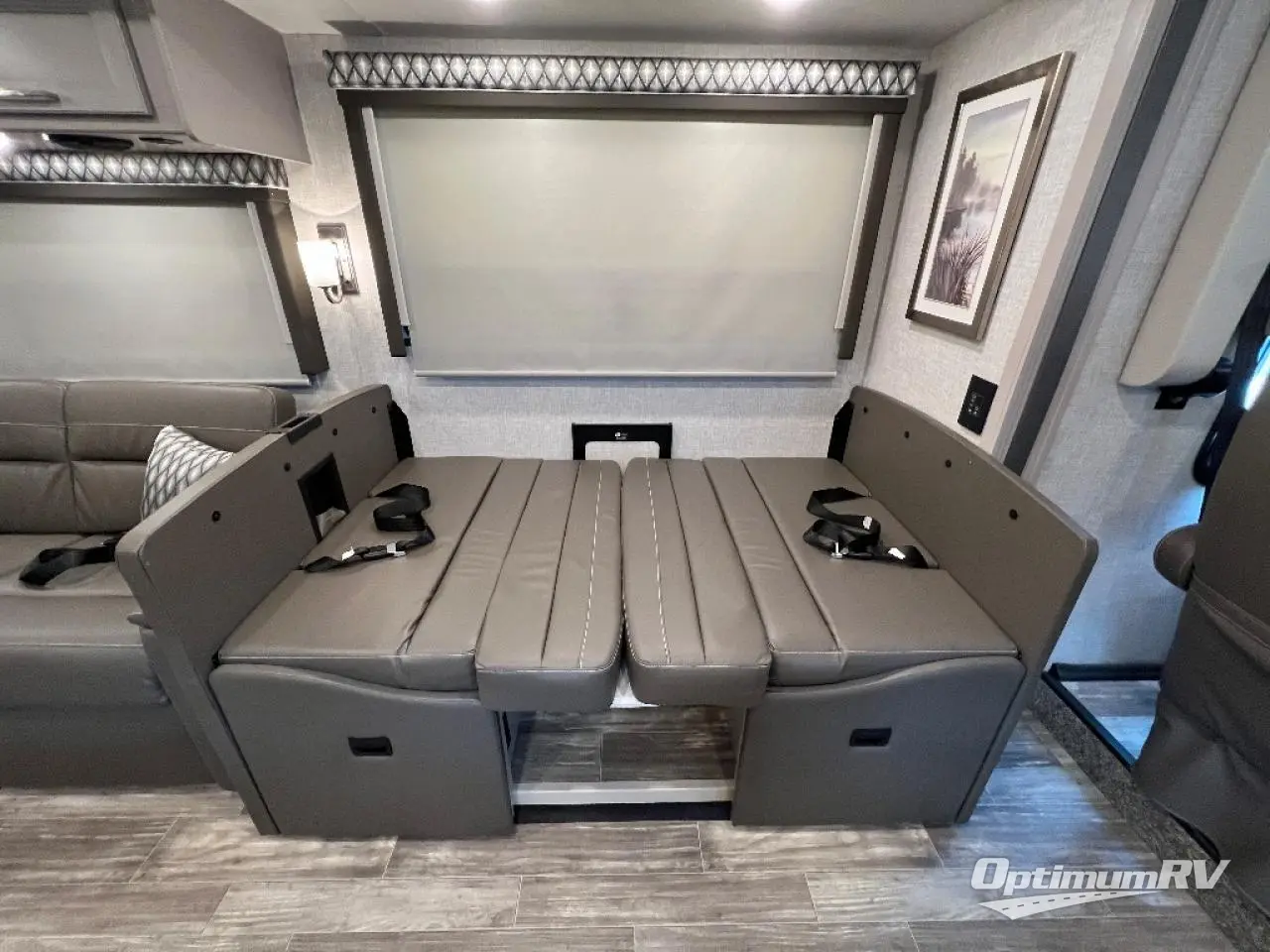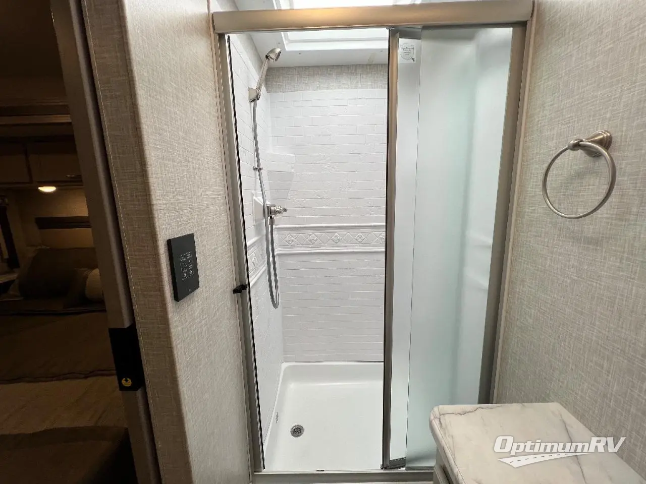 A bath and a half in this coach make it perfect for trips with friends and family. You will have tons of space provided by the two slide outs, plus a sleeping capacity of six to seven people each night. The expanding sofa bed has a great view of the 39" TV, and the Dream Dinette will be great for meals times and game night. Whip up a hearty meal on the three burner gas cooktop, or use the convenient over-the-range microwave oven. There is also a 12 cu. ft. residential refrigerator and a pantry for food storage. You'll be very pleased with the master bedroom that includes a king bed, a 32" TV, and a closet to keep your clothes wrinkle-free. There is even a second closet with stackable washer and dryer prep to make life on the road easier than ever.