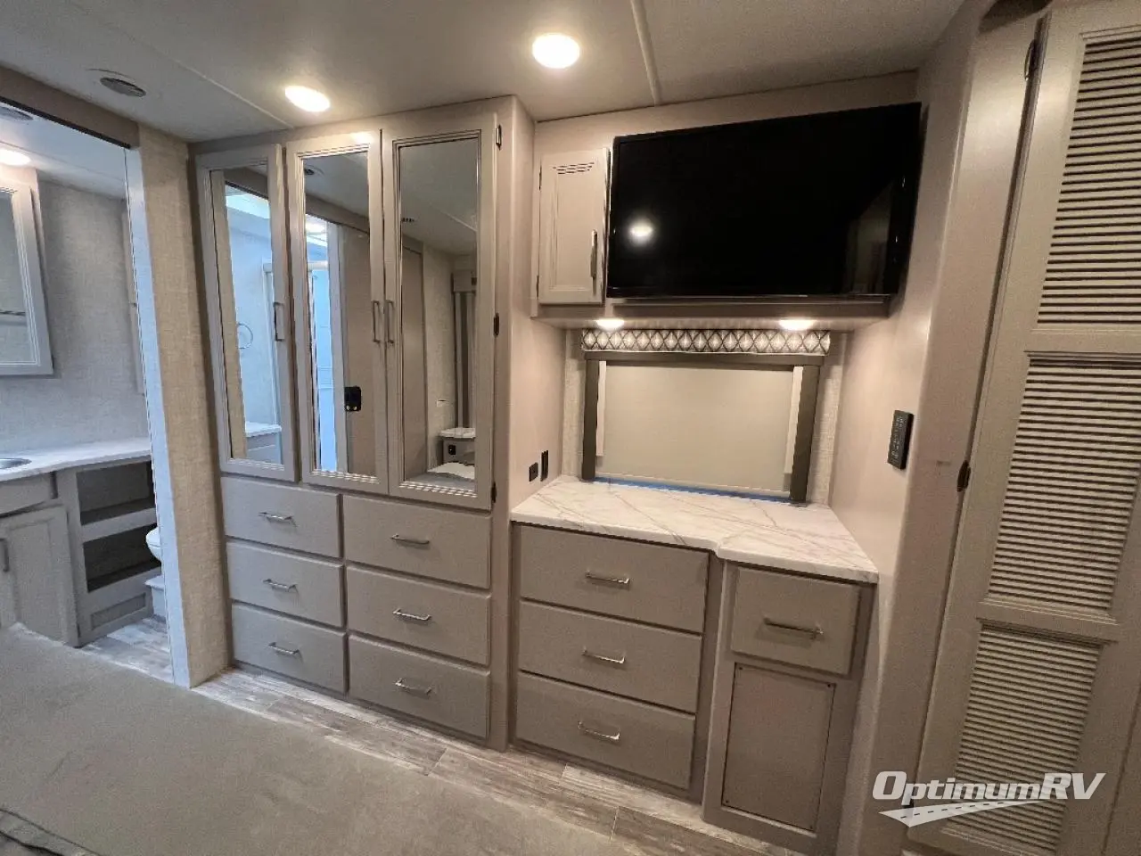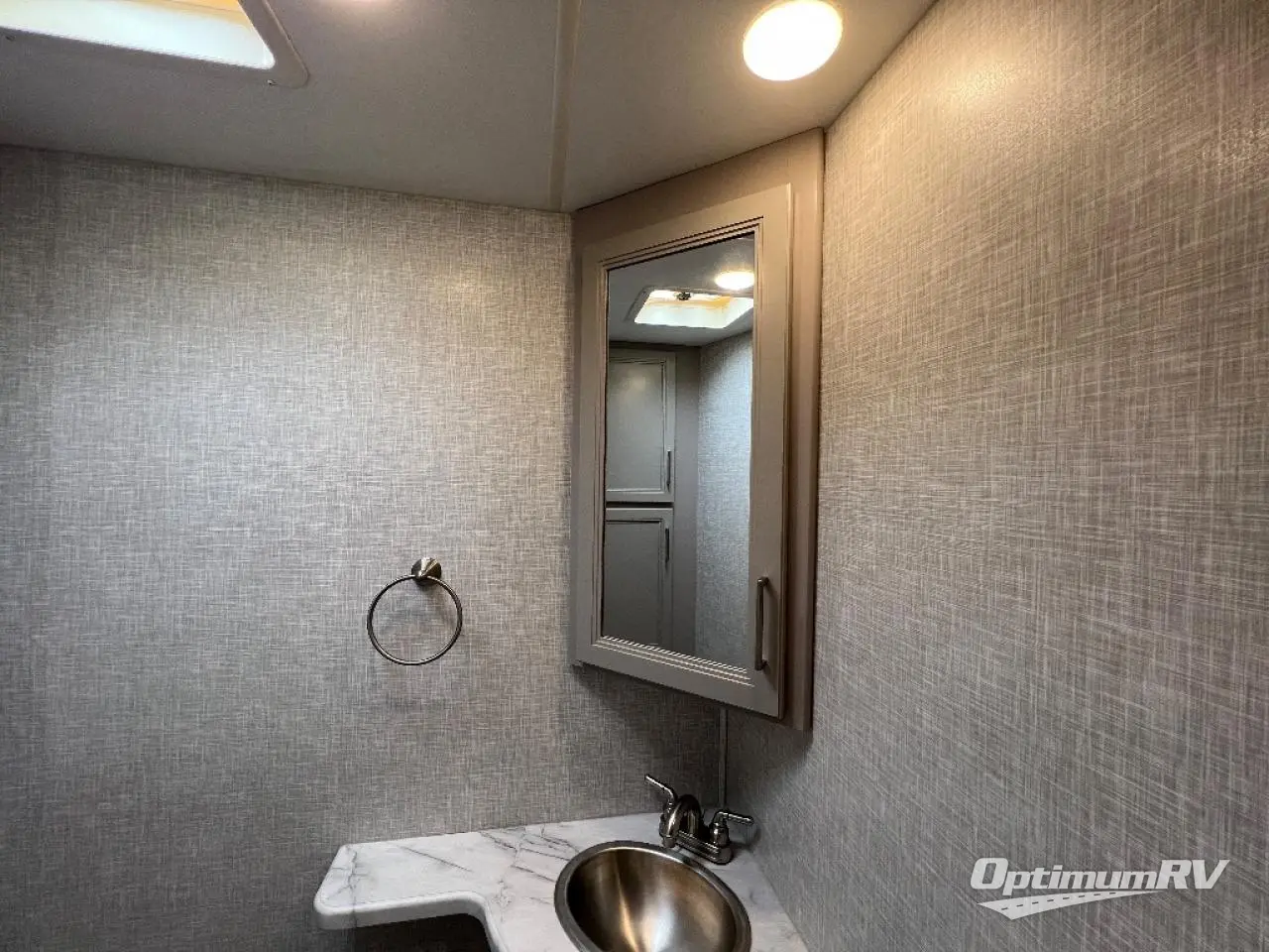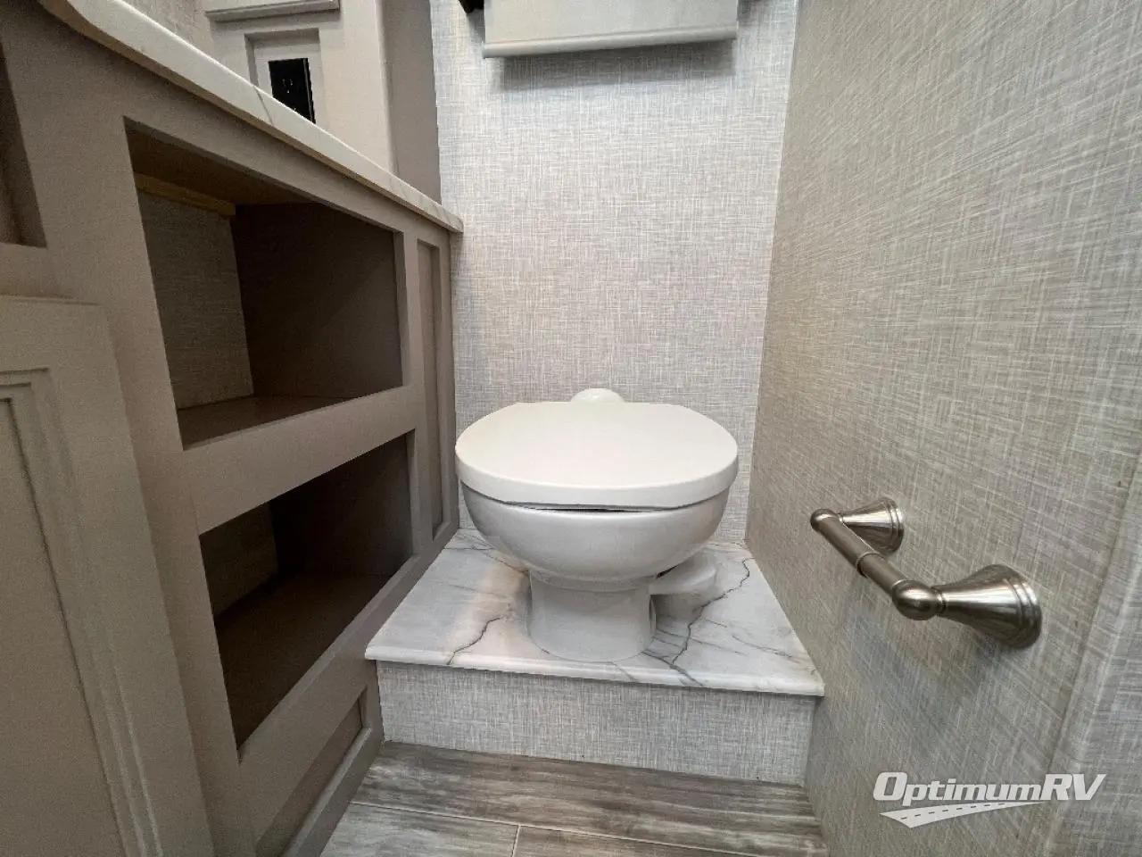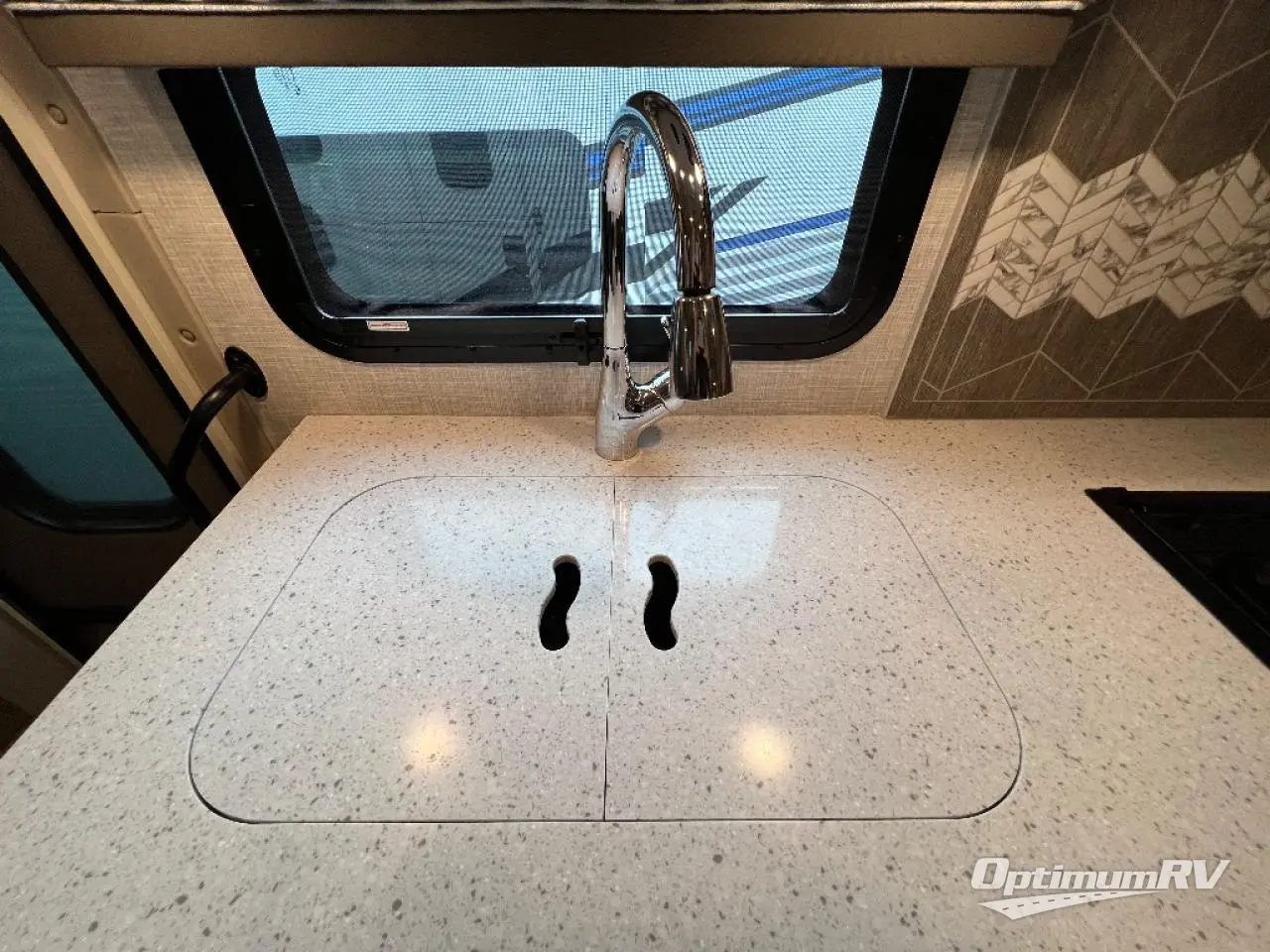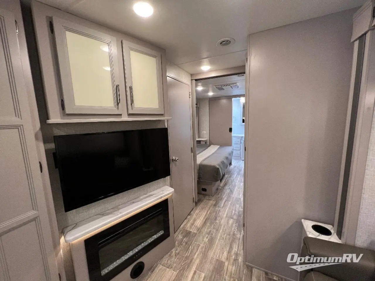 A bath and a half in this coach make it perfect for trips with friends and family. You will have tons of space provided by the two slide outs, plus a sleeping capacity of six to seven people each night. The expanding sofa bed has a great view of the 39" TV, and the Dream Dinette will be great for meals times and game night. Whip up a hearty meal on the three burner gas cooktop, or use the convenient over-the-range microwave oven. There is also a 12 cu. ft. residential refrigerator and a pantry for food storage. You'll be very pleased with the master bedroom that includes a king bed, a 32" TV, and a closet to keep your clothes wrinkle-free. There is even a second closet with stackable washer and dryer prep to make life on the road easier than ever.