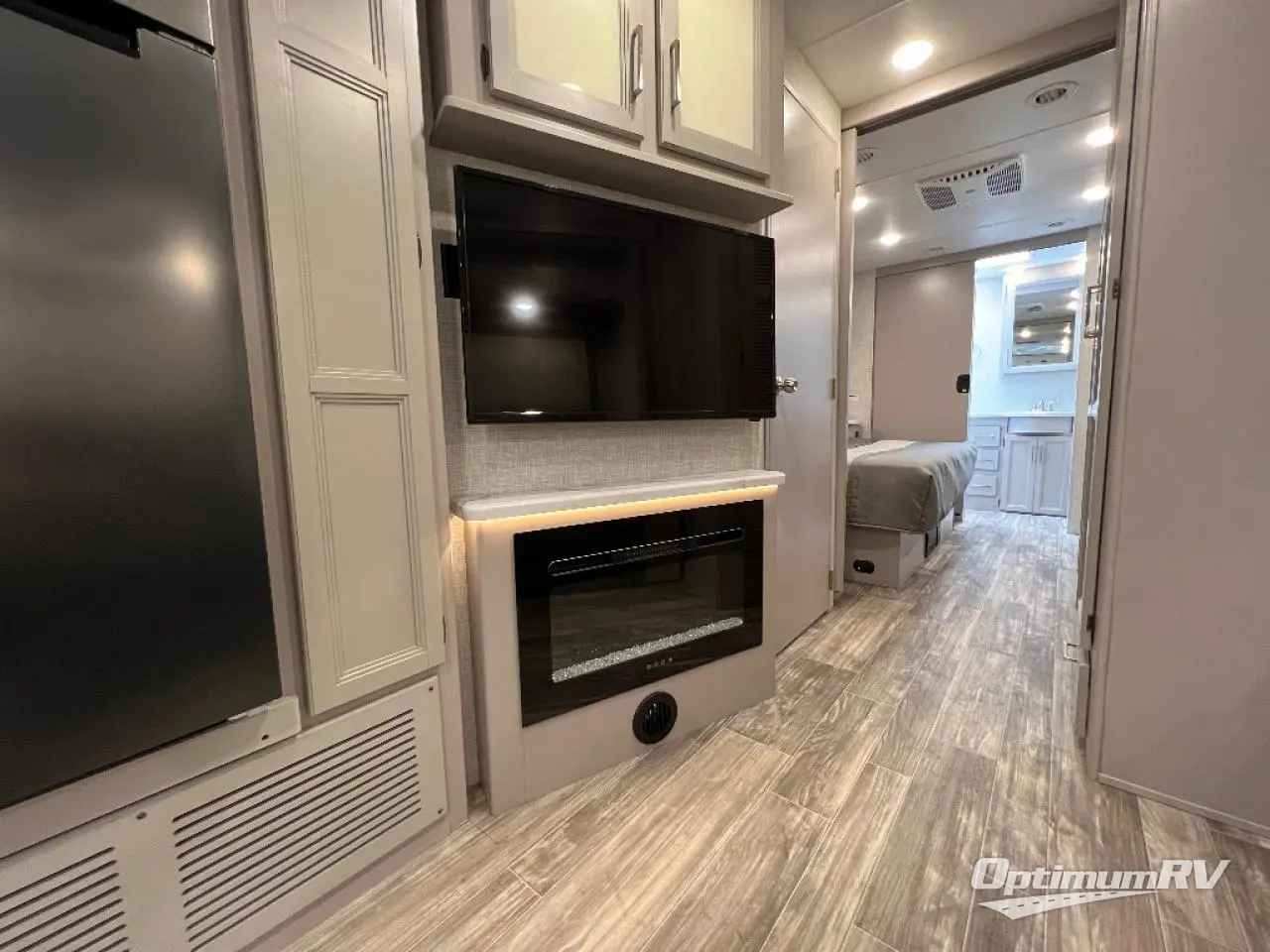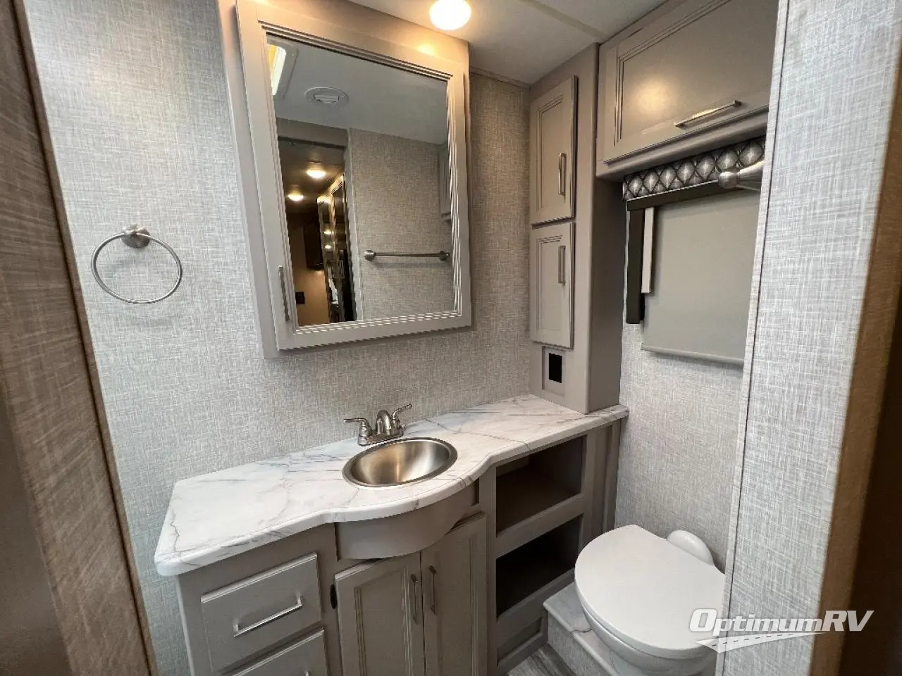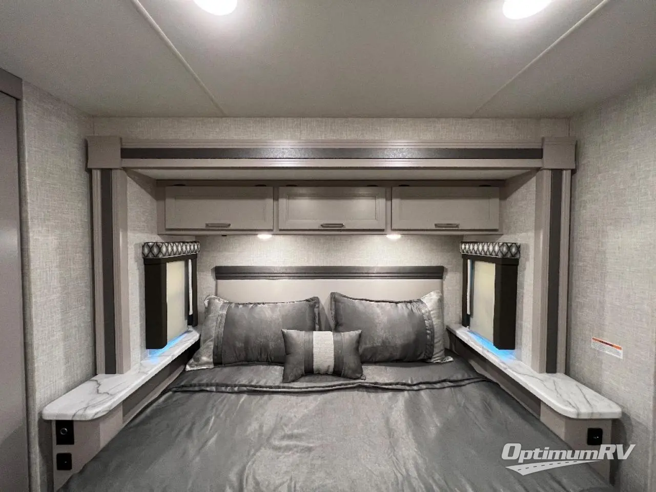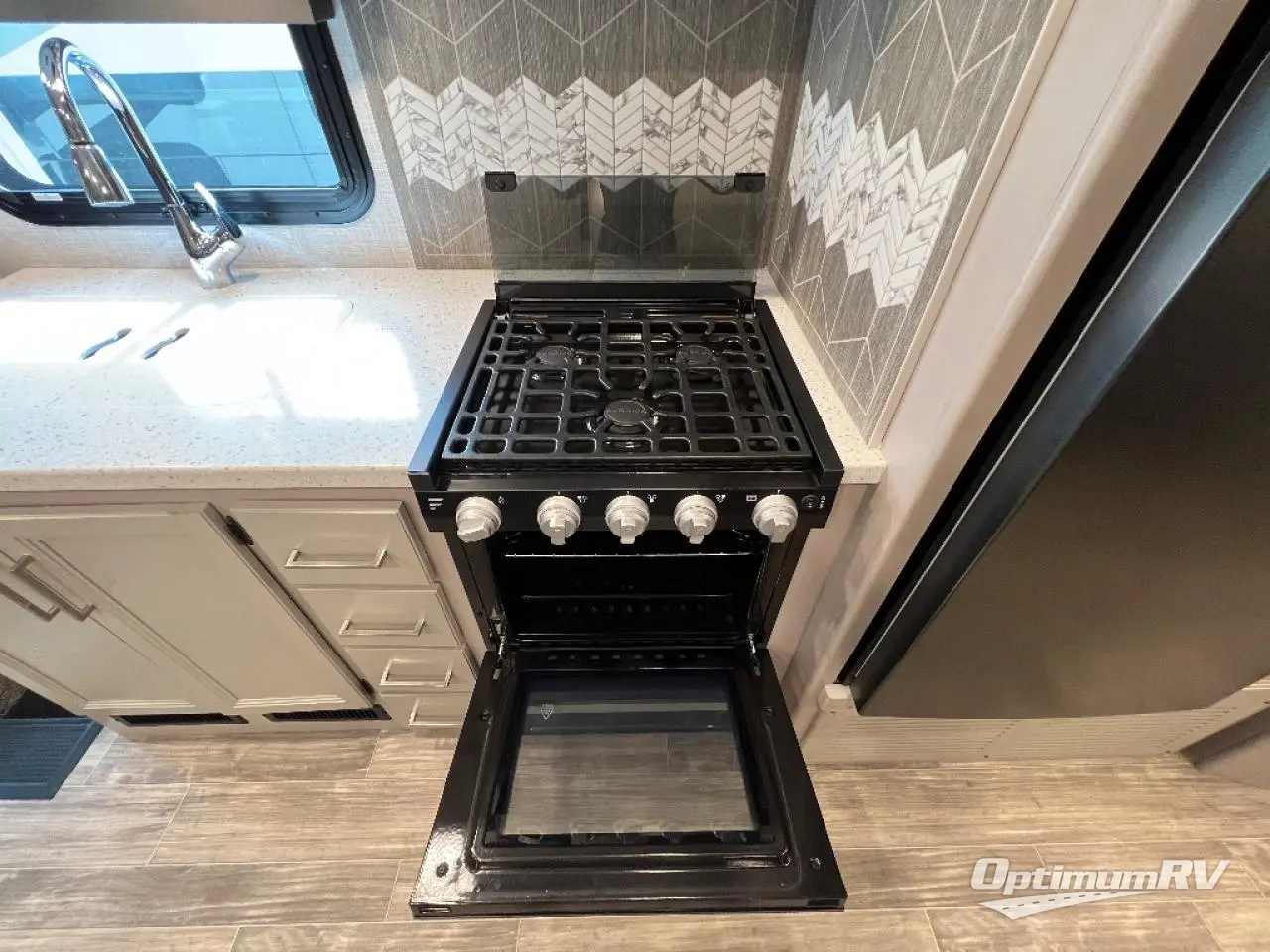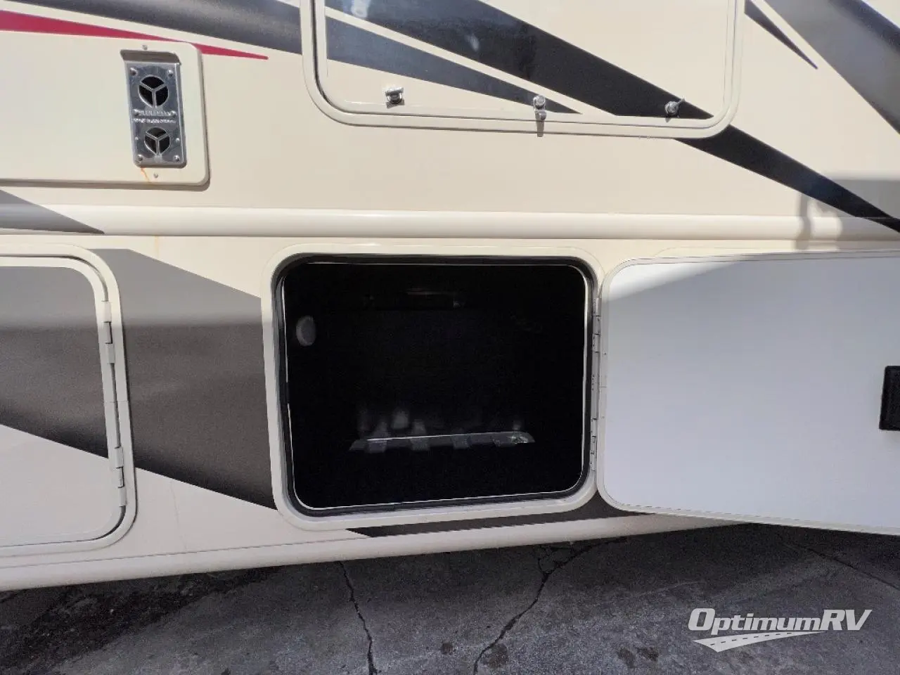 A bath and a half in this coach make it perfect for trips with friends and family. You will have tons of space provided by the two slide outs, plus a sleeping capacity of six to seven people each night. The expanding sofa bed has a great view of the 39" TV, and the Dream Dinette will be great for meals times and game night. Whip up a hearty meal on the three burner gas cooktop, or use the convenient over-the-range microwave oven. There is also a 12 cu. ft. residential refrigerator and a pantry for food storage. You'll be very pleased with the master bedroom that includes a king bed, a 32" TV, and a closet to keep your clothes wrinkle-free. There is even a second closet with stackable washer and dryer prep to make life on the road easier than ever.