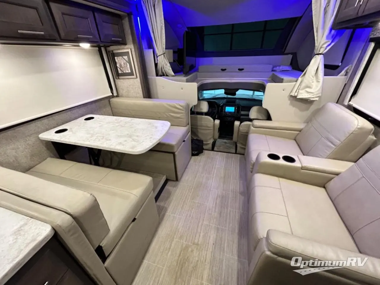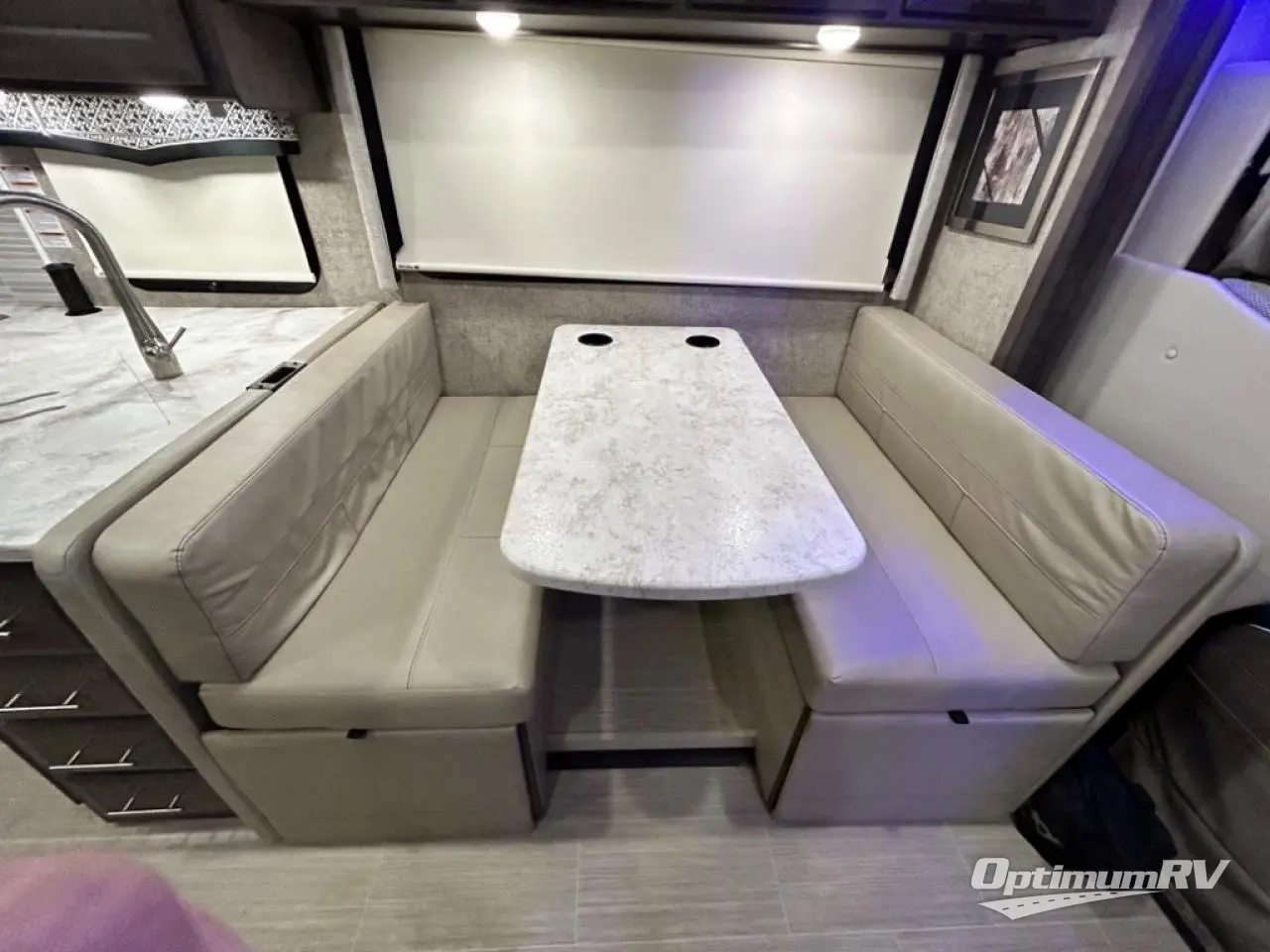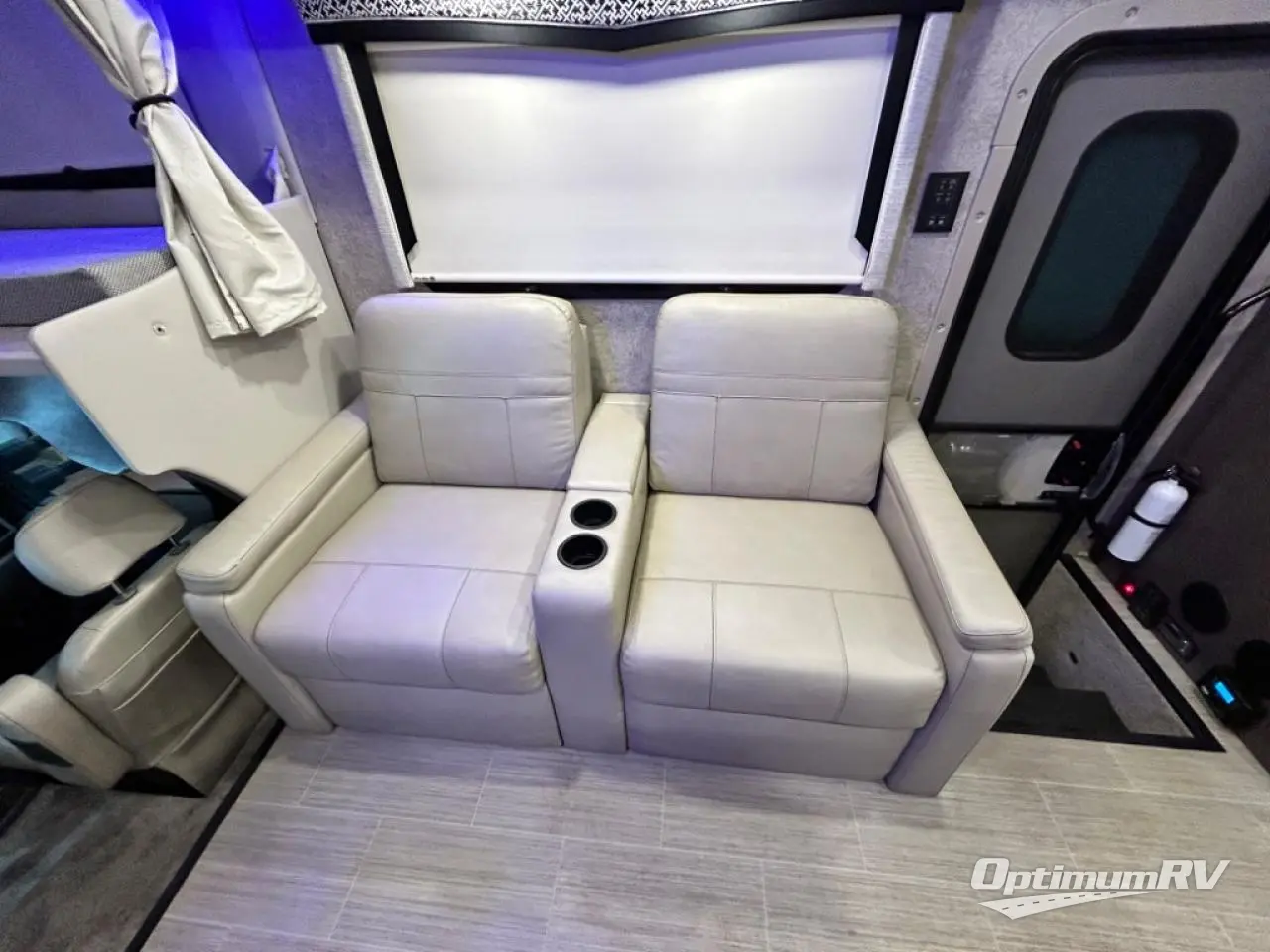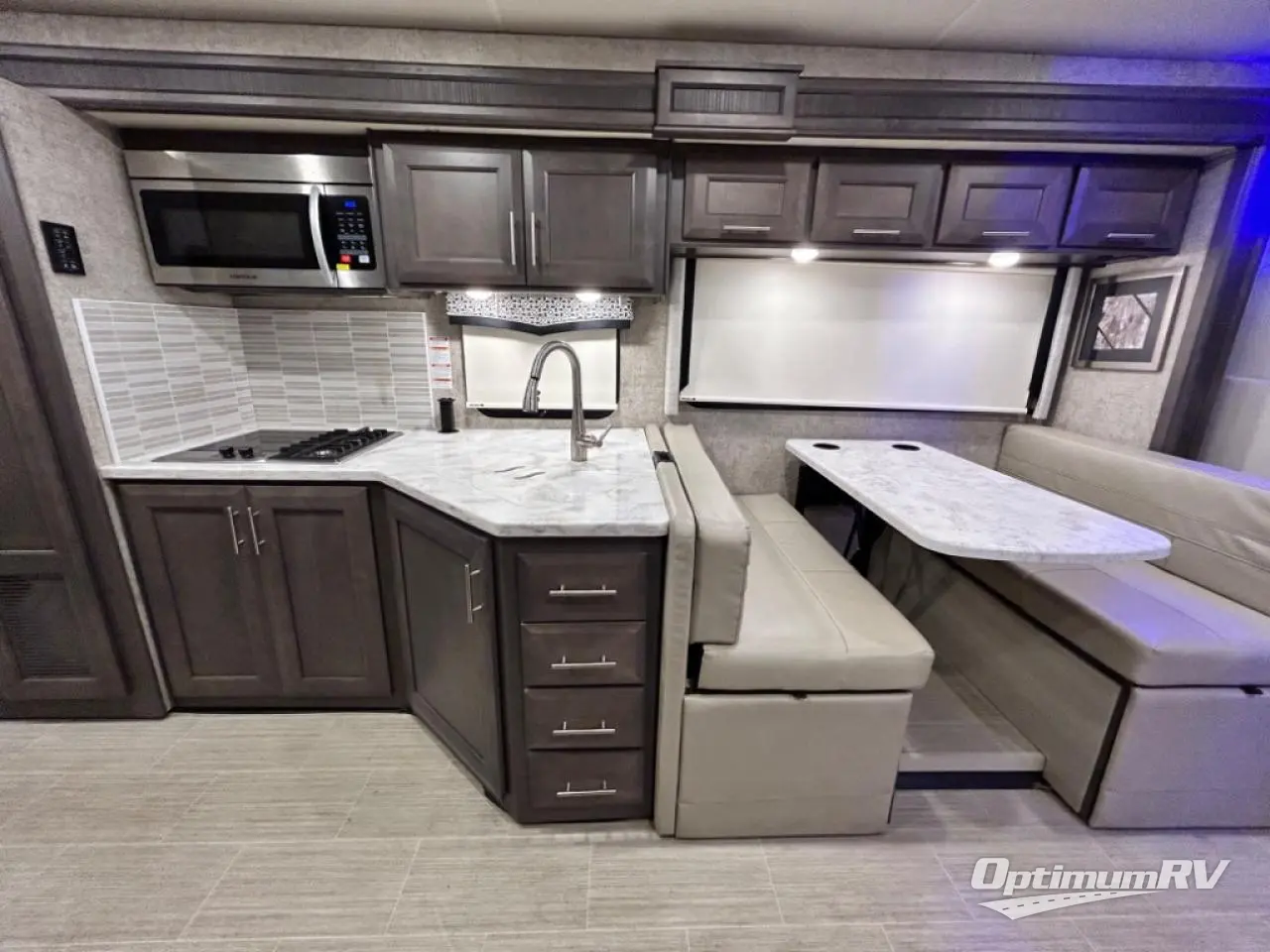 Take grand vacations in this feature-packed Magnitude Super C diesel motorhome that can sleep five to six people each night. The full and half bathrooms are sure to come in handy when traveling with friends, and the double slides provide more space to relax. You and your spouse may want to kick your feet up on the theater seating with incliners and footrests, or take a rest on the RV king bed in the master bedroom. This model also includes a 70" Dream Dinette that will be perfect for meal times, game night, and additional sleeping space. And don't worry about having to stop for fast food since the kitchen includes a two-burner gas range with single induction cooktop, a convection microwave, and a residential refrigerator for food!