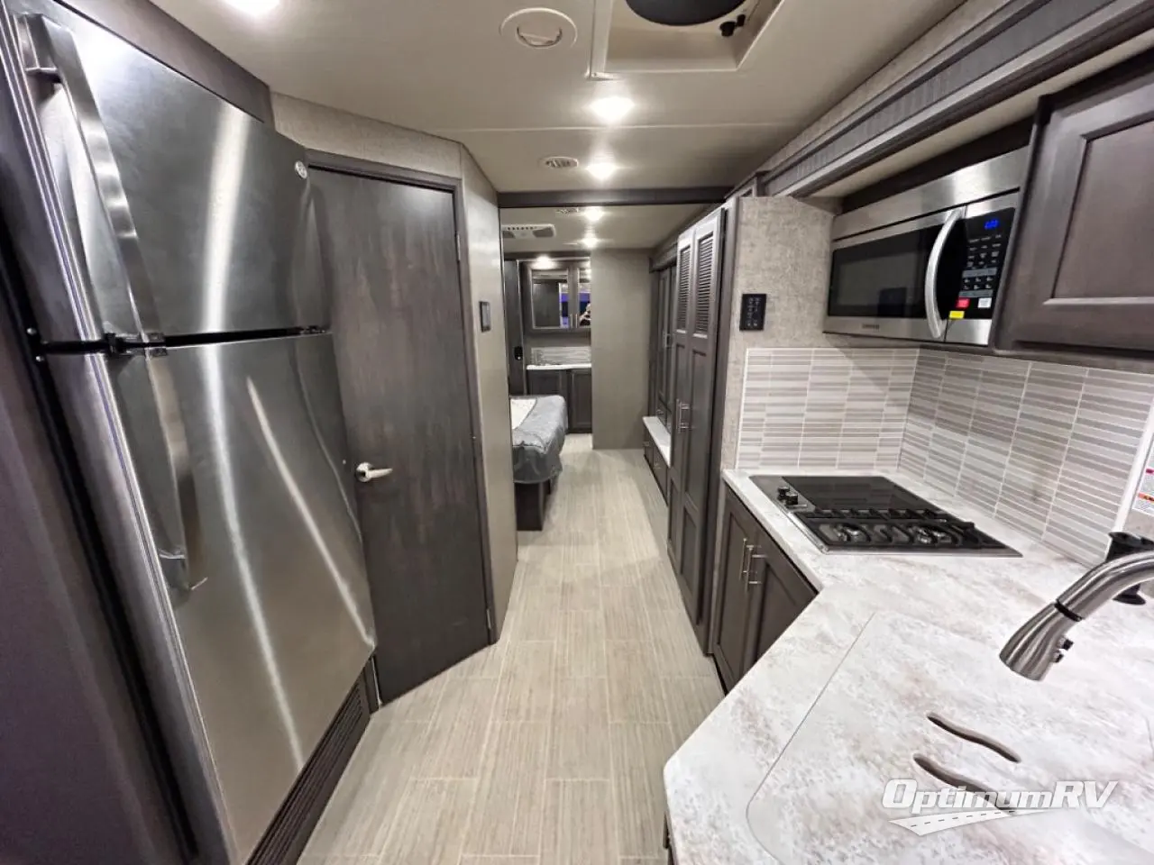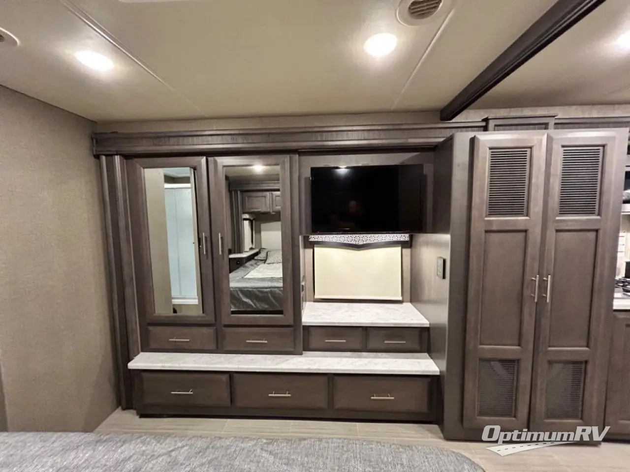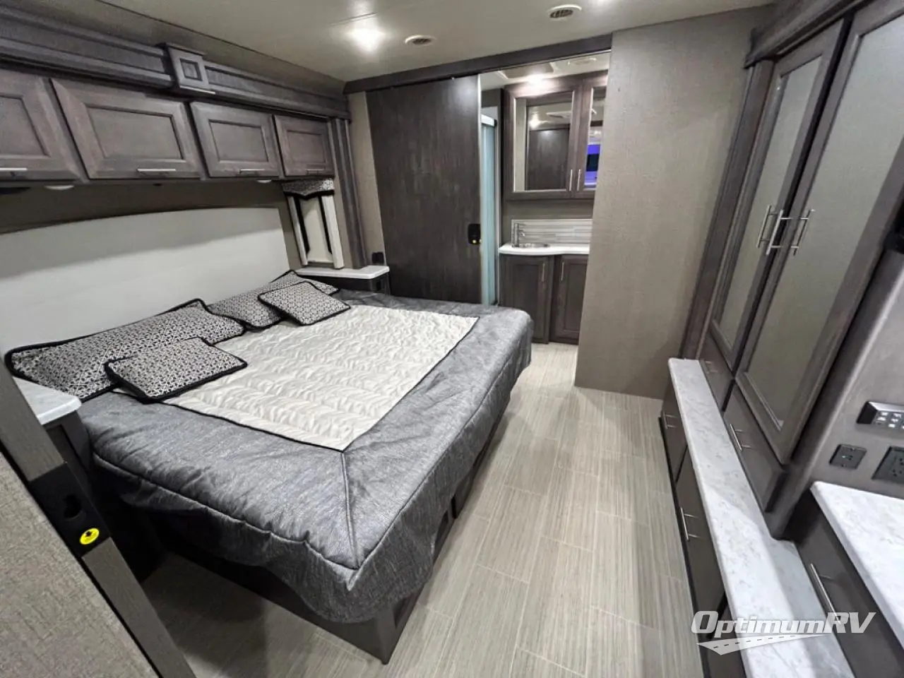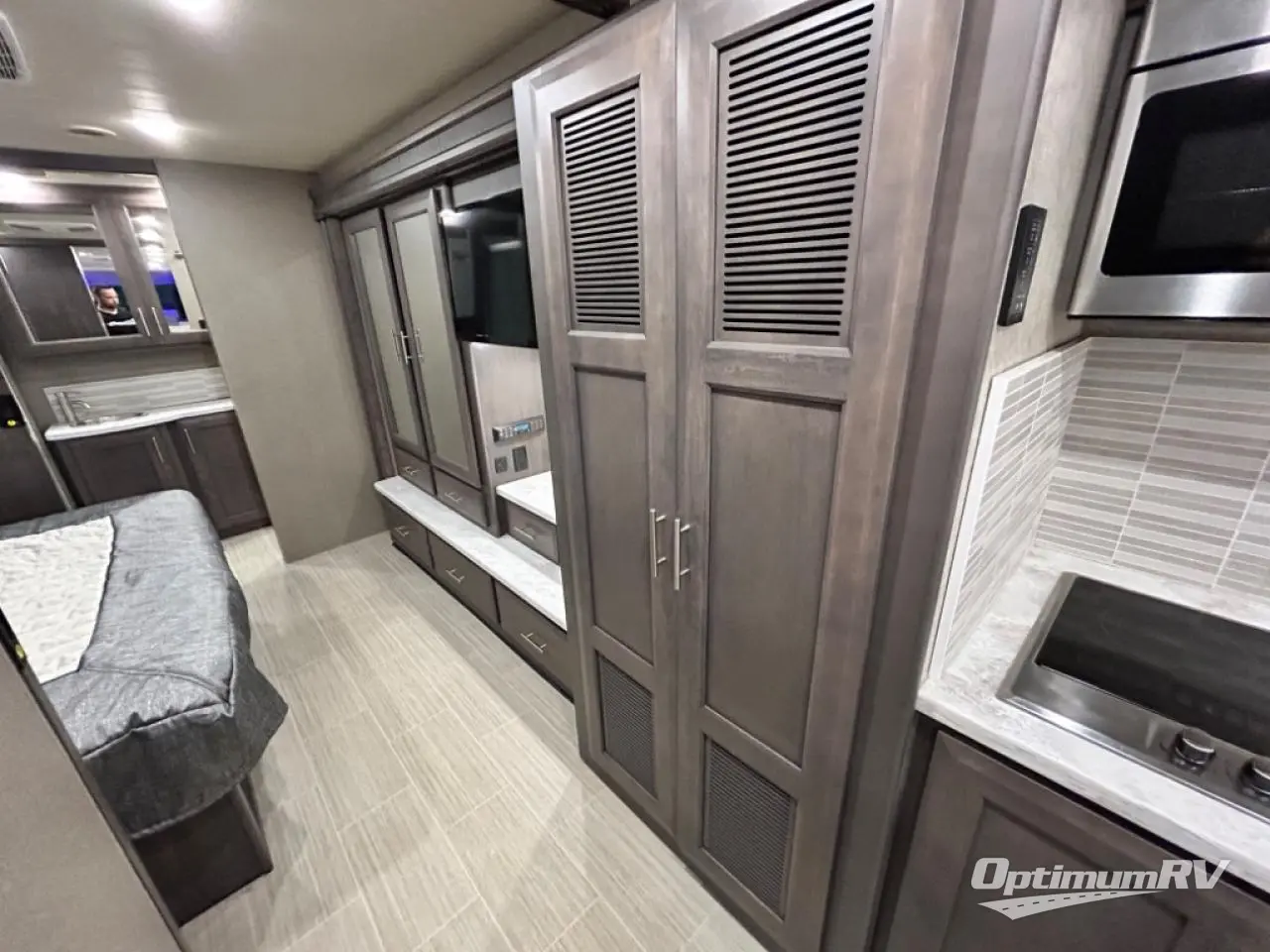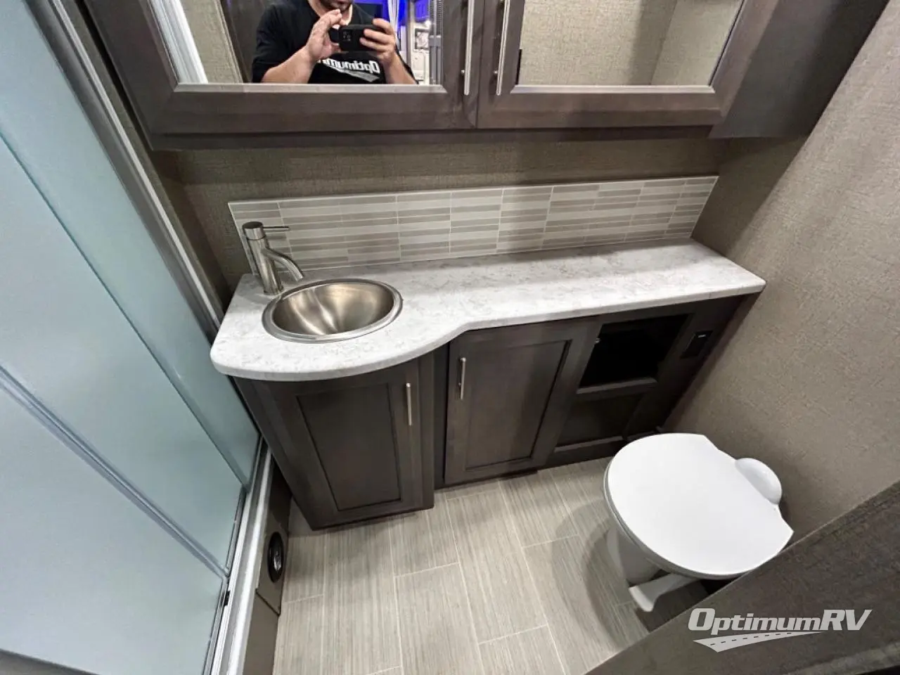 Take grand vacations in this feature-packed Magnitude Super C diesel motorhome that can sleep five to six people each night. The full and half bathrooms are sure to come in handy when traveling with friends, and the double slides provide more space to relax. You and your spouse may want to kick your feet up on the theater seating with incliners and footrests, or take a rest on the RV king bed in the master bedroom. This model also includes a 70" Dream Dinette that will be perfect for meal times, game night, and additional sleeping space. And don't worry about having to stop for fast food since the kitchen includes a two-burner gas range with single induction cooktop, a convection microwave, and a residential refrigerator for food!