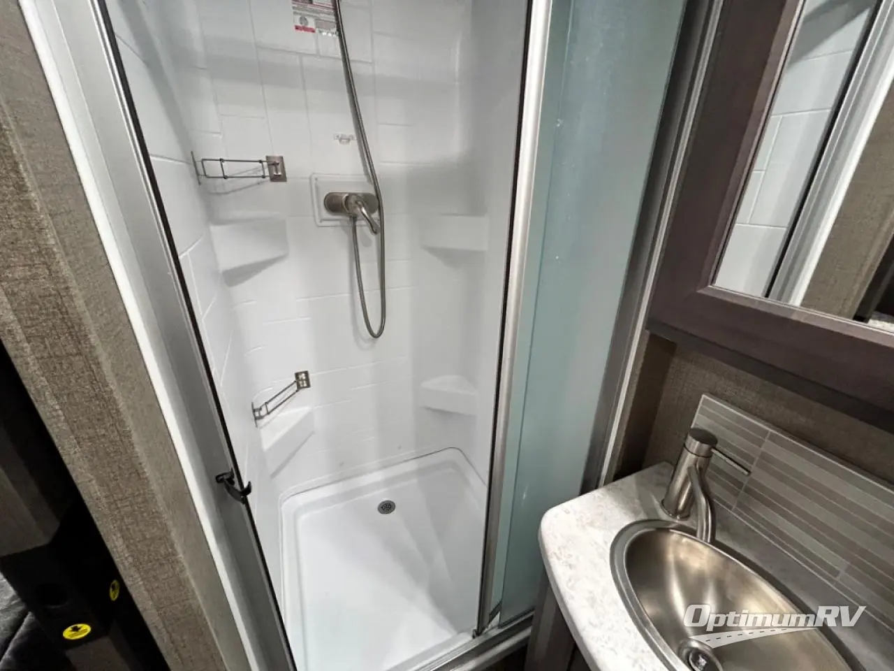 Make your journeys fantastic with the Thor Motor Coach Magnitude Super C diesel motorhome! The powered sky view shade above the cab area will let you feel the sun's rays while you travel down the road, and the cab has some additional features that will make traveling more enjoyable, like the FordPass Connect 4G Wi-Fi modem, rearview mirror with backup monitor, AM/FM and SiriusXM radio, and 8" color LCD touchscreen. The 7' interior ceiling will accommodate passengers of any height, and the pop-up outlet in the kitchen will give you a convenient location to charge devices. The dual roof air conditioners will keep you cool on the hottest days in summer, and the Onan RV QD diesel generator will power your coach and all of its electrical functions. You will also find a Winegard® ConnecT™ Wi-Fi extender + 4G and a Bluetooth coach radio system in the bedroom for some extra entertainment.
