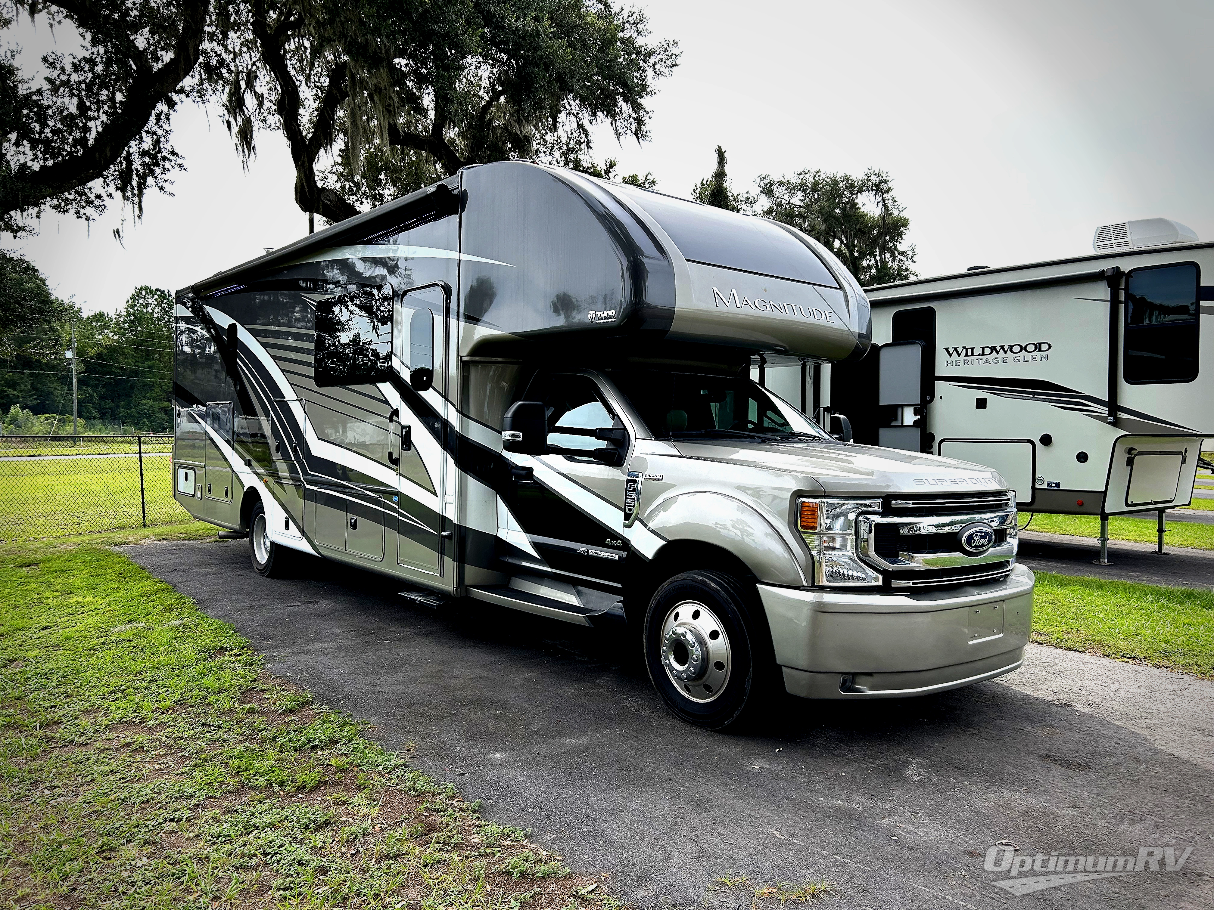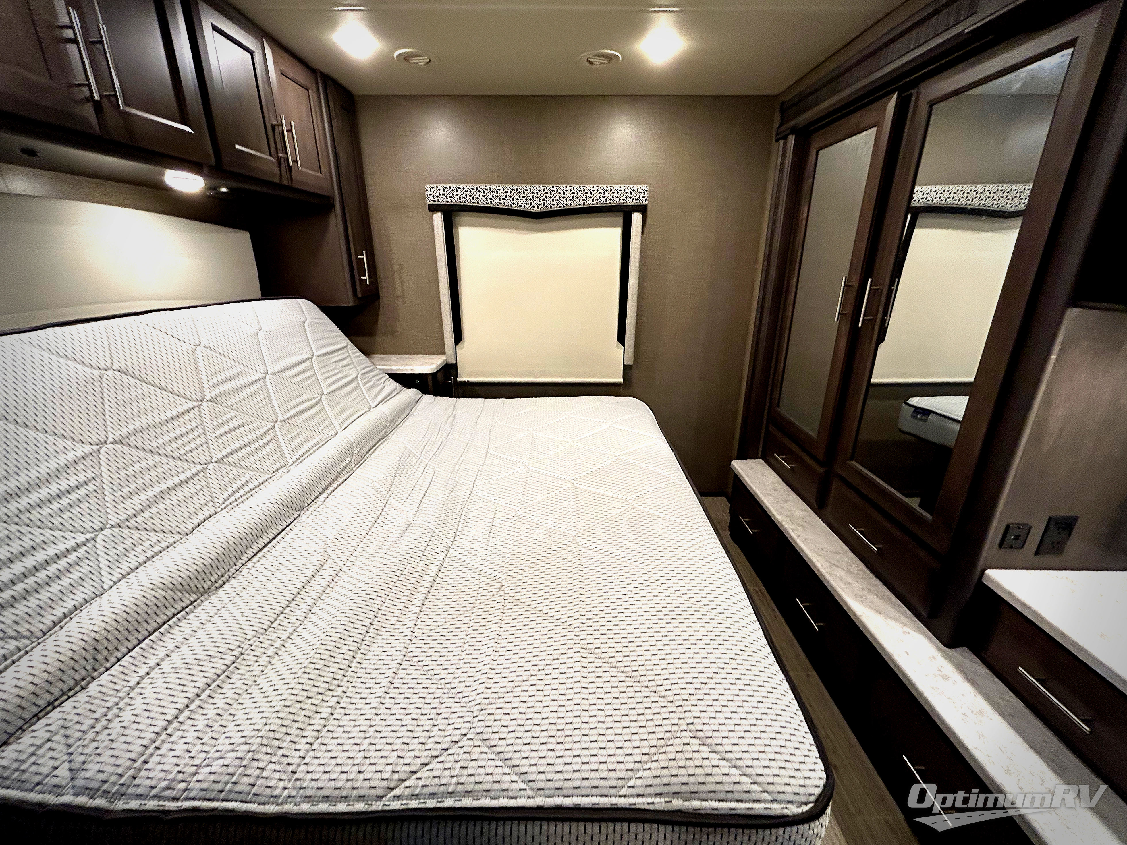 Make your journeys fantastic with the Thor Motor Coach Magnitude Super C diesel motorhome! The powered sky view shade above the cab area will let you feel the sun's rays while you travel down the road, and the cab has some additional features that will make traveling more enjoyable, like the FordPass Connect 4G Wi-Fi modem, rearview mirror with backup monitor, AM/FM and SiriusXM radio, and 8" color LCD touchscreen. The 7' interior ceiling will accommodate passengers of any height, and the pop-up outlet in the kitchen will give you a convenient location to charge devices. The dual roof air conditioners will keep you cool on the hottest days in summer, and the Onan RV QD diesel generator will power your coach and all of its electrical functions. You will also find a Winegard® ConnecT™ Wi-Fi extender + 4G and a Bluetooth coach radio system in the bedroom for some extra entertainment.