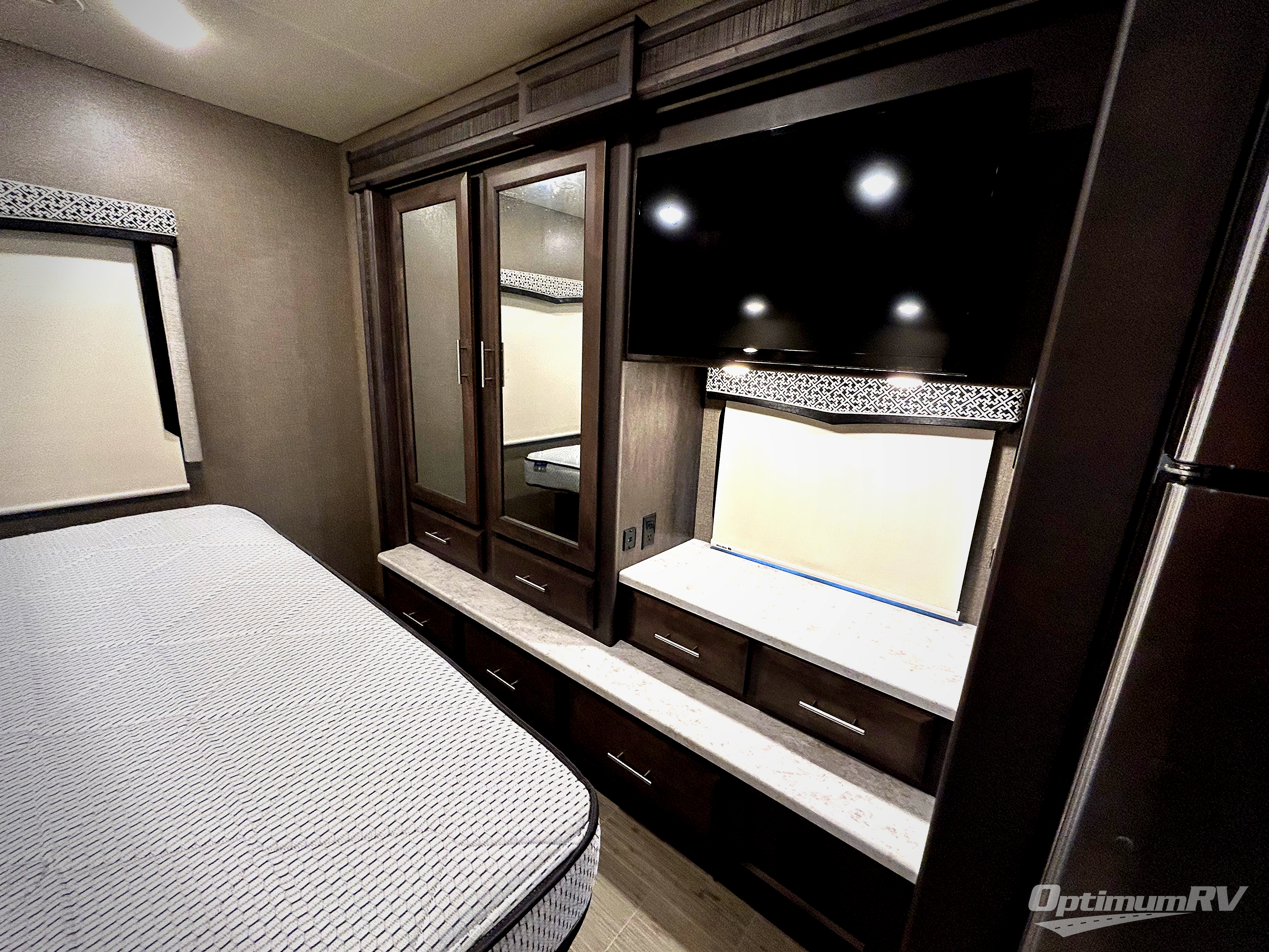 When you're ready to upgrade your RV, choose this Magnitude Super C diesel motorhome for a truly comfortable unit! The driver is sure to love the four-wheel drive. After you've arrived at your destination, you can prepare lunch on the two-burner gas range with single induction cooktop, or make something quick in the convection microwave. Your kids or guests can climb up into the 59" x 80" bunk over the cab and watch a movie on the 39" TV that also swivels for when the whole family wants to watch a show. This unit includes a rear bedroom with a Tilt-A-View inclining RV king bed and 32" TV, and the full bath is ready when you are since the tankless water heater provides hot water wherever you go.