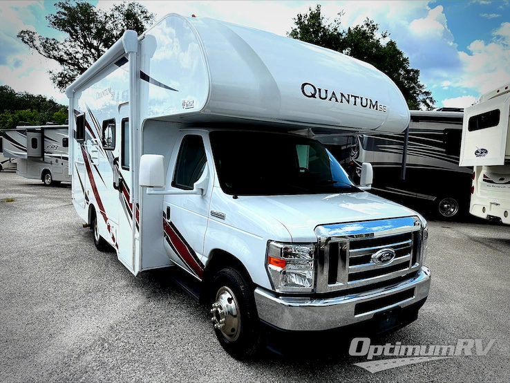 Each Quantum SE is constructed atop a Ford E-Series chassis and powered by a 7.3L V8 350 HP engine. Model SE22 is also available with an optional Chevy chassis which is powered by a 6.0L V8 323 HP engine. A one piece fiberglass front cap and exterior, including a graphics package, provides a stylish appearance that is easy to maintain for years of family travel. You will also love the keyless entry and dash applique', plus the drop down stairwell entrance step with accent light which is a great feature after dark. Plenty of seatbelts for your rear travelers in all rear seating positions will keep your passengers safe as you head to each new adventure destination. Each unit provides a MEGA-Storage compartment, and each roto-cast storage space is lighted so you can easily find what you need even after dark. The on-board Onan RV QC 4000 gas generator and solar prep make going off-grid for awhile easy. Why not make one of these Quantum SE models your new traveling home-on-wheels.