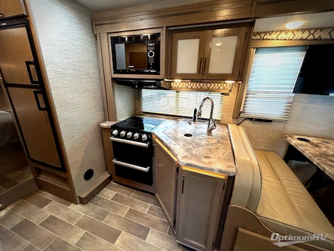 Seating and sleeping for seven family members or friends will make this a great choice for traveling both near and far. This unit features a large slide out for added interior space, plus plenty of storage both inside and out. The kids will love the cab-over bunk for sleeping and relaxing. You will also find sleeping space for three more up front with the 68" jack-knife sofa and 71" Dream Dinette. You can easily transform each of these into comfortable sleeping spaces at night. A private bedroom just one step up beyond the kitchen and bath area provides a bit of privacy from the rest of the coach, and there are two nice closets for your things. You can even add an optional 32" TV here if you like. You will find plenty of overhead storage throughout, and the MEGA-Storage outside is great for outdoor games, toys, and other camping equipment that you can keep neat and organized until you need them. You might even like to add the optional exterior 32" TV to watch while relaxing under the power awning.