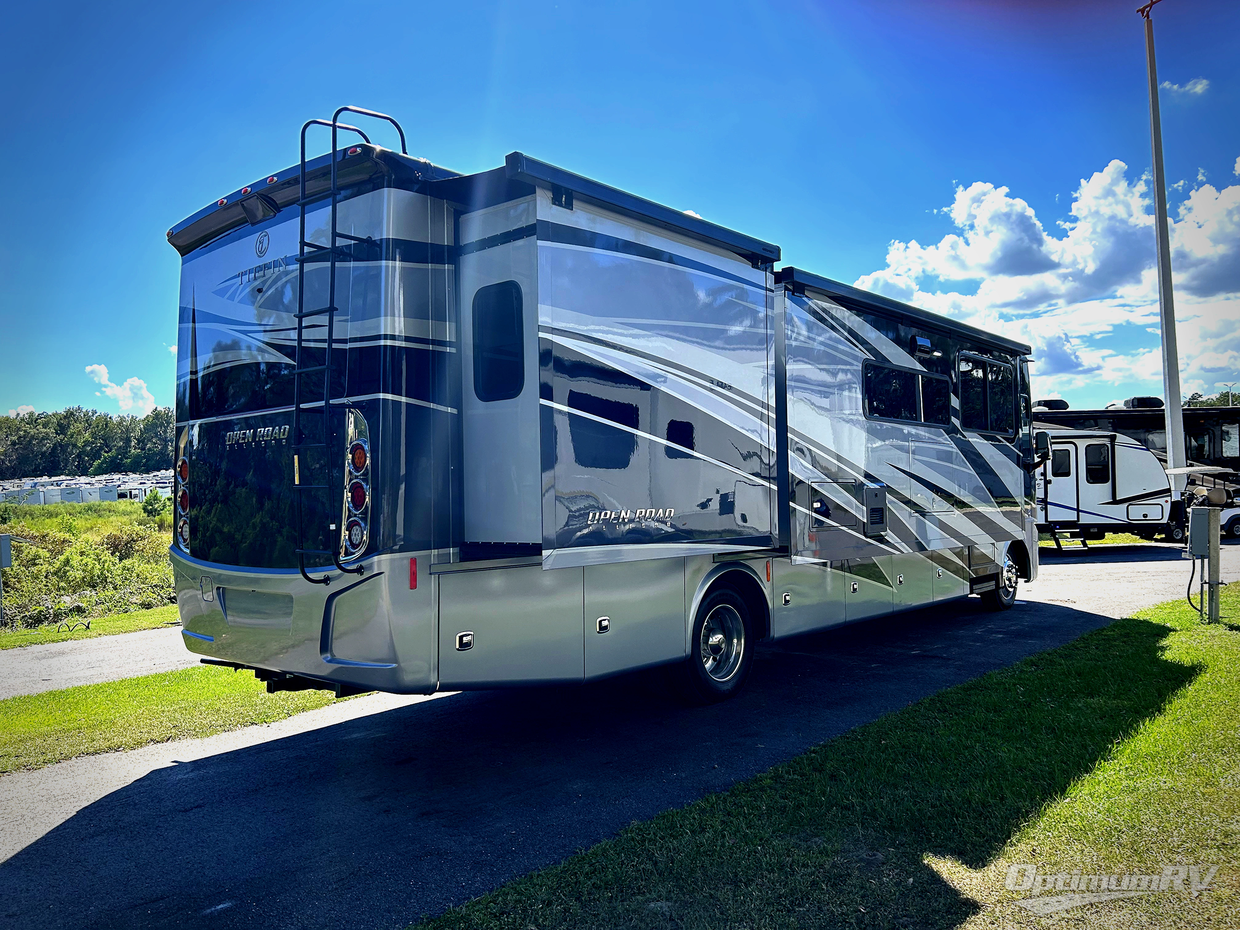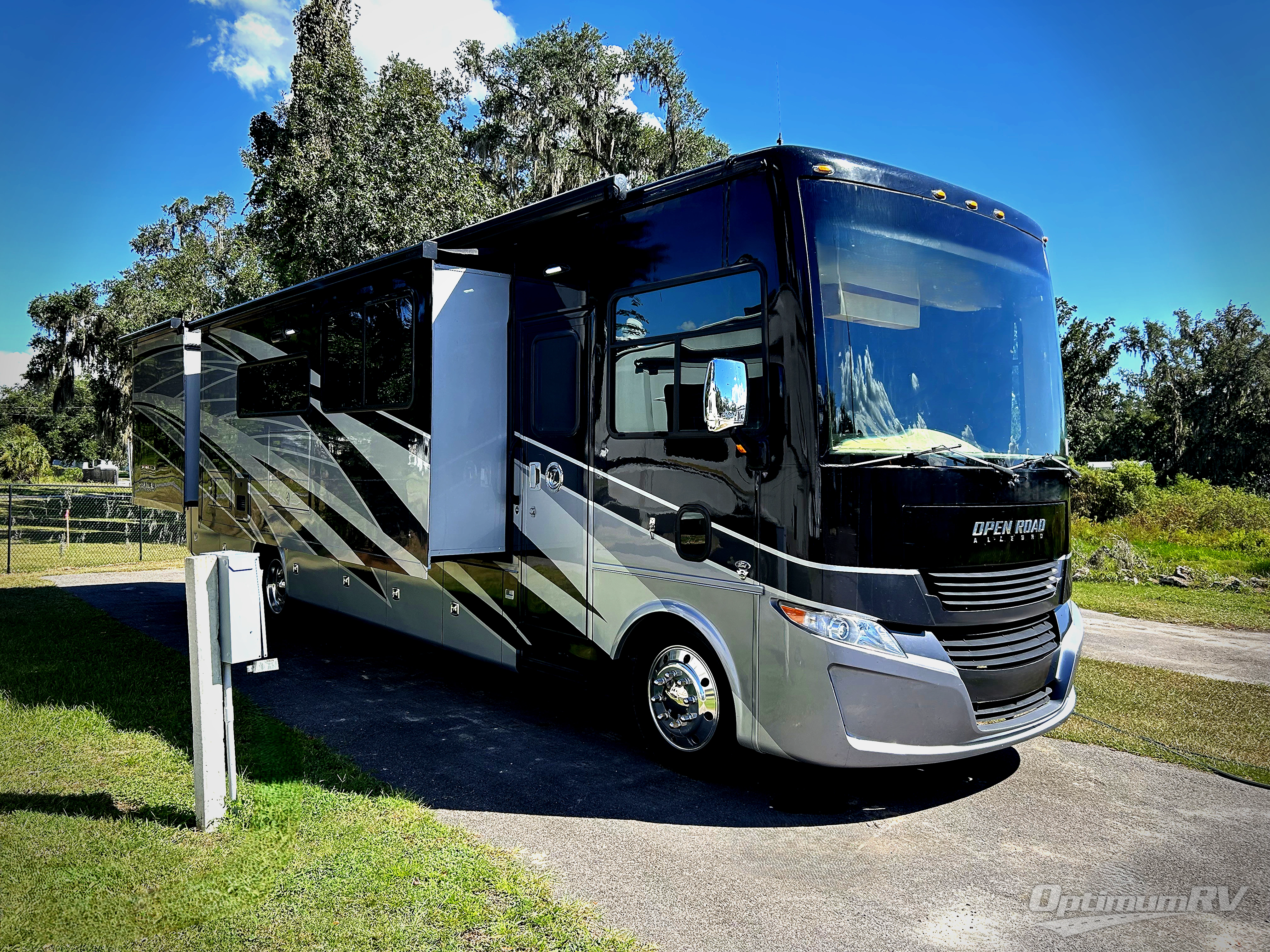 Every one of these Tiffin Motorhomes Open Road Allegro Class A gas motorhomes are ready to go when ever you are! A Ford 7.3L V8 engine powers these units and a durable, yet lightweight, tubular aluminum wall skeleton holds them together. They are beautifully designed with handcrafted cabinetry, ultraleather furniture, and a panoramic kitchen galley window for you to look out at your breathtaking views. A few electronic features you will appreciate include an exterior TV with a soundbar, a Spyder multiplex system with app compatibility so you can use it at the touch of a finger, and a mid-section flat panel TV with soundbar, plus there is an Extraordinaire AC system to keep you cool on those hot summer days. Hydraulic automatic leveling jacks keep you in place once you arrive and an electronic stability control/traction control will help you safely arrive. With a luxurious design, innovative technologies, and thoughtful amenities, what more could you want.