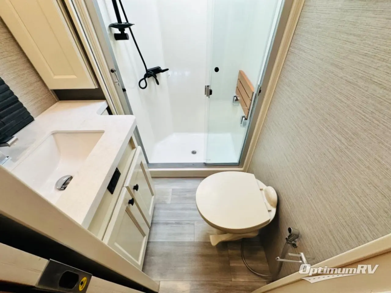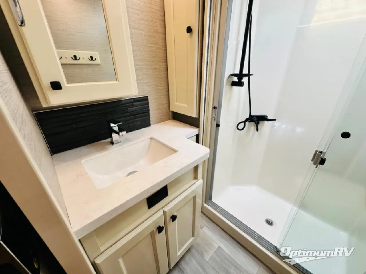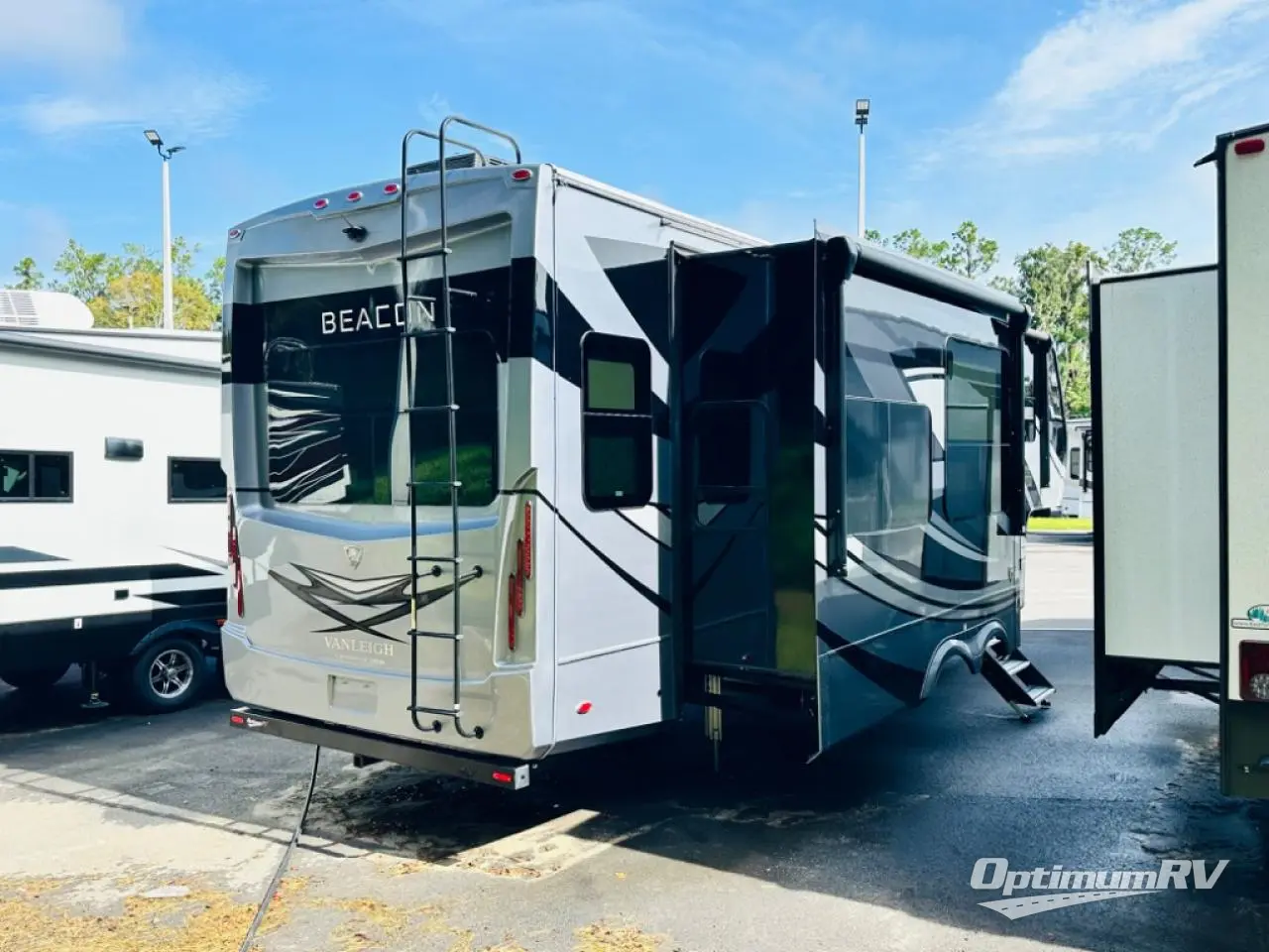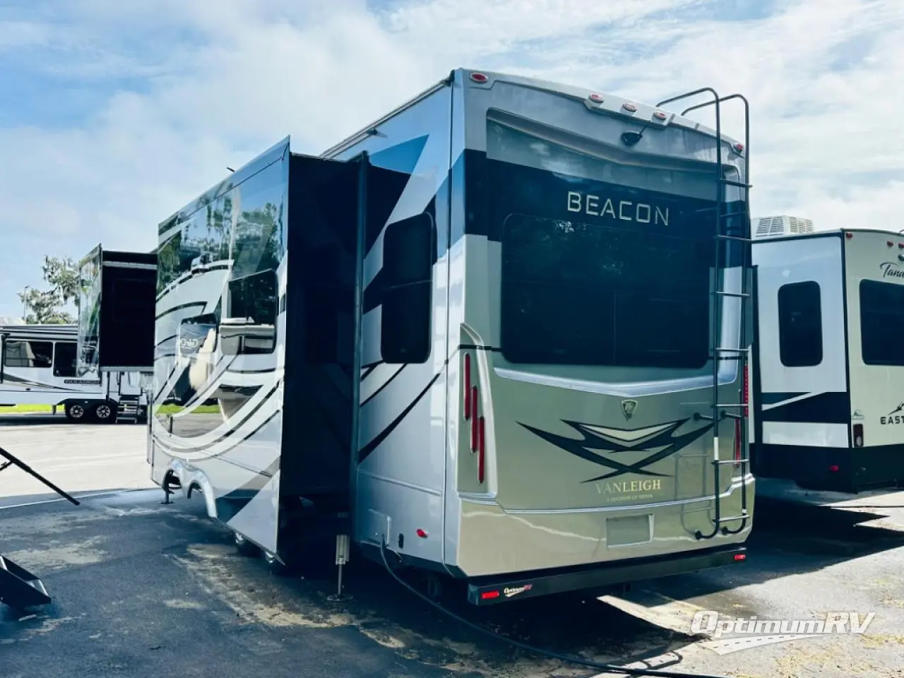 Each Beacon fifth wheel by VanLeigh RV is made with your comfort in mind. From the high-quality Franklin furniture, made in the U.S.A, to the Cool Gel Memory Foam mattress, it's easy to find luxury features at every turn. There is a galley window in each model so you will have a view of the great outdoors as you clean up, and each kitchen includes a stainless steel farm sink, a hand-built pantry to store all your items, plus an LG residential refrigerator with ice and water in the door. You will love the sleek look of the full overlay hardwood cabinetry and faceferames, the hand laid vinyl tile flooring throughout, and the hardwood ceiling decor with recessed LED lighting. Plan to travel year around with the Whisper Quiet A/C system, the 42,000 BTU furnace, and the 7,200 BTU electric fireplace, plus each model is constructed with a fully enclosed and heated underbelly with heat return. The outside of the Beacon features two patio awnings on slide boxes, an LED lighting system, plus dual exterior speakers to keep the party going day or night!