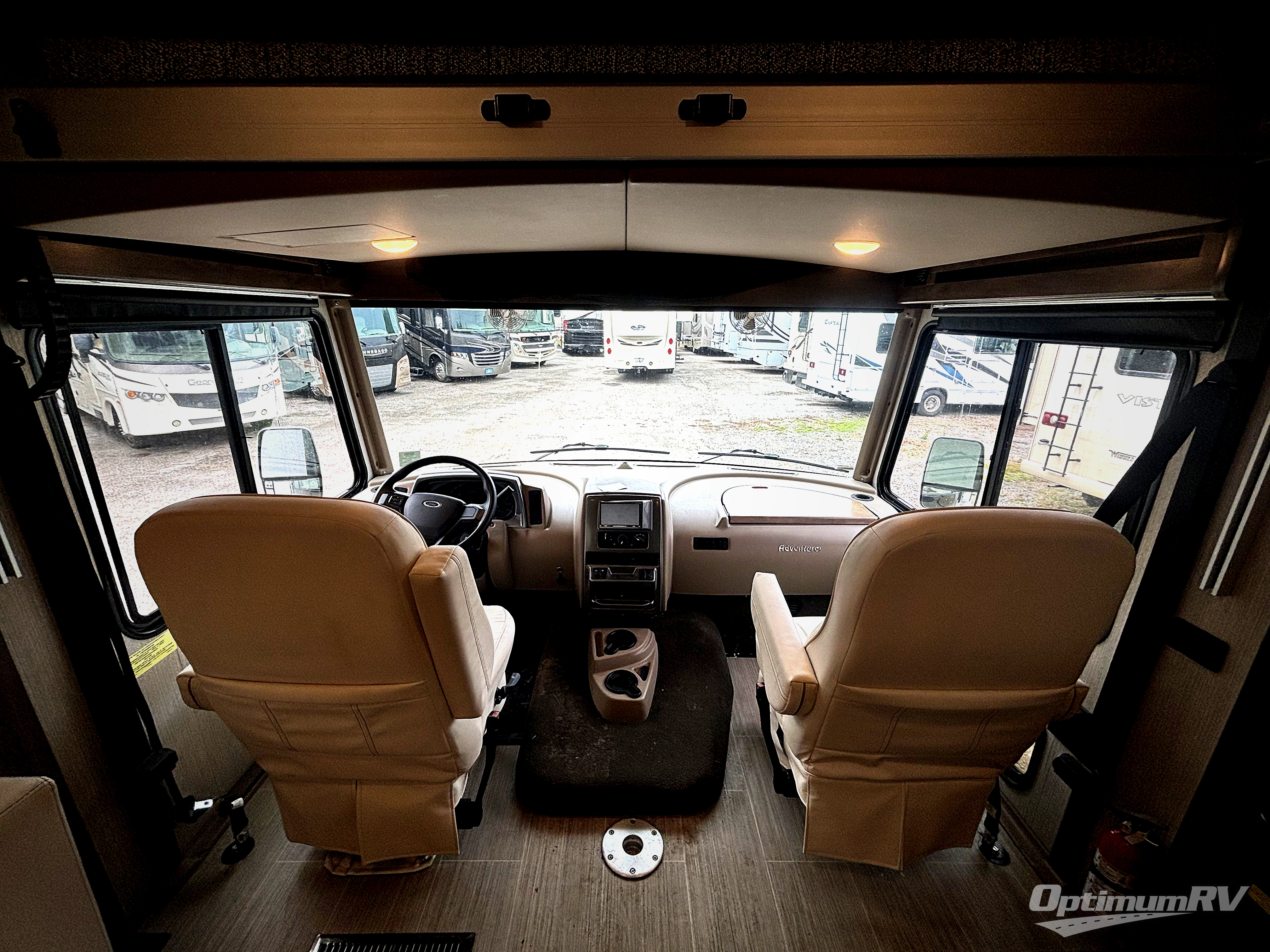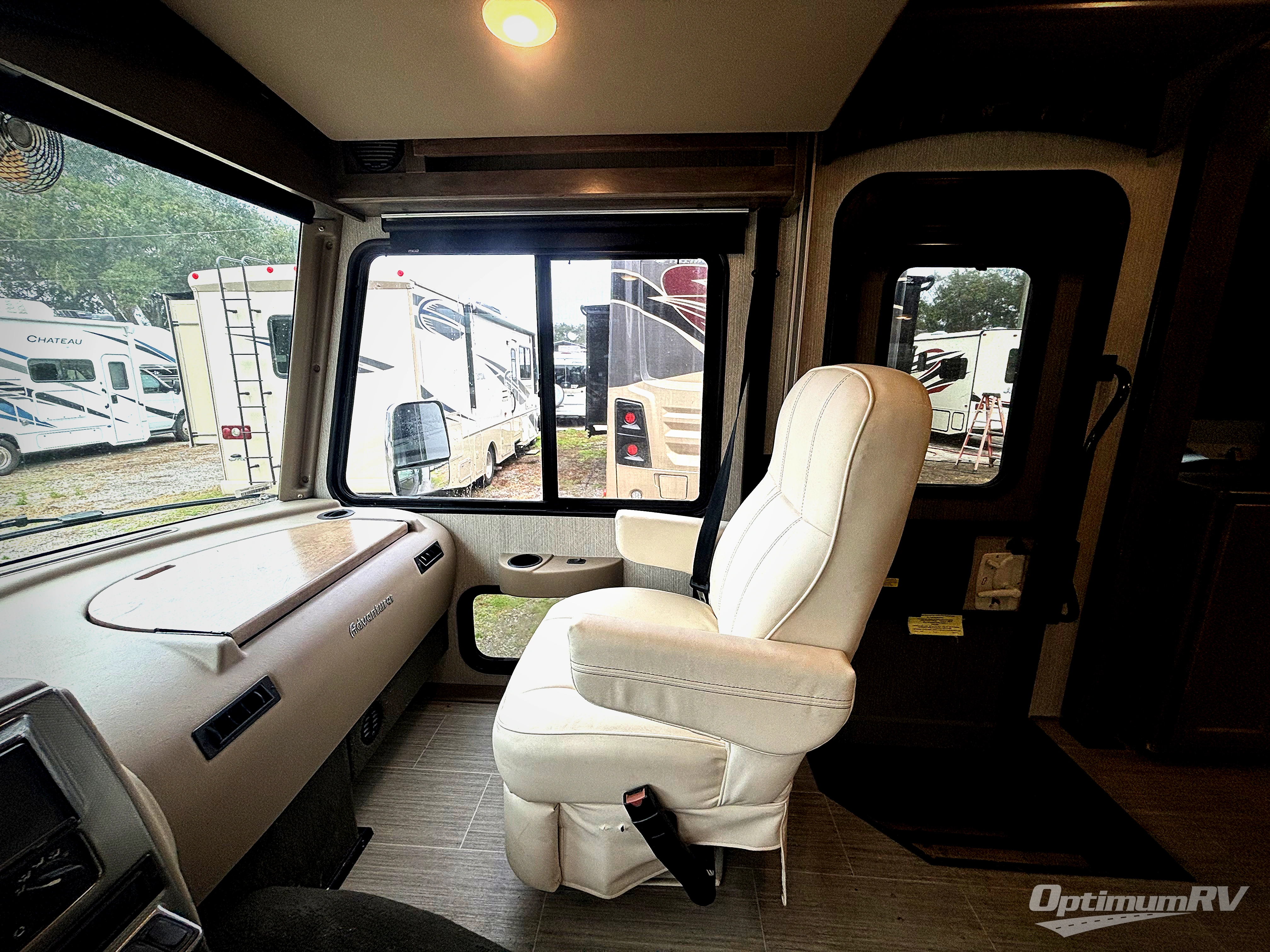 The family-friendly Adventurer Class A gas motorhome by Winnebago is the ultimate family getaway for your trips near and far. The swivel captain's seats include fixed lumbar support and multi-adjustable slide/recline for a truly comfortable ride. You will appreciate the 7" Bluetooth multimedia radio with a rearview/sideview monitor system and color touchscreen for easy navigation, and the powered MCD blackout roller visor/shade on the front windshield will provide privacy when you stop for lunch. Each model includes residential vinyl flooring throughout, a soft vinyl ceiling, a solid-surface kitchen countertop, and a double stainless steel sink with bamboo sink covers. The under-bed storage will provide a place for your luggage, and you'll find lighted storage compartments outside for all your larger gear. These models are constructed with a premium high-gloss fiberglass skin for a sleek look, and the electronic stability control will provide a smooth ride wherever the road takes you!