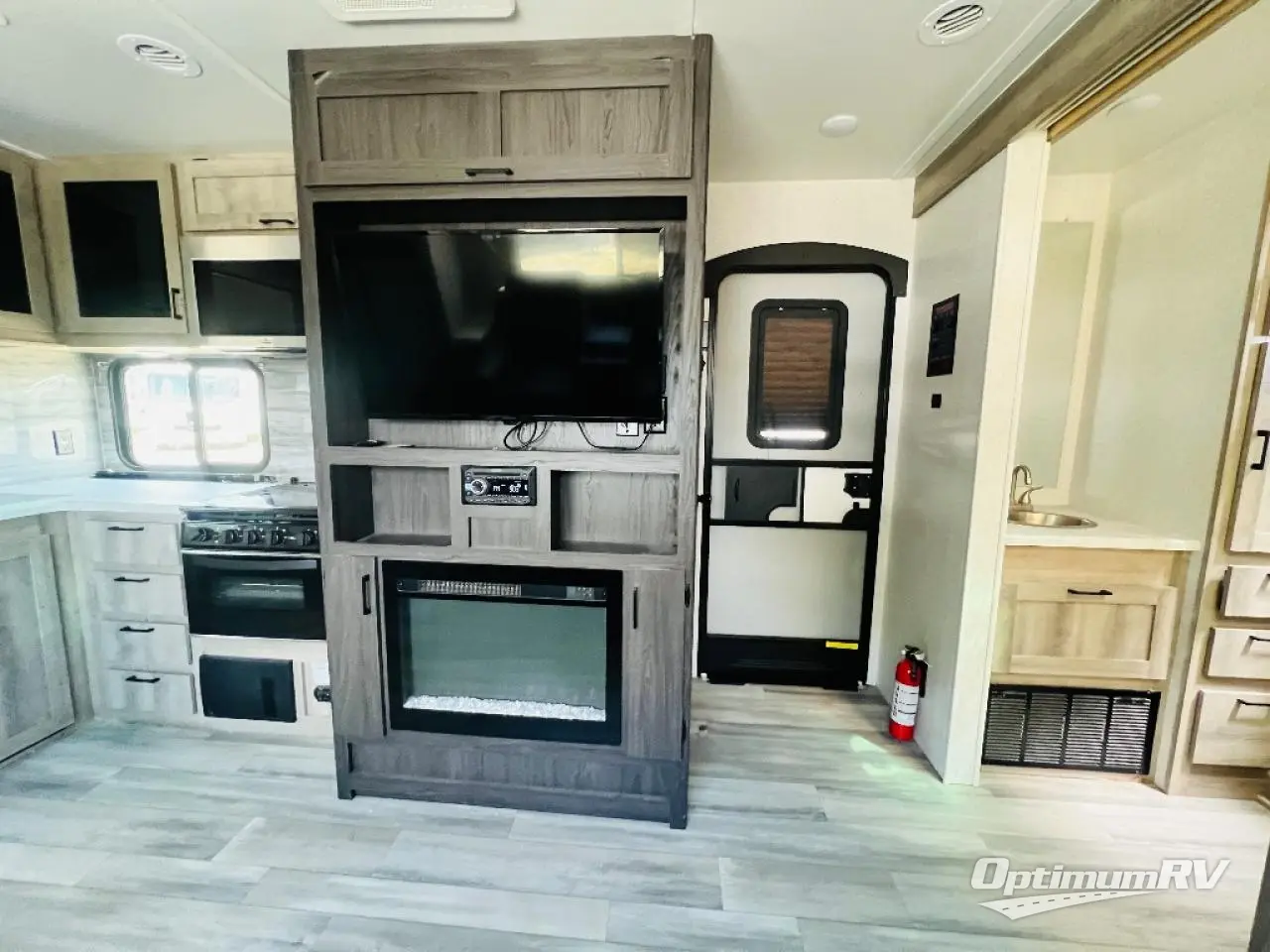 Get ready for adventure from backpacking in the mountains to lounging by the lake, you will be able to do it all when you have these home-like comforts to return to. The front private bedroom provides you with a queen-size bed so that every night is comfortable or choose the king bed option, and the full rear bathroom has a large skylight above the shower and a large medicine cabinet with mirror for your morning routine. Sit back on the tri-fold sofa with sofa table and enjoy the view of the entertainment center. You can also reach into the refrigerator right next to you to grab a little snack if you get hungry, and there is a larger walk-in pantry by the main entry.