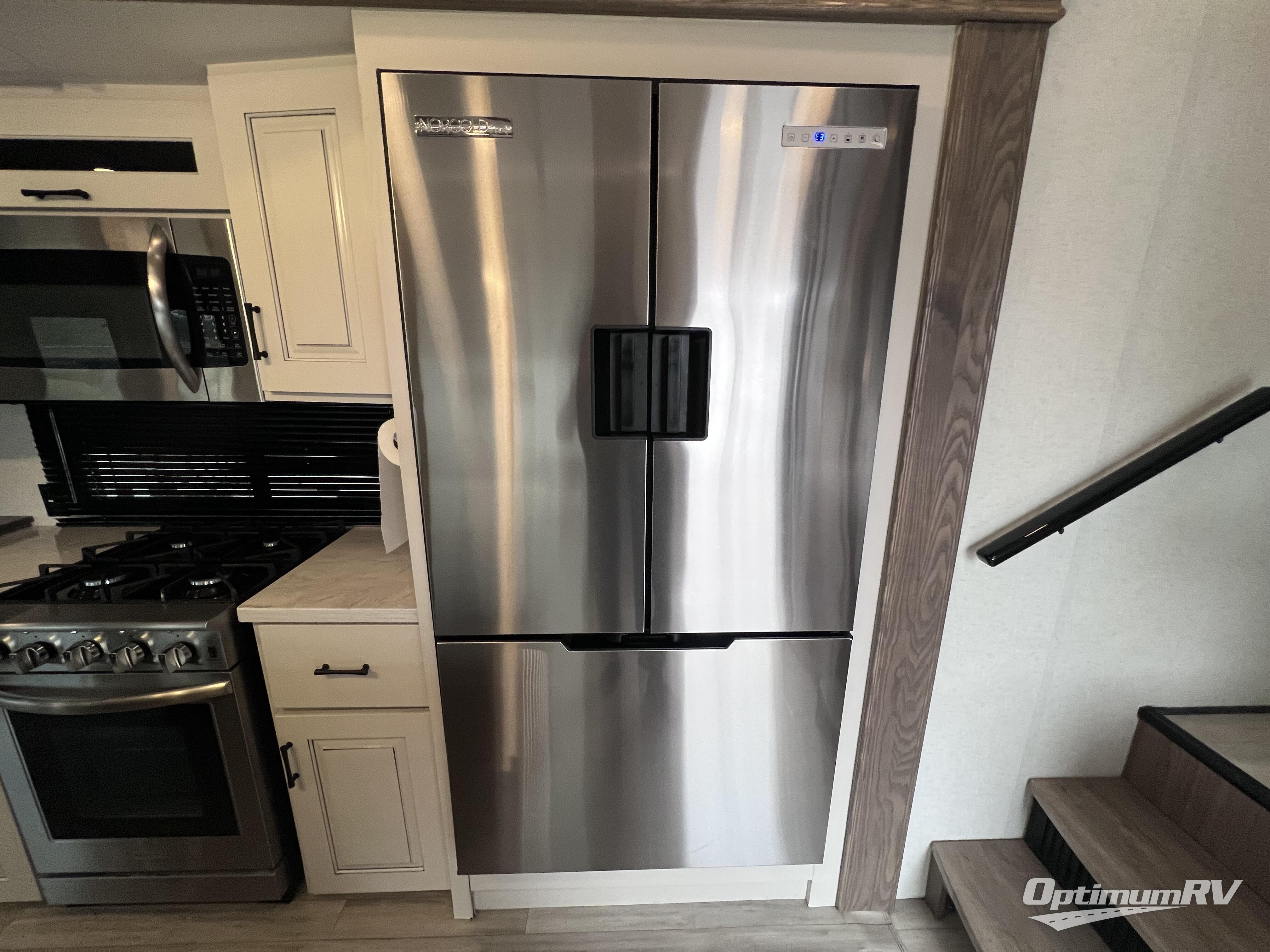 The Paradigm fifth wheels by Alliance RV are functional, high-quality, and luxurious for an unforgettable camping experience. There are three A/C units and a 40K BTU furnace to keep you comfortable year around, and you'll appreciate additional convenient amenities, like the all-in-one enclosed/heated utility center and the color coded and numbered wiring. A Roto-Flex pin box comes standard for hassle-free towing, along with Super-G 4,400 lb. rated tires and Dexter 7,000 lb. axles. You'll love the kitchen with its LG solid surface countertops and Insignia range, plus there is LED motion lighting in the pantry and a Maxx fan with a rain sensor to keep everything fresh when making dinner. Each model also includes an HD Smart TV in the living room and bedroom, plus a Winegard Air 360 antenna to keep you connected to the outside world. And of course there are a variety of options you can choose from to further customize your fifth wheel; dual pane windows, Super Solar Plus, slide out awning toppers, and generator prep or a generator to name a few!