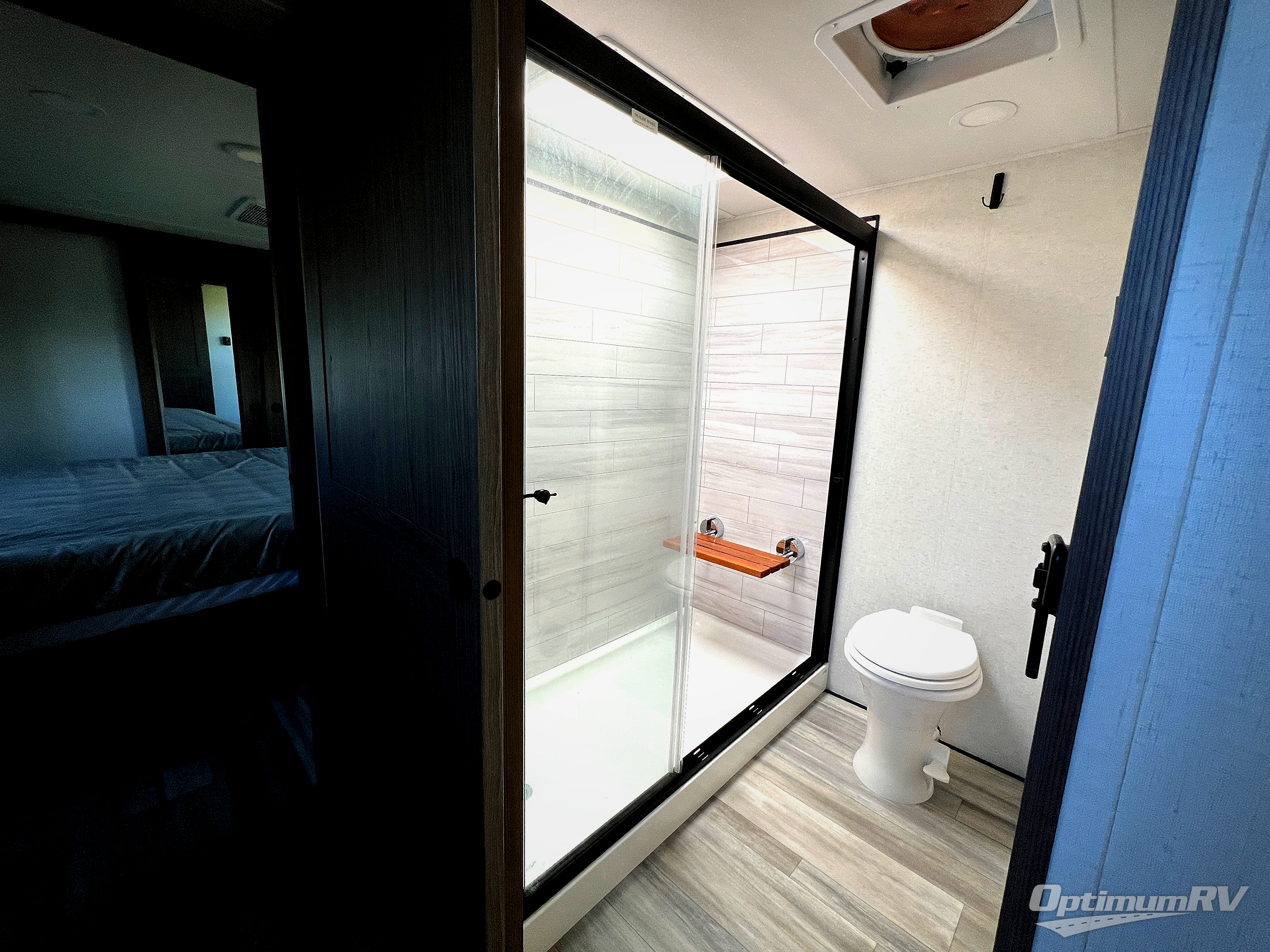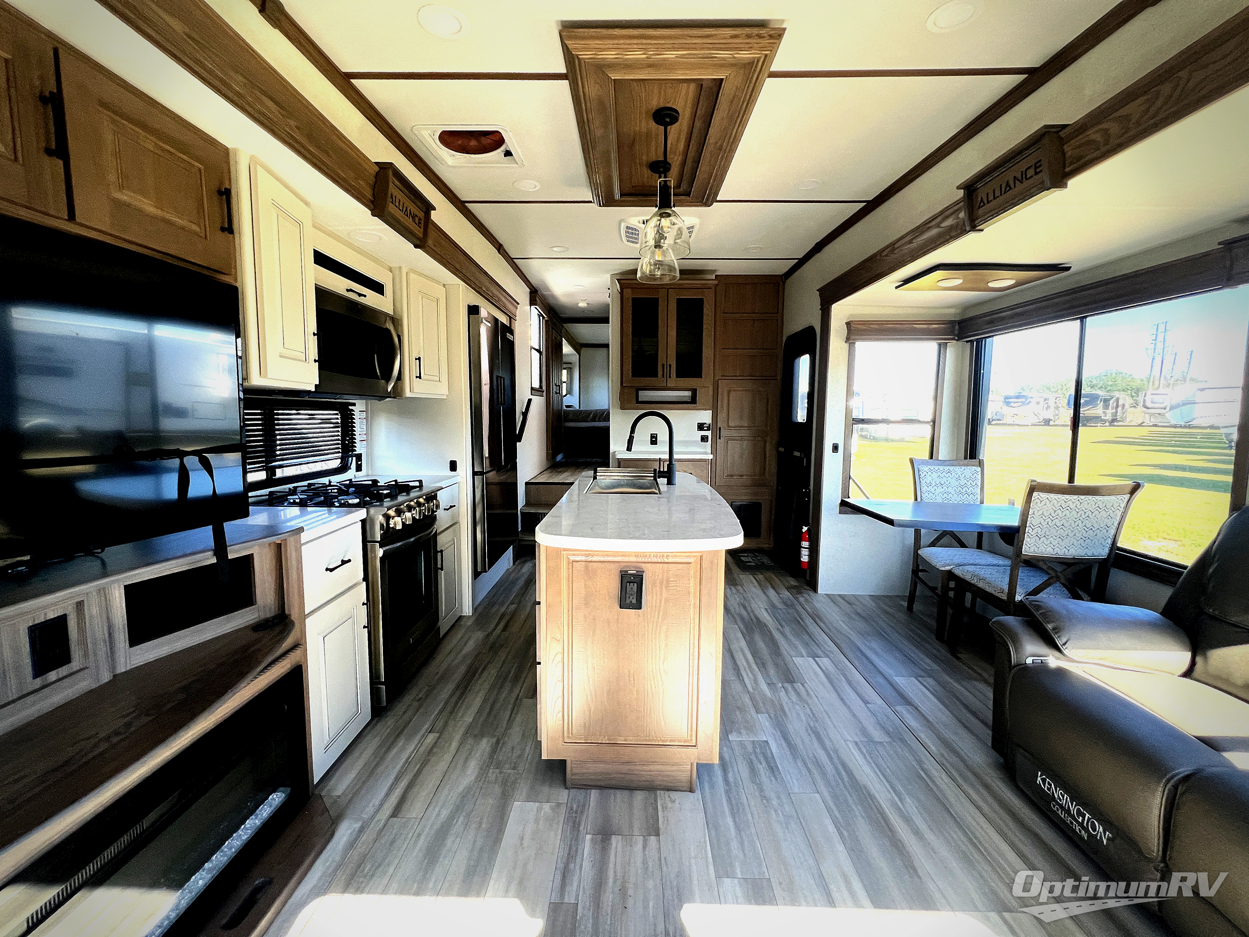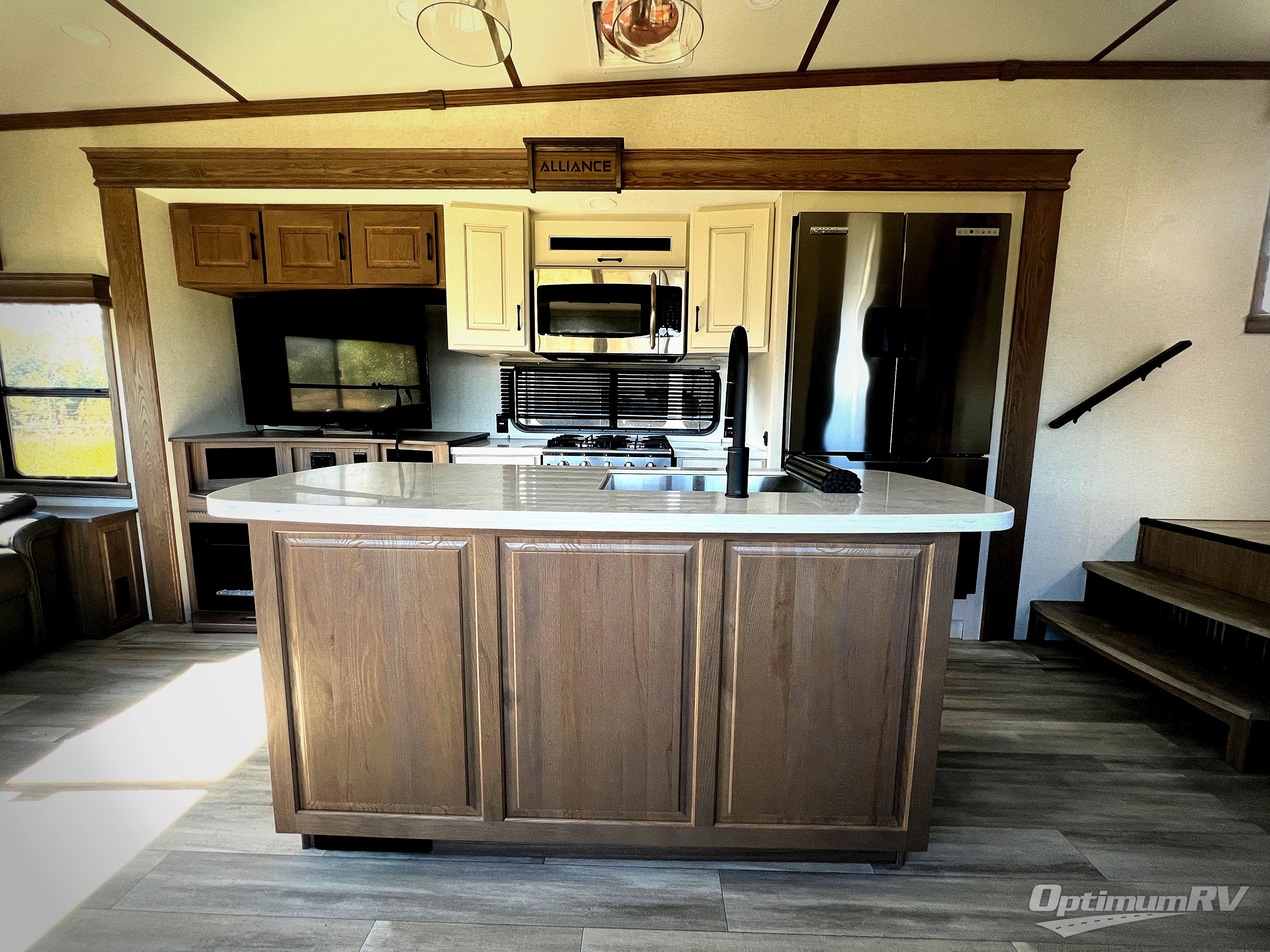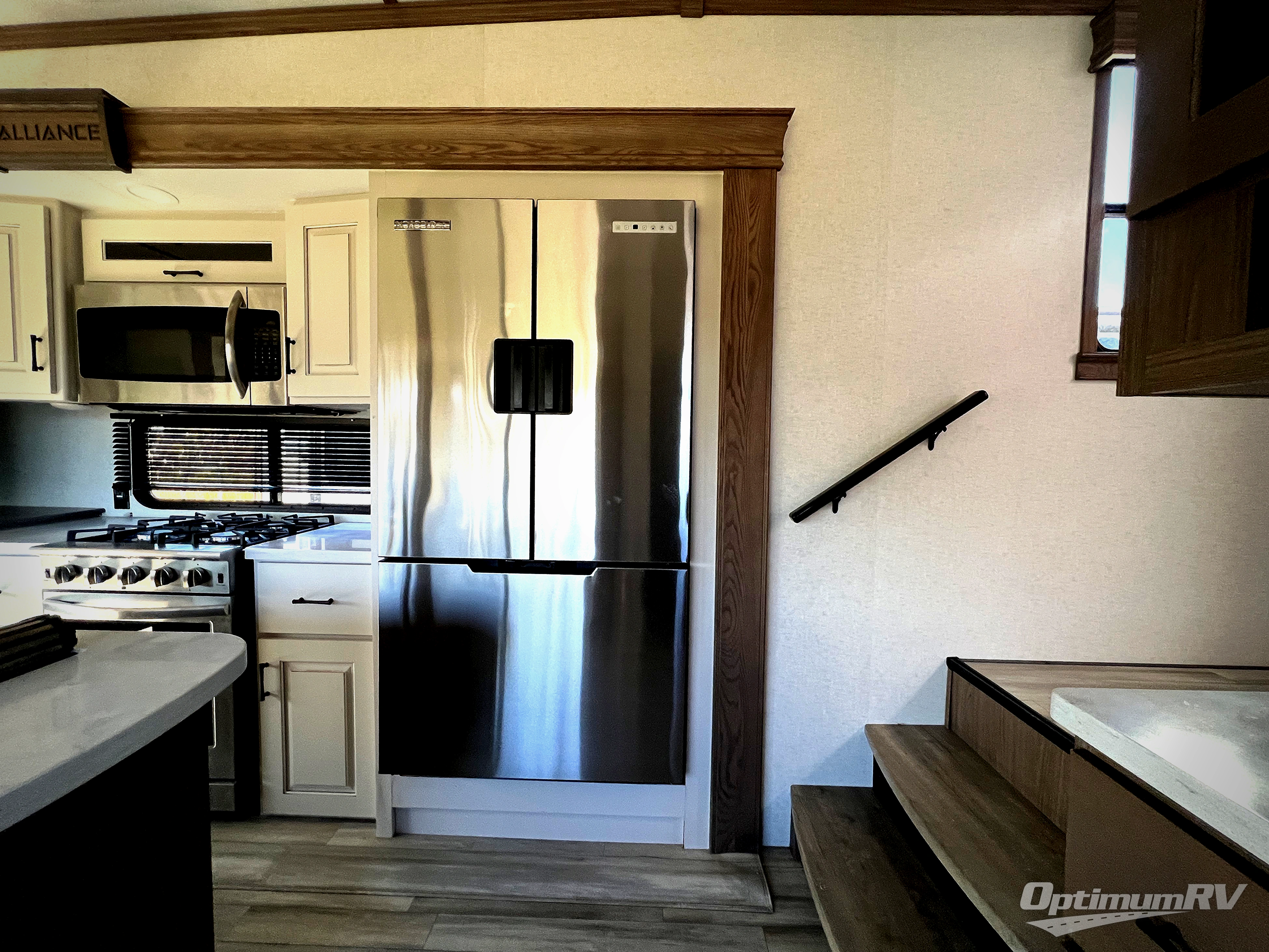 The Paradigm fifth wheels by Alliance RV are functional, high-quality, and luxurious for an unforgettable camping experience. There are three A/C units and a 40K BTU furnace to keep you comfortable year around, and you'll appreciate additional convenient amenities, like the all-in-one enclosed/heated utility center and the color coded and numbered wiring. A Roto-Flex pin box comes standard for hassle-free towing, along with Super-G 4,400 lb. rated tires and Dexter 7,000 lb. axles. You'll love the kitchen with its LG solid surface countertops and Insignia range, plus there is LED motion lighting in the pantry and a Maxx fan with a rain sensor to keep everything fresh when making dinner. Each model also includes an HD Smart TV in the living room and bedroom, plus a Winegard Air 360 antenna to keep you connected to the outside world. And of course there are a variety of options you can choose from to further customize your fifth wheel; dual pane windows, Super Solar Plus, slide out awning toppers, and generator prep or a generator to name a few!