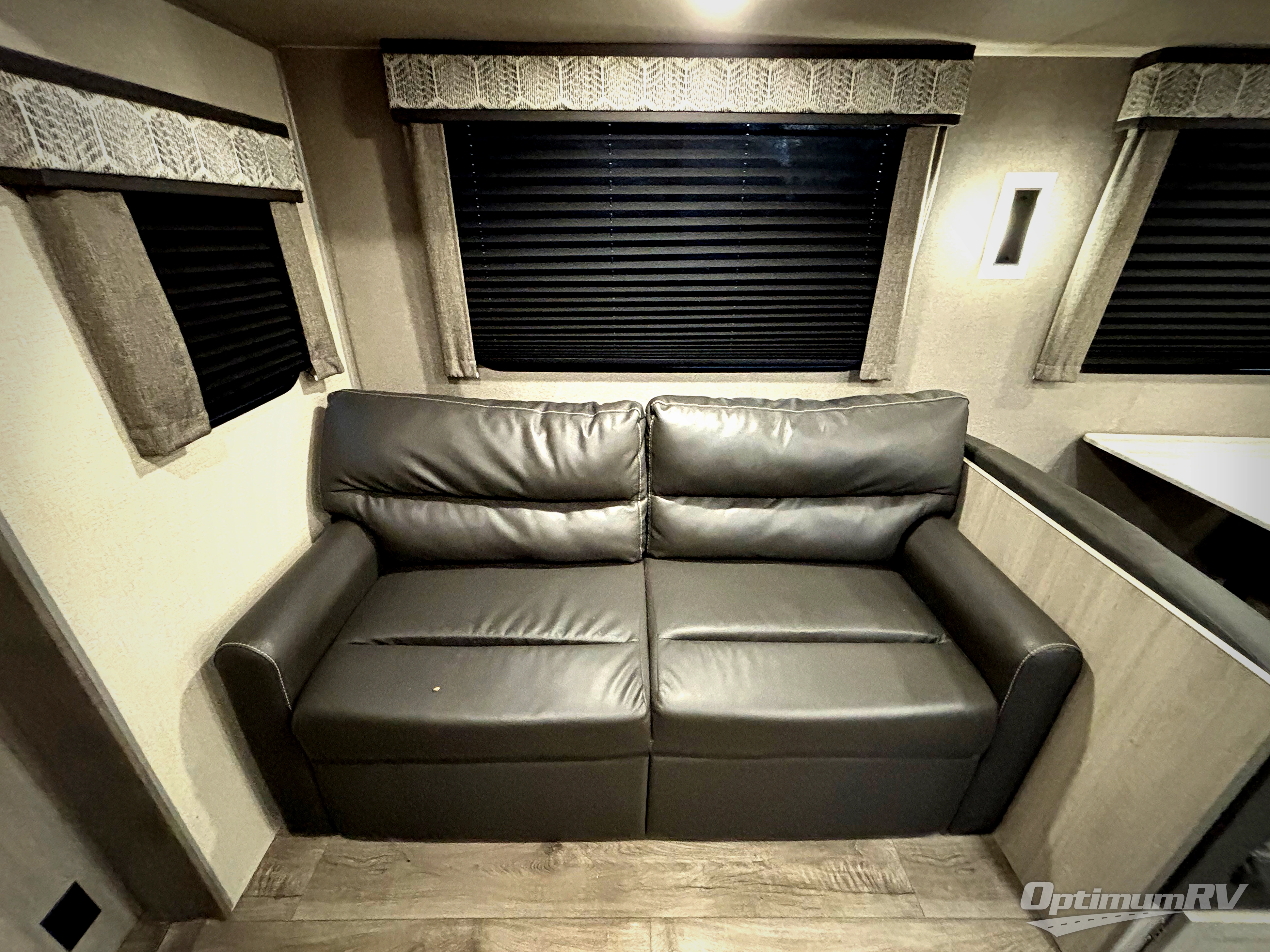 Step into comfort with this front kitchen travel trailer! You will love the amount of counter space you have to prep and cook meals. There is also an outdoor camper kitchen with a griddle and mini refrigerator for breakfast outdoors. There is plenty of storage space for all your belongings, including two kitchen pantries, overhead cabinets, a closet and a wardrobe, plus a pass-through storage. Your crew can get comfortable on the 70" sofa and booth dinette within the large slide out, and there is an entertainment center if you plan to bring your own TV. And don't overlook the rear master bedroom with a queen bed slide out, a wardrobe, plus its own exterior entry door!