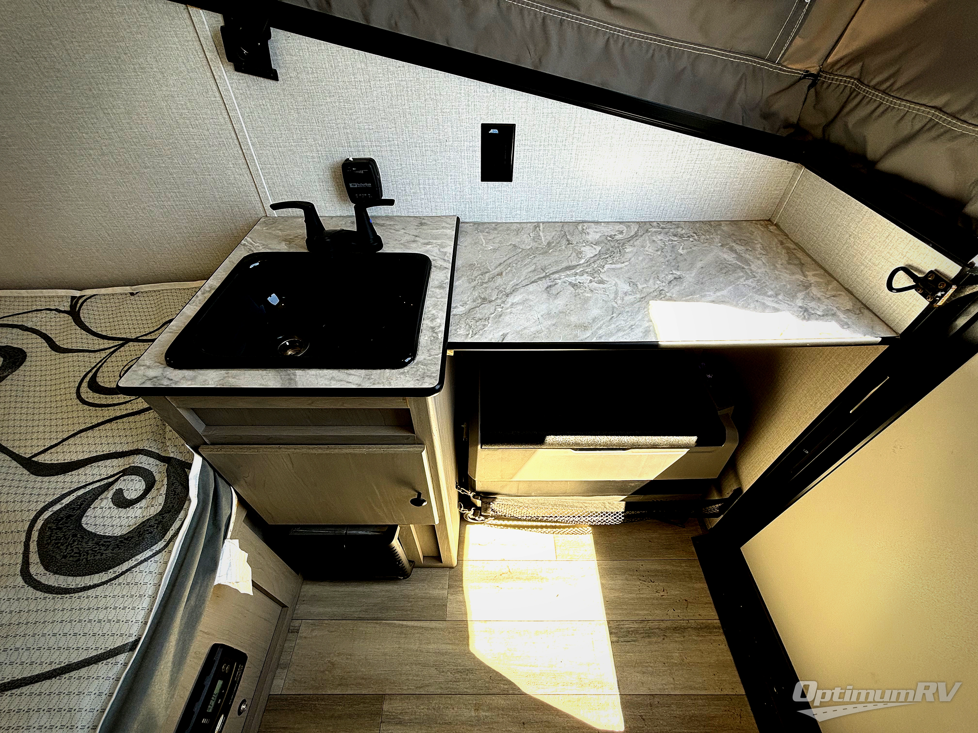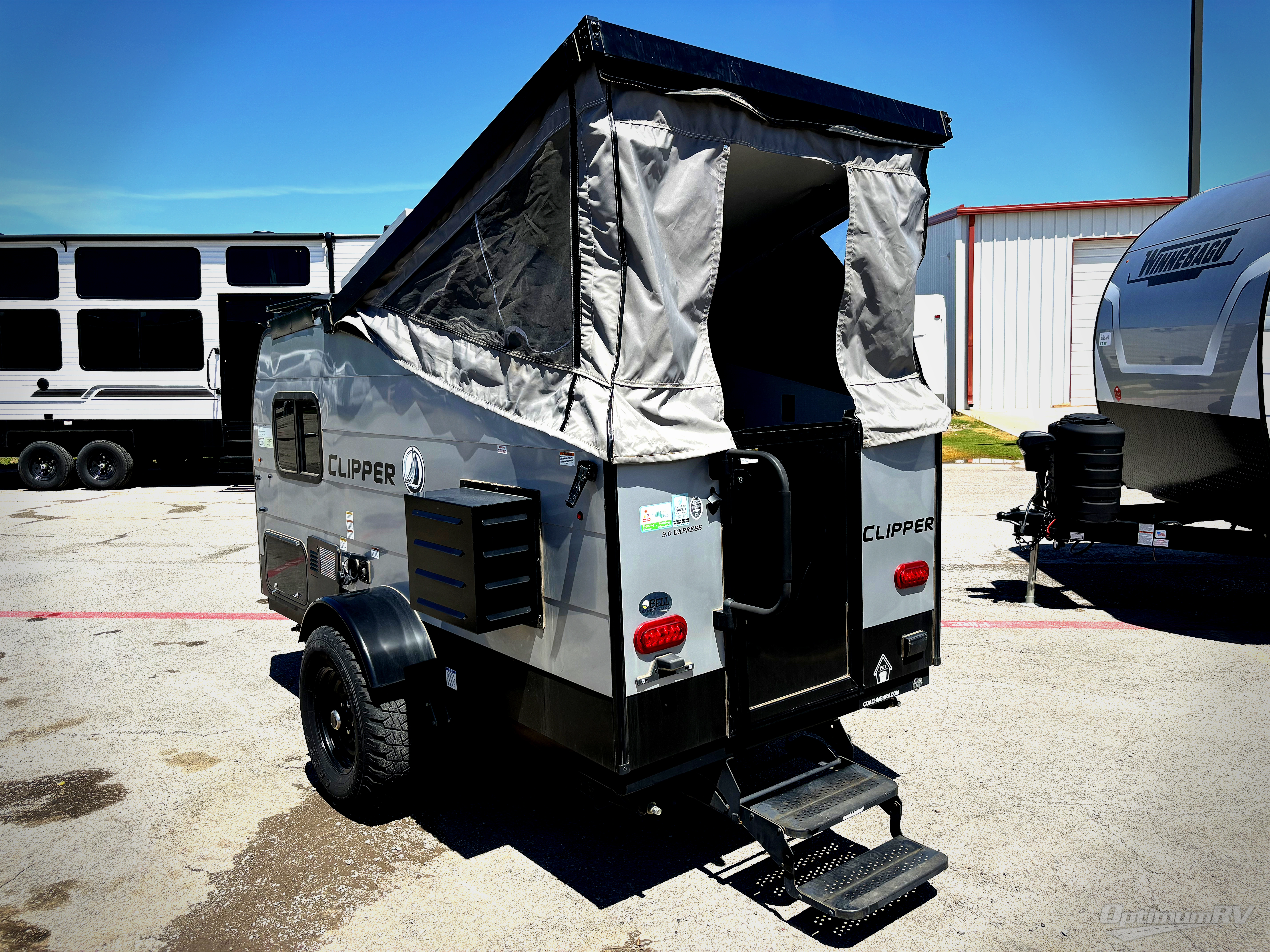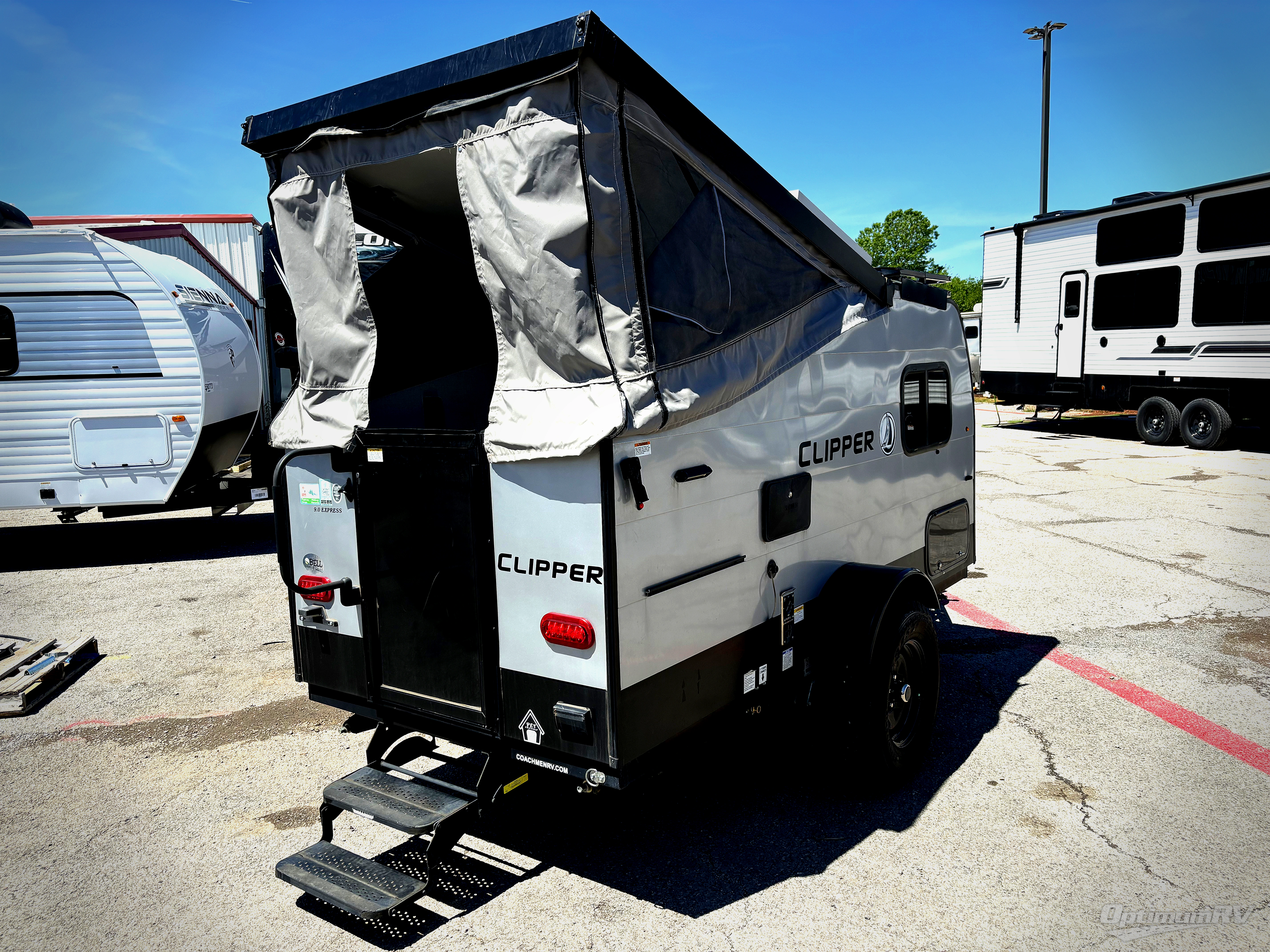 The Clipper Camping Trailers by Coachmen are your ticket to fun and adventure. These pop-up campers are easy to tow, easy to store, and easy to love! You'll appreciate stabilizer jacks to keep your camper secure at the campground, plus exterior storage and a spare tire for more convenience. Aqua-Shield tenting material also comes standard, along with steel rims, electric brakes, and an E-coated tubular steel frame for added strength and durability.