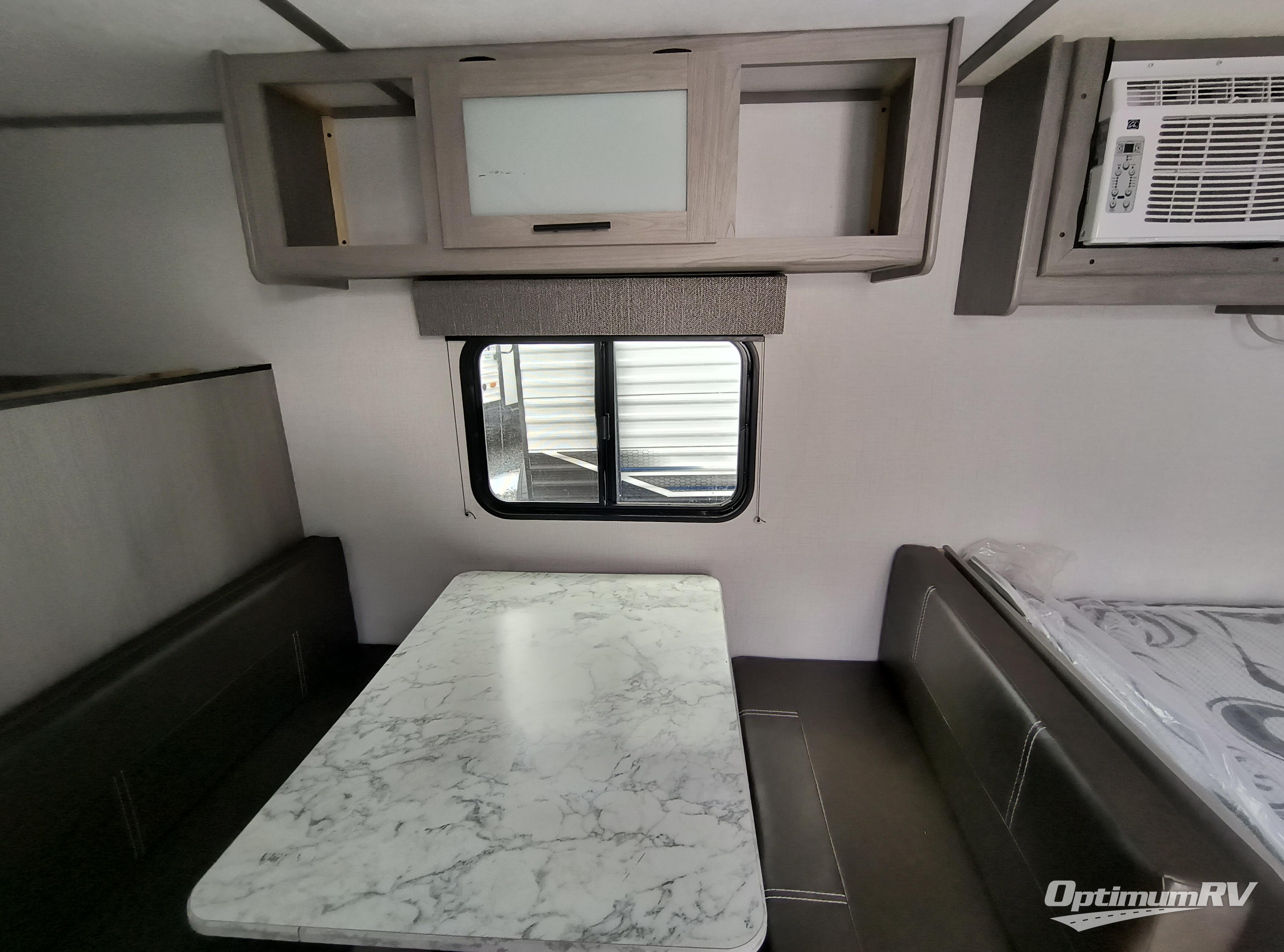 After making dinner on the two burner cooktop or inside the microwave, you can dine at the booth dinette or outside under the 8' power awning if you brought along your camping chairs. Either way you will be comfortable and the dinette may even sleep one person if needed. After playing outdoors all day, everyone can return to get cleaned up in the private toilet and shower room then fall asleep on the queen bed up front or the bunk beds in the rear. And everyone can wake up the next morning to do it over again.