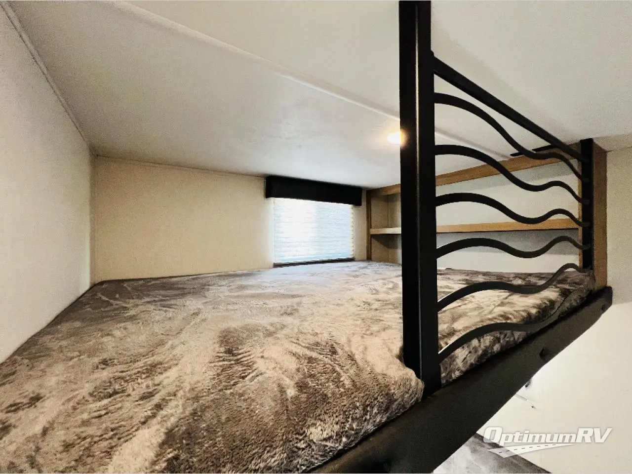 This Cherokee Arctic Wolf Suite fifth wheel is an excellent choice if you have a large family that wants to get away! Not only is there a private bedroom up front for you, but there is also a bedroom suite in the back. This suite has a 54" x 74" bed next to some wardrobe storage, a 60" x 80" loft above the bed with a ladder, a half bathroom all to itself, and the second exterior entry door. What a space! You'll also be highly impressed with the living area because it has a large slide that holds two sets of home theater seating with removable tables in front. Now you can sit down and enjoy dinner while you watch the optional residential-size LED TV that you added above the fireplace. The large pantry is another feature you'll appreciate since it can store all of the food needed to feed your group, and the outside kitchen is an added bonus the cook will love!
