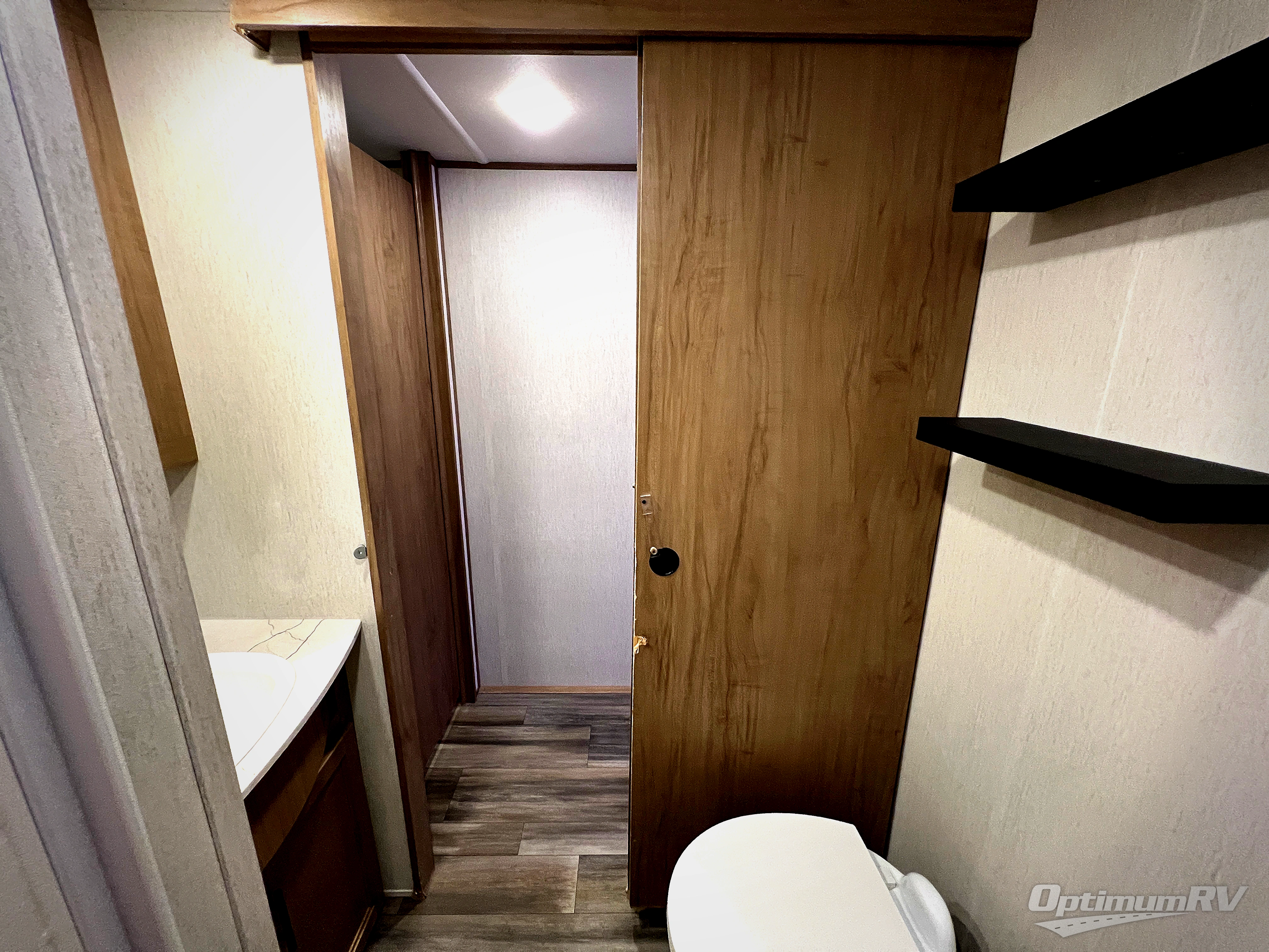 You will have amazing residential comfort in the Forest River Cherokee Arctic Wolf Suite fifth wheels! These units have a “SuperStor” dual-cavern basement storage compartment to allow you to bring more gear, and they have been constructed with a “ToughBend” rigid skirt metal design, a 1x engineered wood “SuperTruss” roof structure with 3/8" decking, and a 5/8” tongue-and-groove plywood floor decking. Each model includes Leash Latch pet safety technology, an outside shower with hot/cold water, preparations for an exterior TV, motion-sensing lighting, and a smart monitor panel with smart phone Bluetooth connectivity. The supersized central air conditioning unit (15,000 BTU) with quick cool air dump feature and second oversized 15,000 BTU ducted air conditioner will cool your unit down in a snap when you camp in the hot summer months.