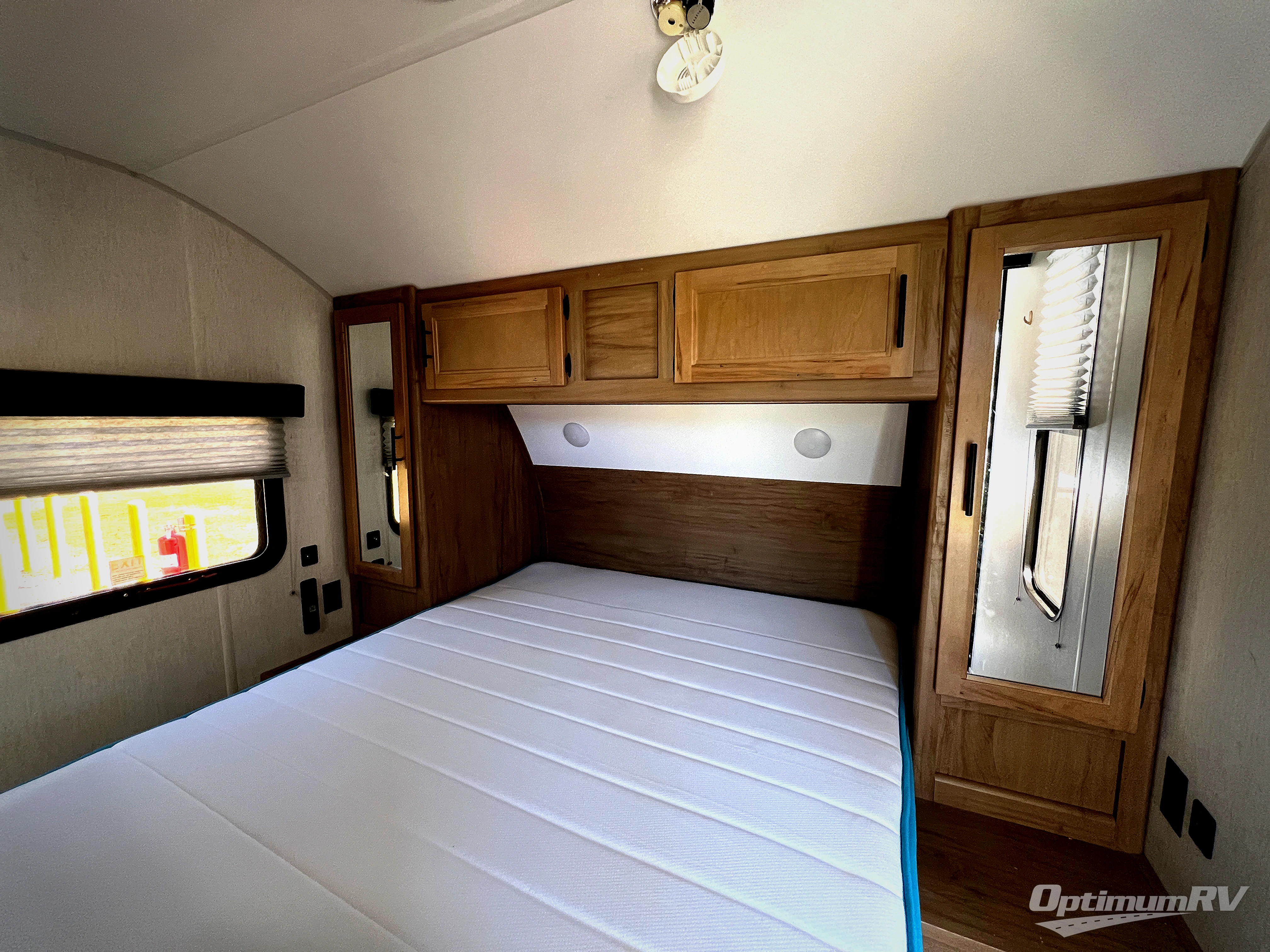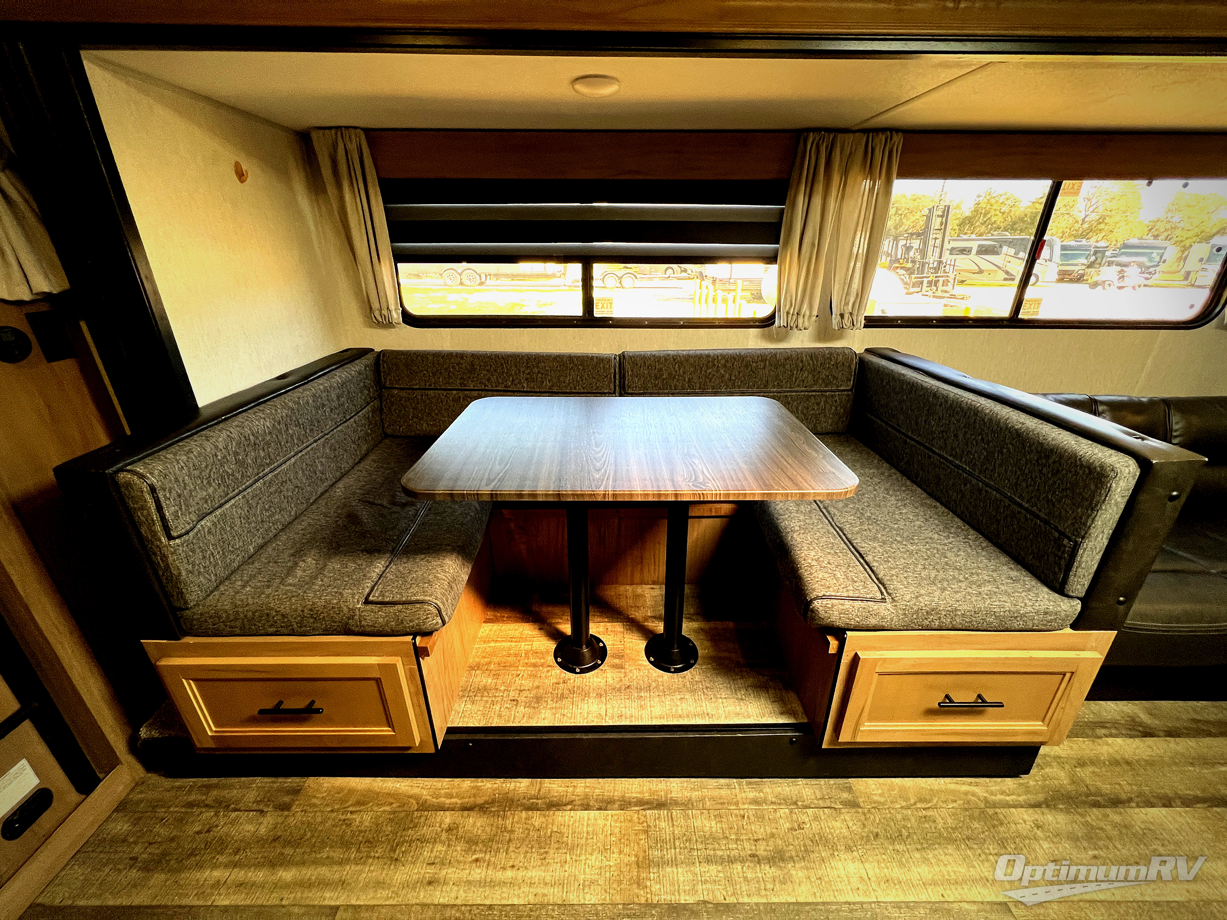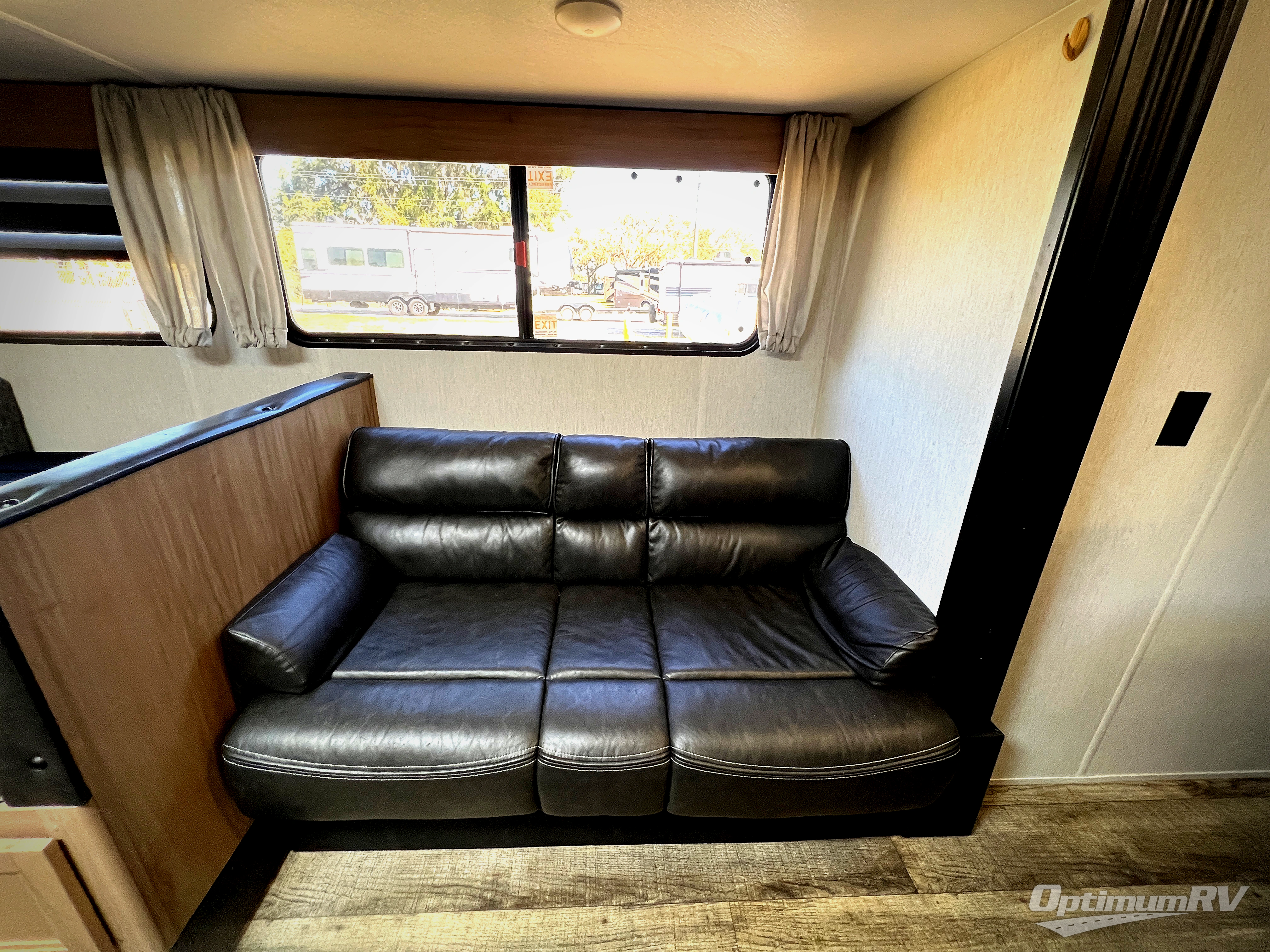 Come on inside this Cherokee Grey Wolf travel trailer and experience the convenience of a smooth flow of traffic in and out with two entry doors. The rear door leads into a full bath which is great for accessibility when outside and when you need to use the bathroom. Once inside, you will notice the large U-shaped dinette and the sofa which sit on the slide and create a spacious footprint for moving about, as well as great places to play games and socialize with your friends and family. A walk-in pantry provides plenty of storage allowing you to stock up on your favorite snacks and dry goods for your family adventure. At night, there is sleeping space for everyone between the double-size bunks and the queen-size bed, plus the furniture.