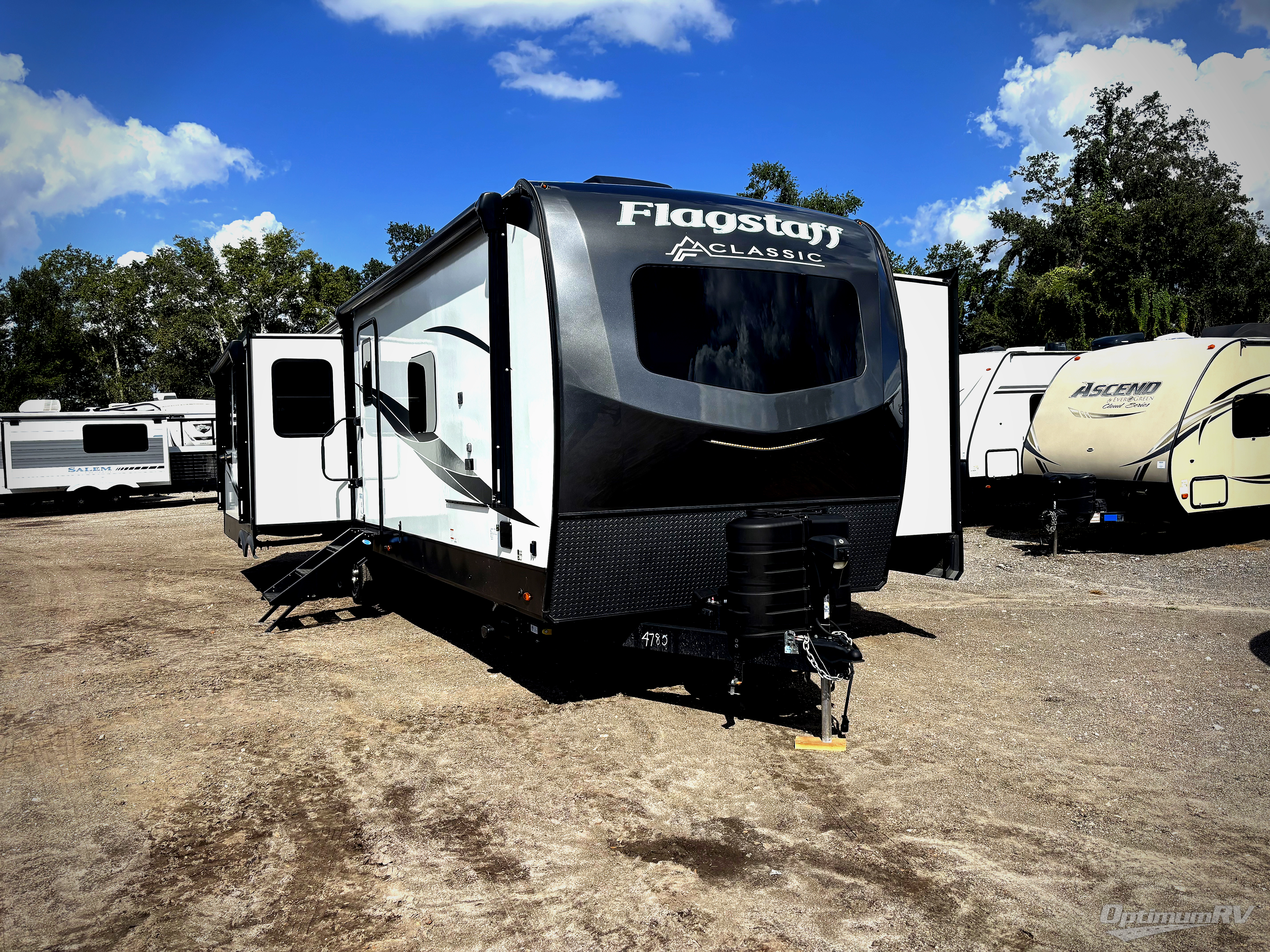 Each one of these Forest River Flagstaff Classic fifth wheels or travel trailers will be your home on wheels! Their quality craftsmanship and attention to detail shines through the surface-coated steel I-beam frame on fifth wheels, the enclosed underbelly, the radius roof with vaulted interior ceilings, and six-sided fully aluminum-framed floor, walls, and roof. Towing your unit will be easy with the torsion axle, Rubber-Ryde suspension, power tongue jack, and nitrogen-filled Goodyear Endurance tires. You will even reduce your use of water with the Showermiser water saving system in the bathroom. A few other convenient features you will enjoy include a control panel with WeRV app control, an upgraded backlit headboard, and an outside shower with hot and cold water. Come choose your favorite one today!