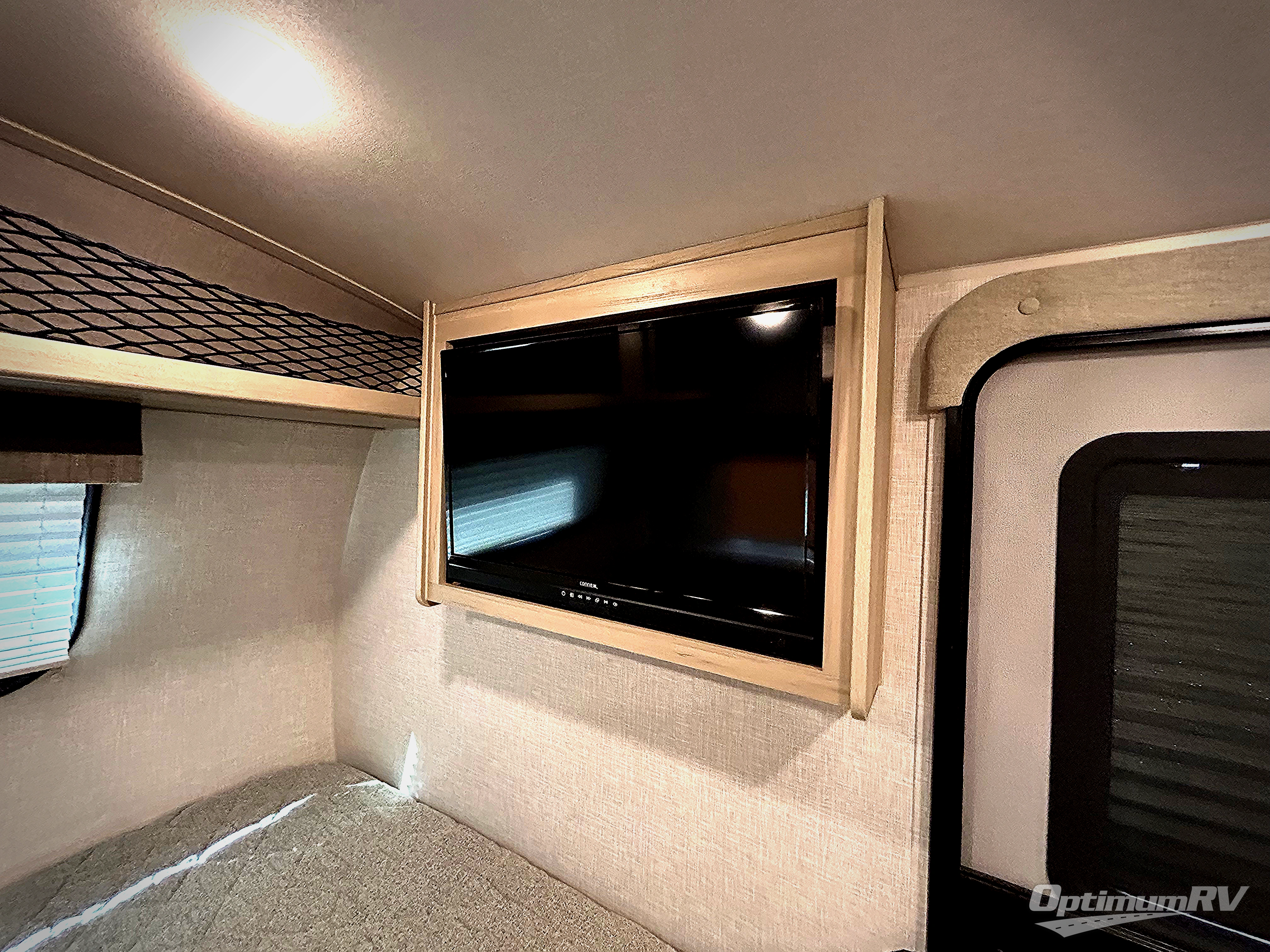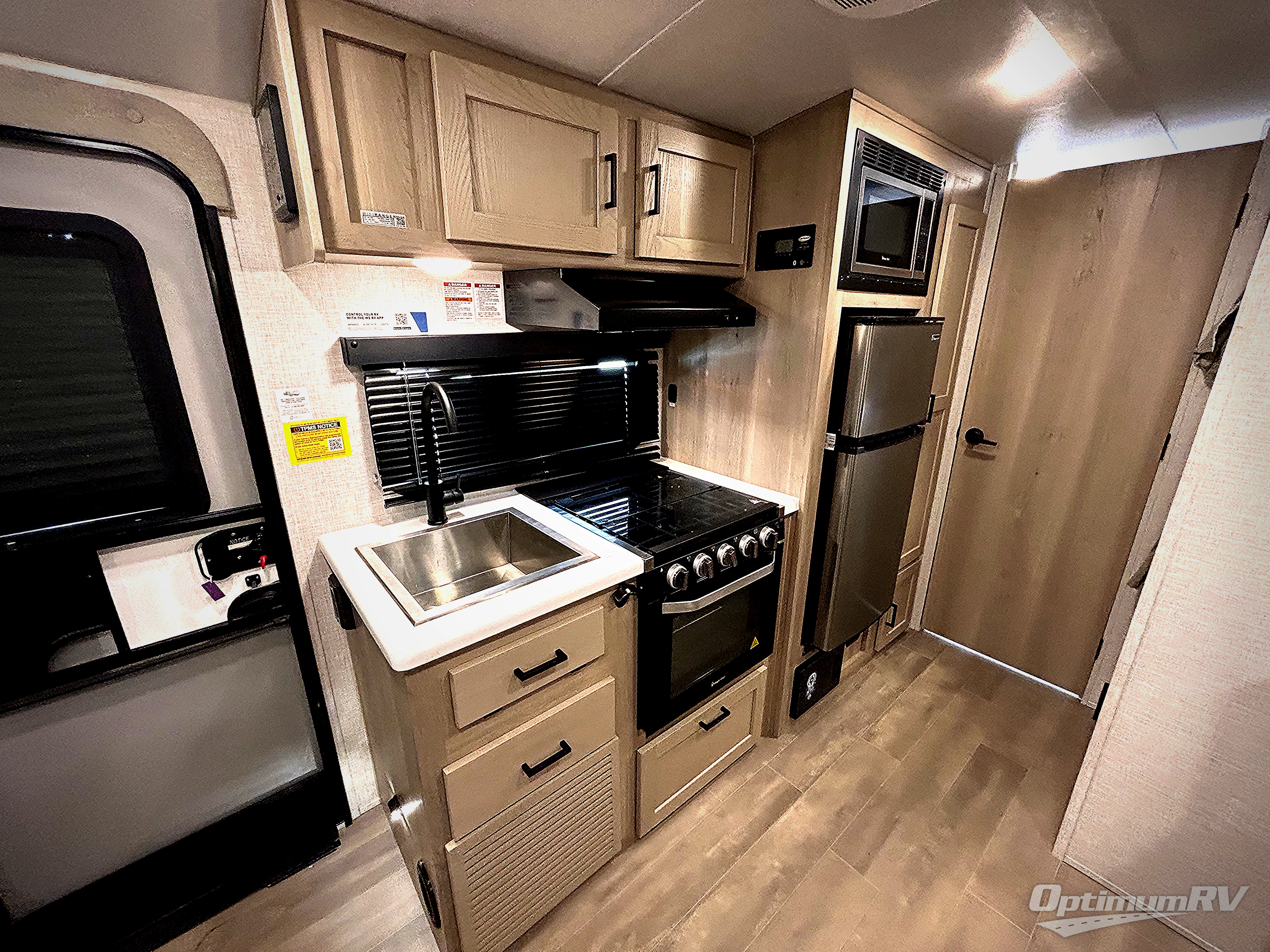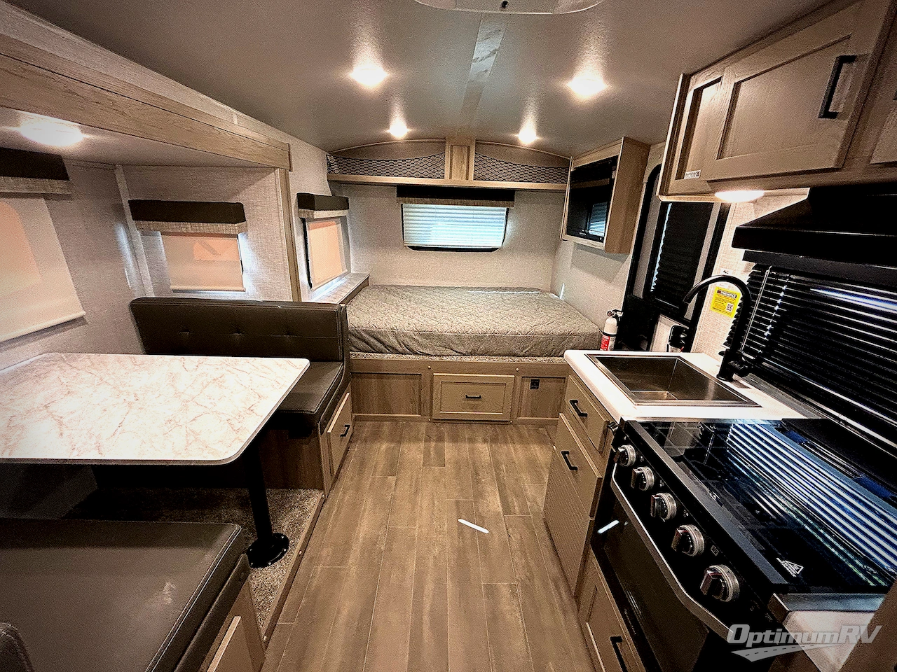 The largest bunk trailer in the E-Pro lineup will work perfectly for a family or friend group that enjoys their own sleeping space, plus more floor space with the dinette slide out that can sleep one to two. The bottom bunk even flips up so you can stow away your bikes, totes and such through the bike door for secure travels. There is exterior storage for more outdoor gear, and interior storage found throughout. The cook will love having a pantry and overhead cabinets for snacks, canned goods, dishes and more. After making a warm meal, the 12V refrigerator can hold the leftovers. The private toilet and shower/tub room gives you privacy and a place to get cleaned up after a fun day outdoors.