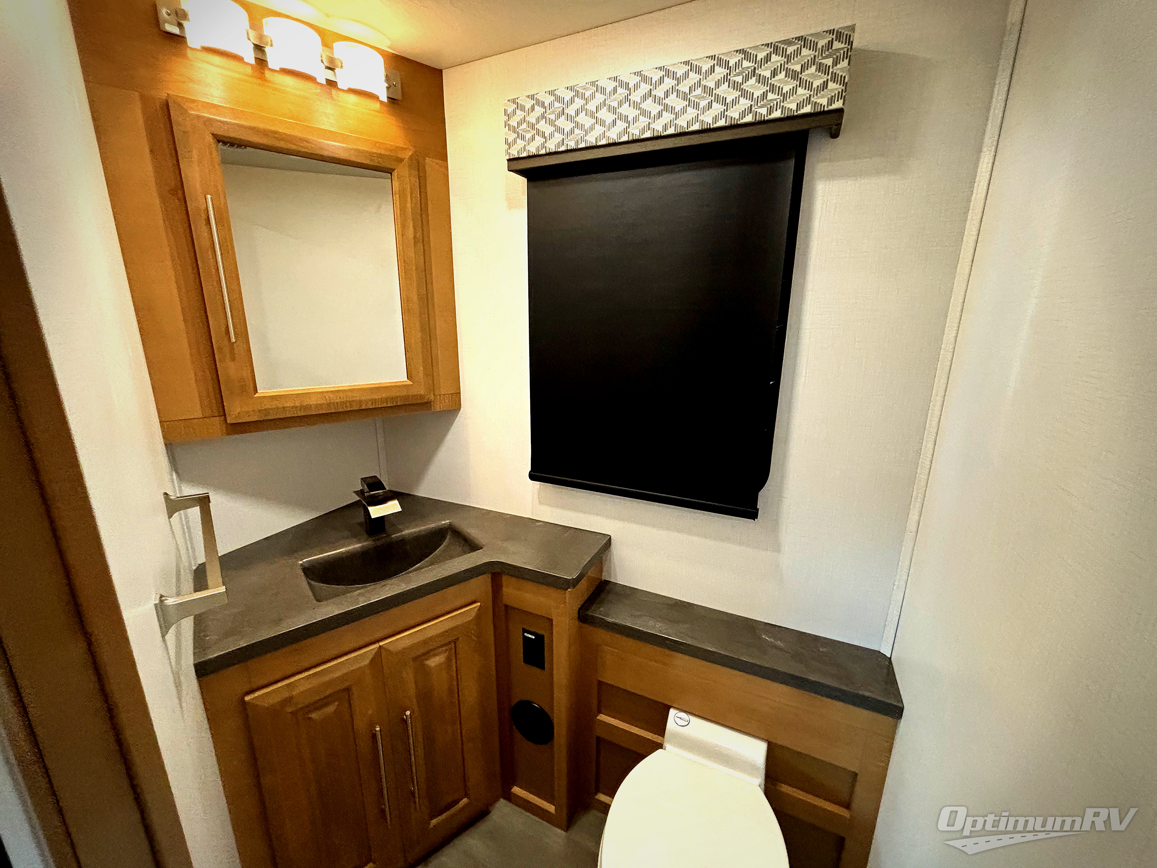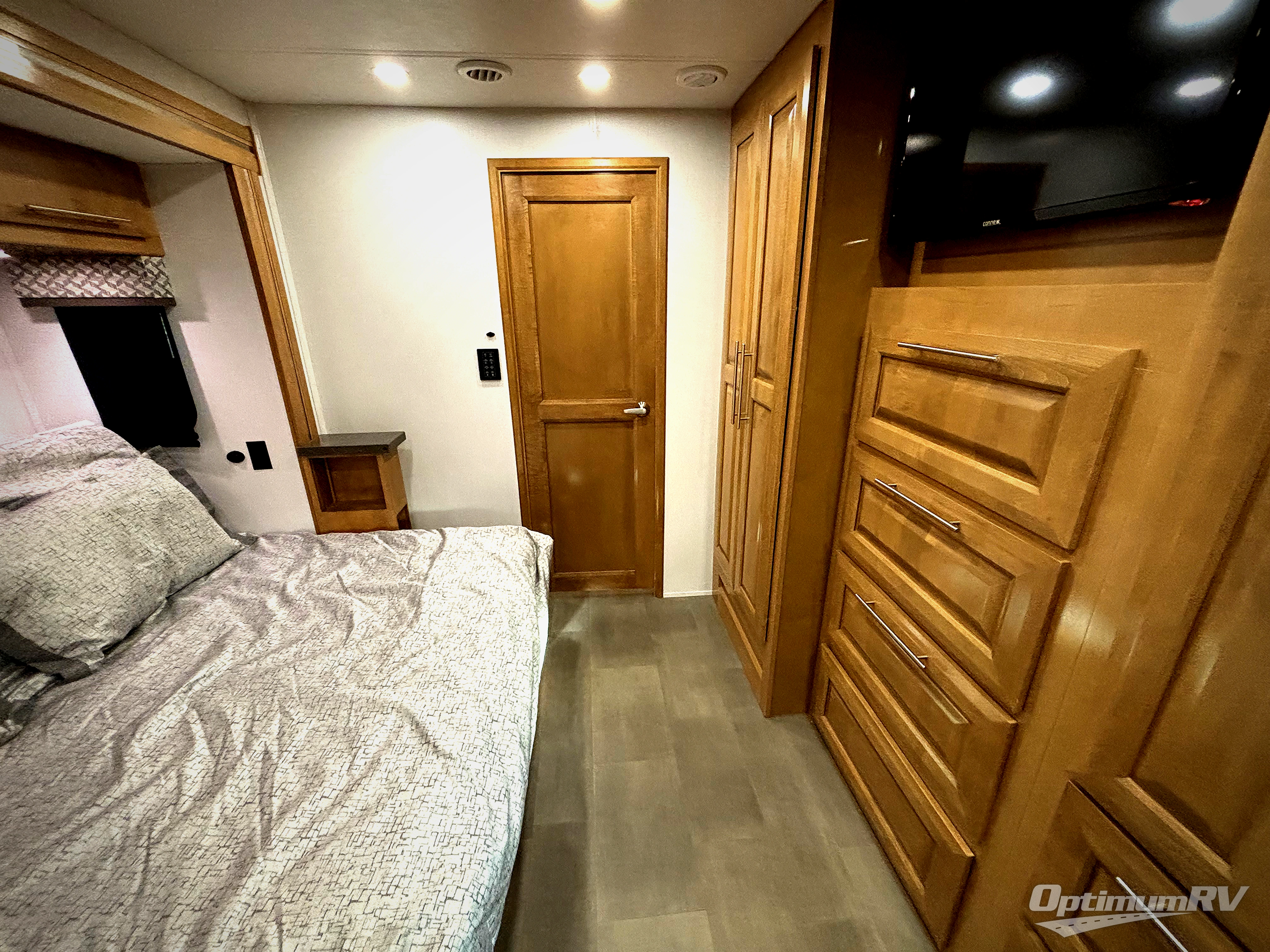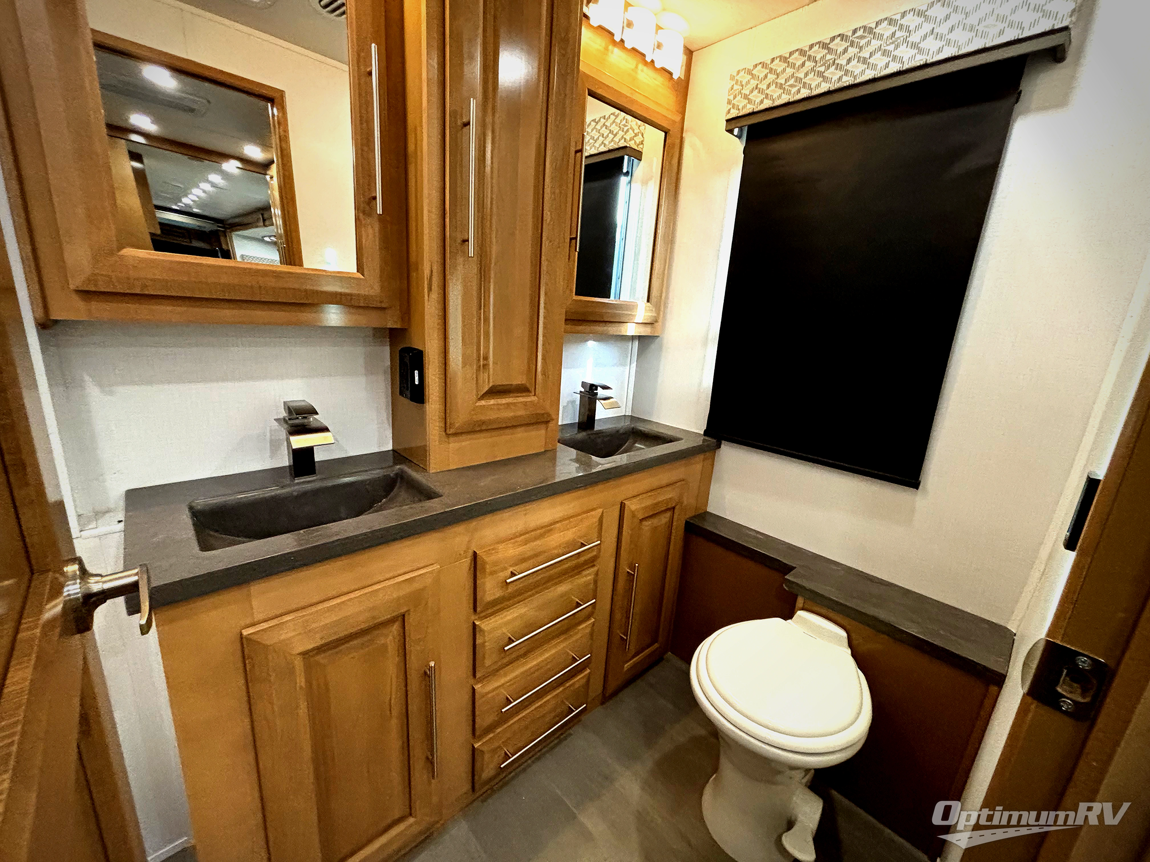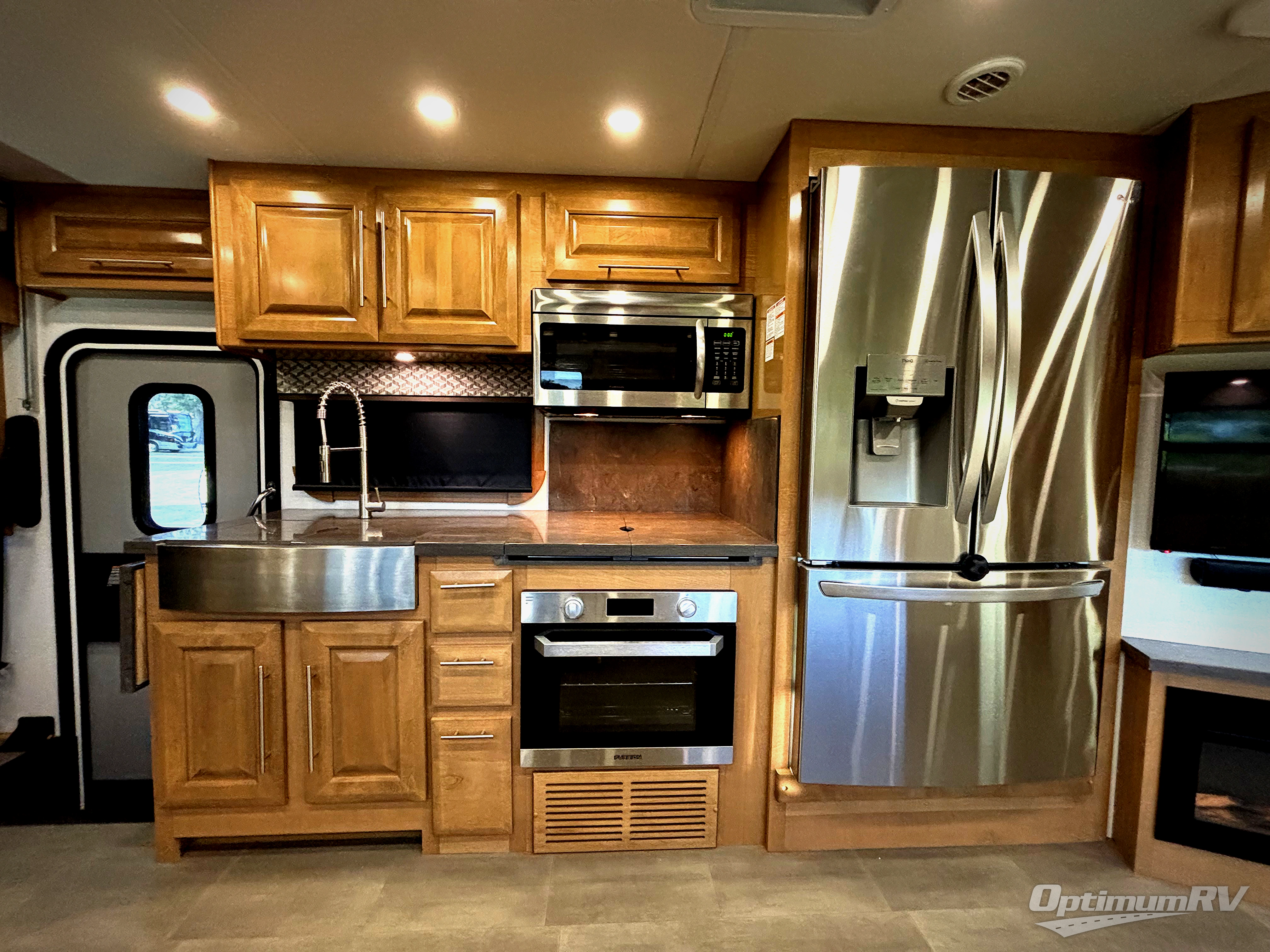 Comfort and convenience is found all throughout this motorhome! Starting with the full rear master bath that has a 42" x 30" shower with a seat and a dual sink vanity, plus it leads into the private bedroom. Inside the bedroom is a 72" x 80" king bed slide with overhead cabinets across from a dresser with overhead cabinets and a 32" LED TV, a wardrobe, and another wardrobe that is prepped to add an optional stackable washer and dryer. The half bathroom is conveniently near the fully equipped kitchen so you can get back to creating your best home cooked meals fast. Relax in true comfort each night by either playing games at the booth dinette or on the theater seating that comes with power recline, heat, and massage!