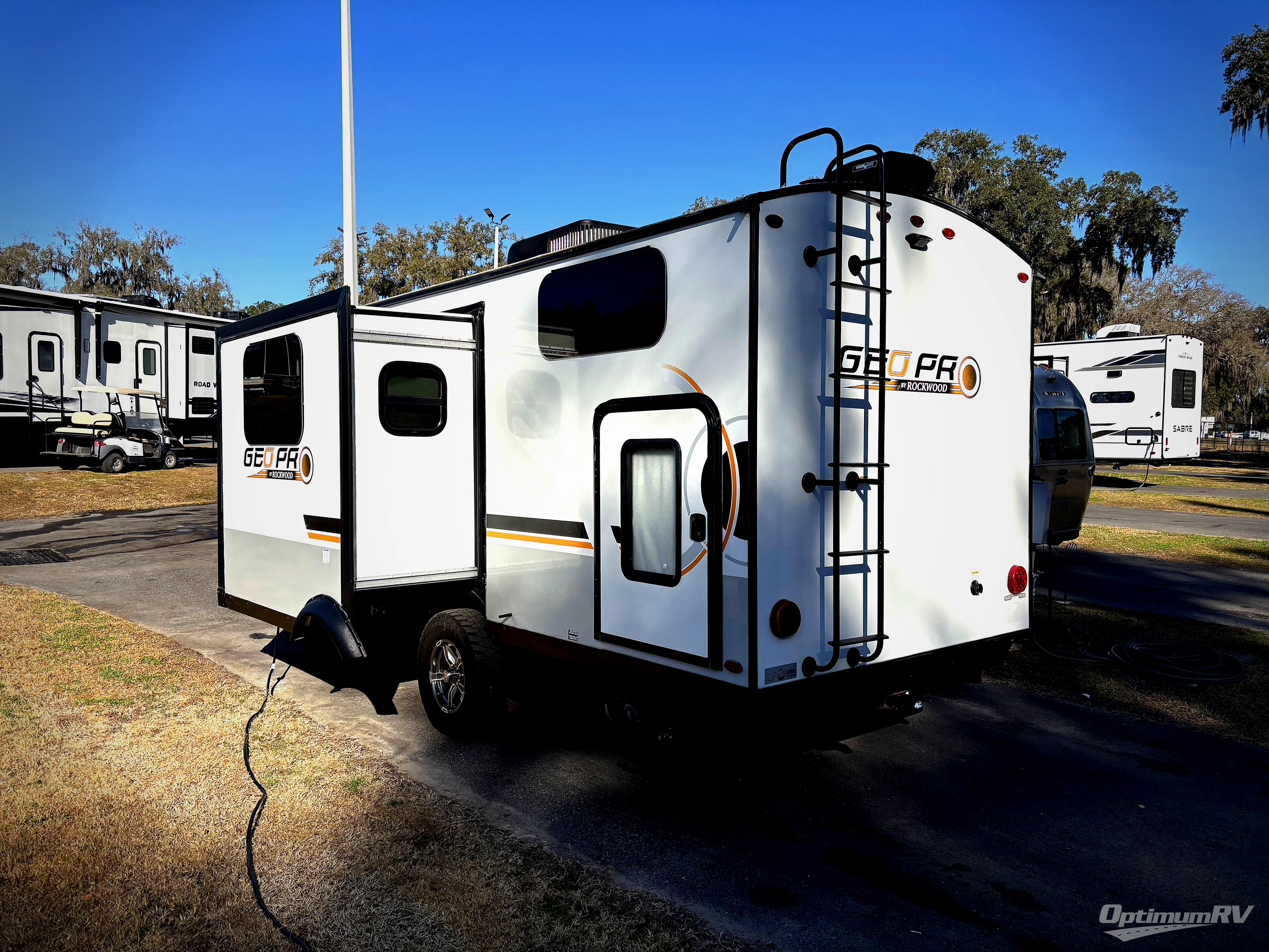 The Rockwood GEO Pro travel trailers and toy hauler by Forest River are ready for all your adventures. The interior and exterior Azdel construction, along with the vacuum laminated roof and walls provide a durable trailer, and the Dexter torsion axles with aluminum wheels make towing easier than ever. There are many convenient amenities, like the 13,500 BTU A/C, the Bluetooth system control panel, and the all-in-one Teton HD TV/WiFi/FM antenna with LTE prep. Each model includes frameless windows, fabric valances and roller shades, and a modern interior that will make you feel right at home. Everything you're looking for in your next RV is in a Rockwood GEO pro by Forest River!