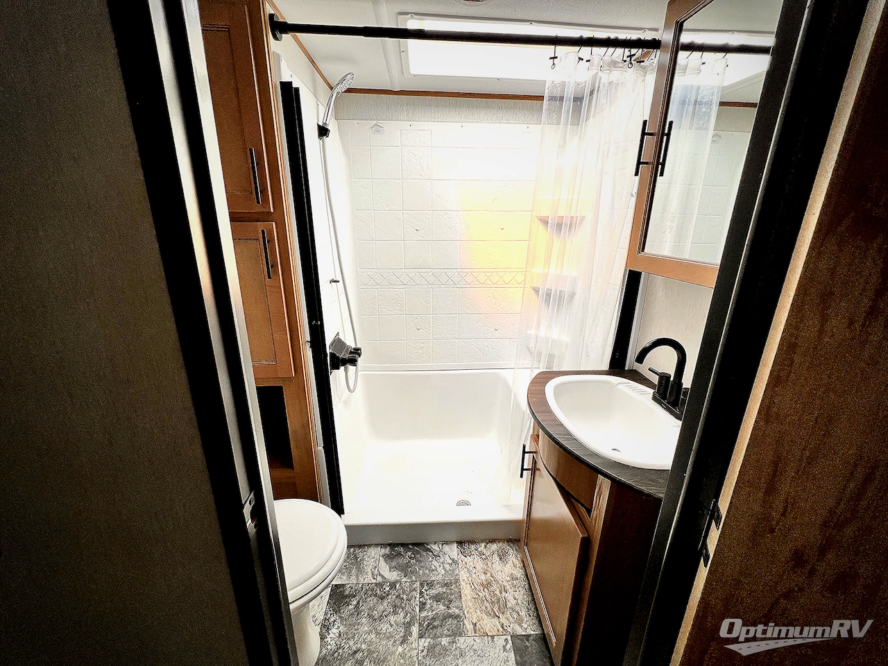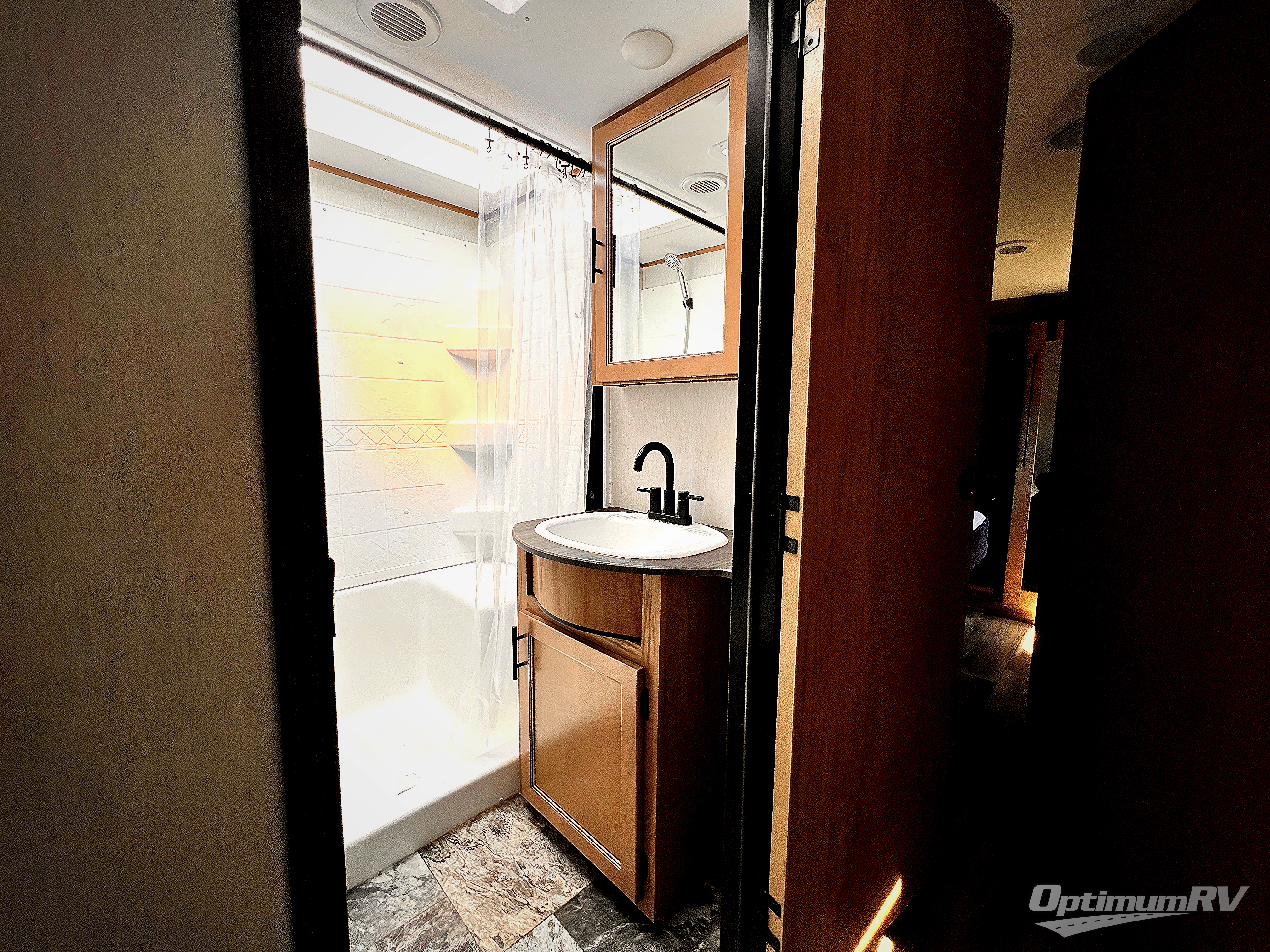 You will experience luxurious camping trips at an affordable price with any one of these Forest River Sabre fifth wheels! These models are durable and ready to travel anytime of the year thanks to features like the high-gloss gel-coat front cap with LED lighting, the PVC roof membrane, and the forced air underbelly with enclosed gate valves. The electric auto-leveling system makes setting up easy and safe, and the adjustable power awning with LED lighting will create an inviting outdoor living space. Each model includes a universal docking station which includes a black tank flush and an outside shower, and the backlit "Secure Step" landing for you to enter and exit the unit safely. Inside, you will love the design of the ambient accent lighting above the crown molding in the living area, the real wood lumbercore cabinetry, and the vintage gaslight decorative lighting!