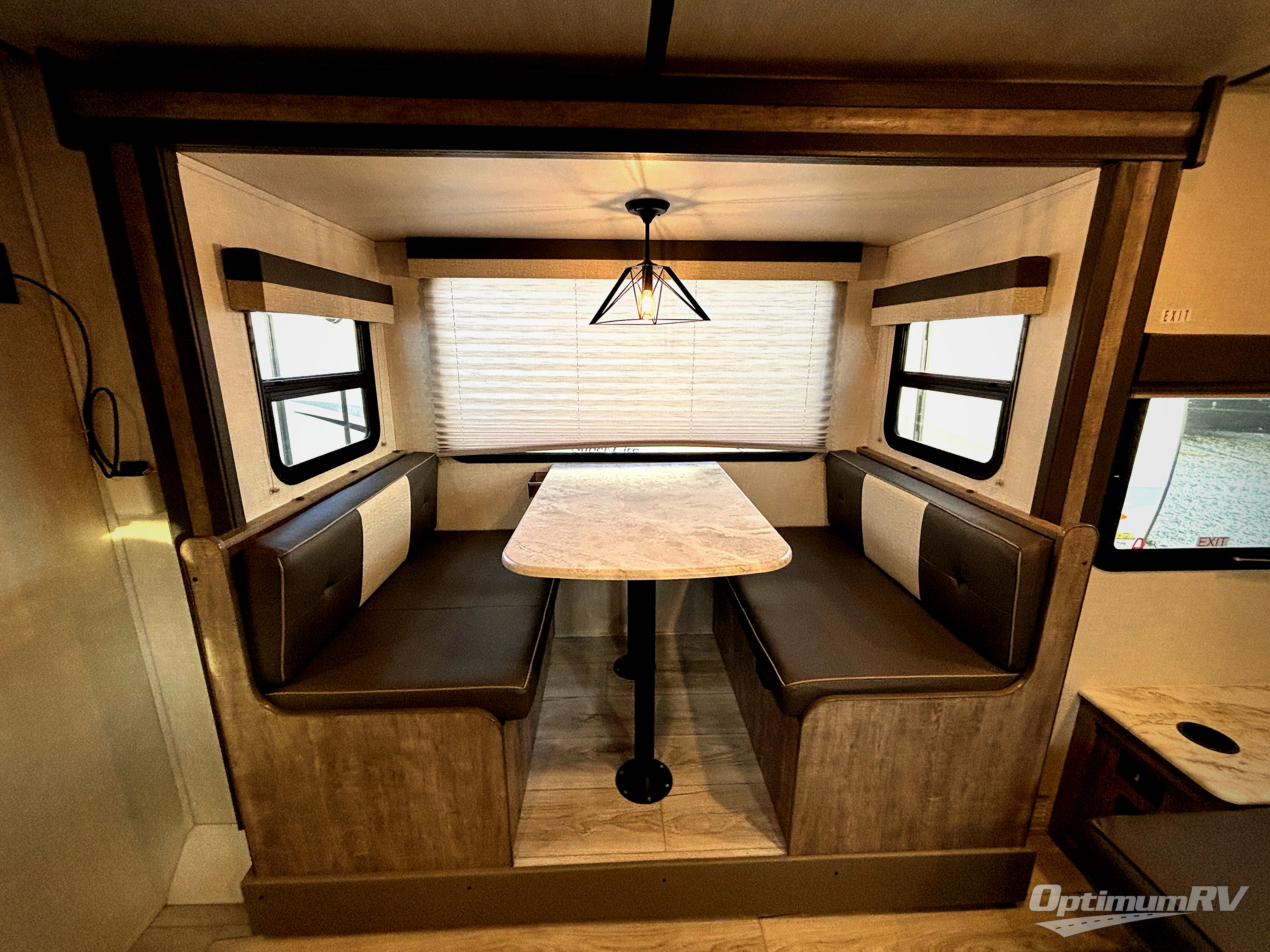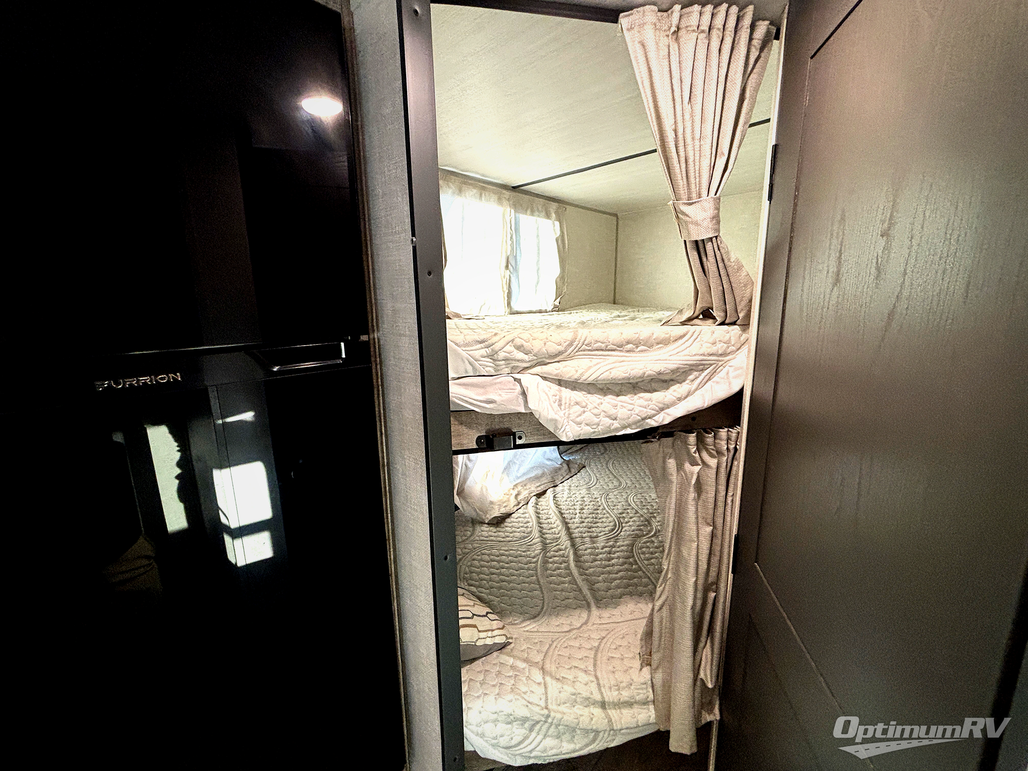 Experiencing the camping lifestyle just got easier with this travel trailer in tow! The outdoor kitchen includes a gas griddle, a sink and a refrigerator with a side shelf, plus there is a two burner cooktop inside if the weather isn't cooperating. There is a dinette slide where you can play a game of cards at, and the HD LED TV will allow you to keep up on your favorite shows. The kids or your guests can make themselves comfortable on the oversized bunks that include Teddy Bear bunk bedding for added comfort. This model also includes a front queen-size Murphy bed with two end tables to set your books or phone at, plus there is overhead storage for your valuables.