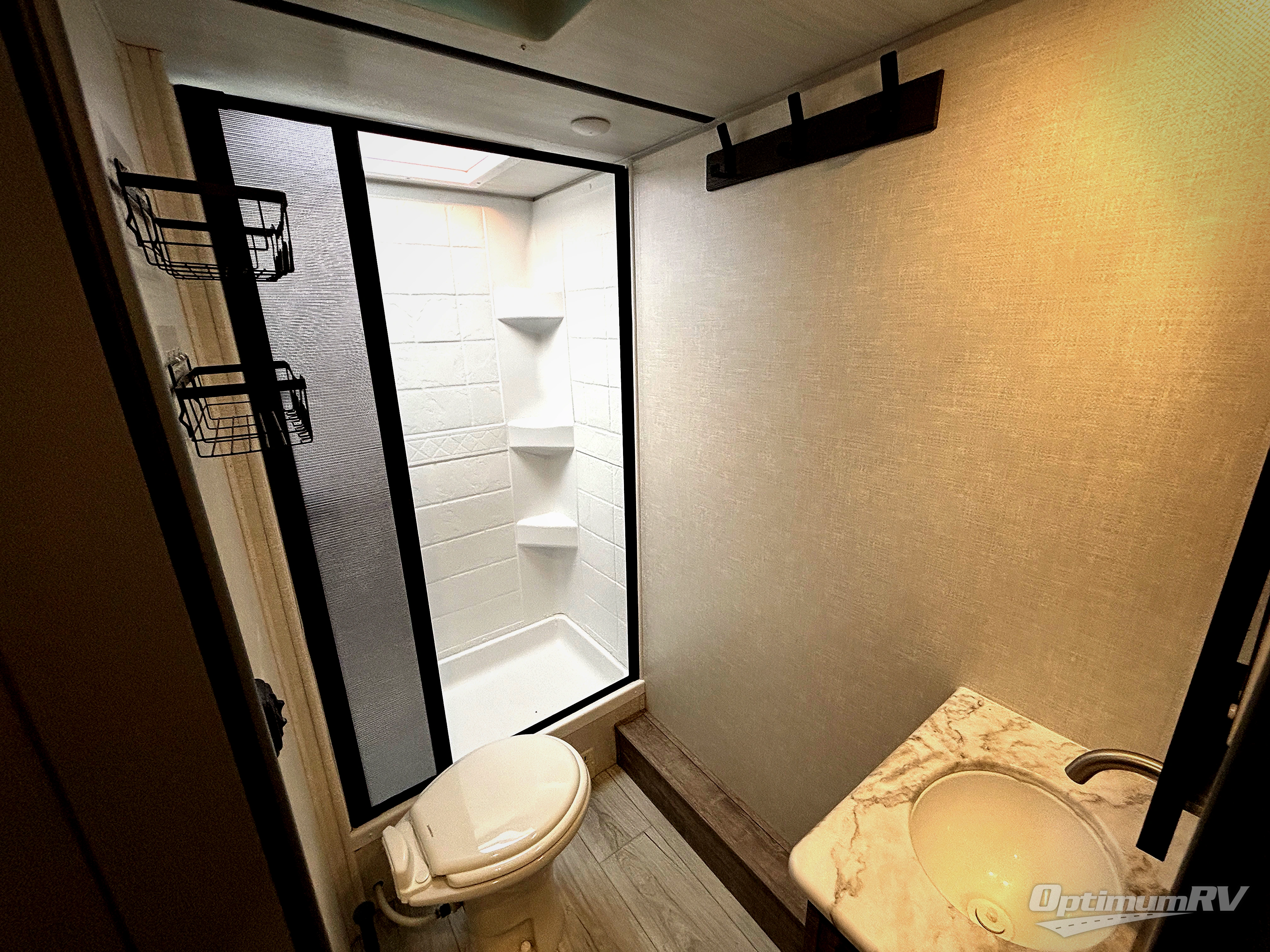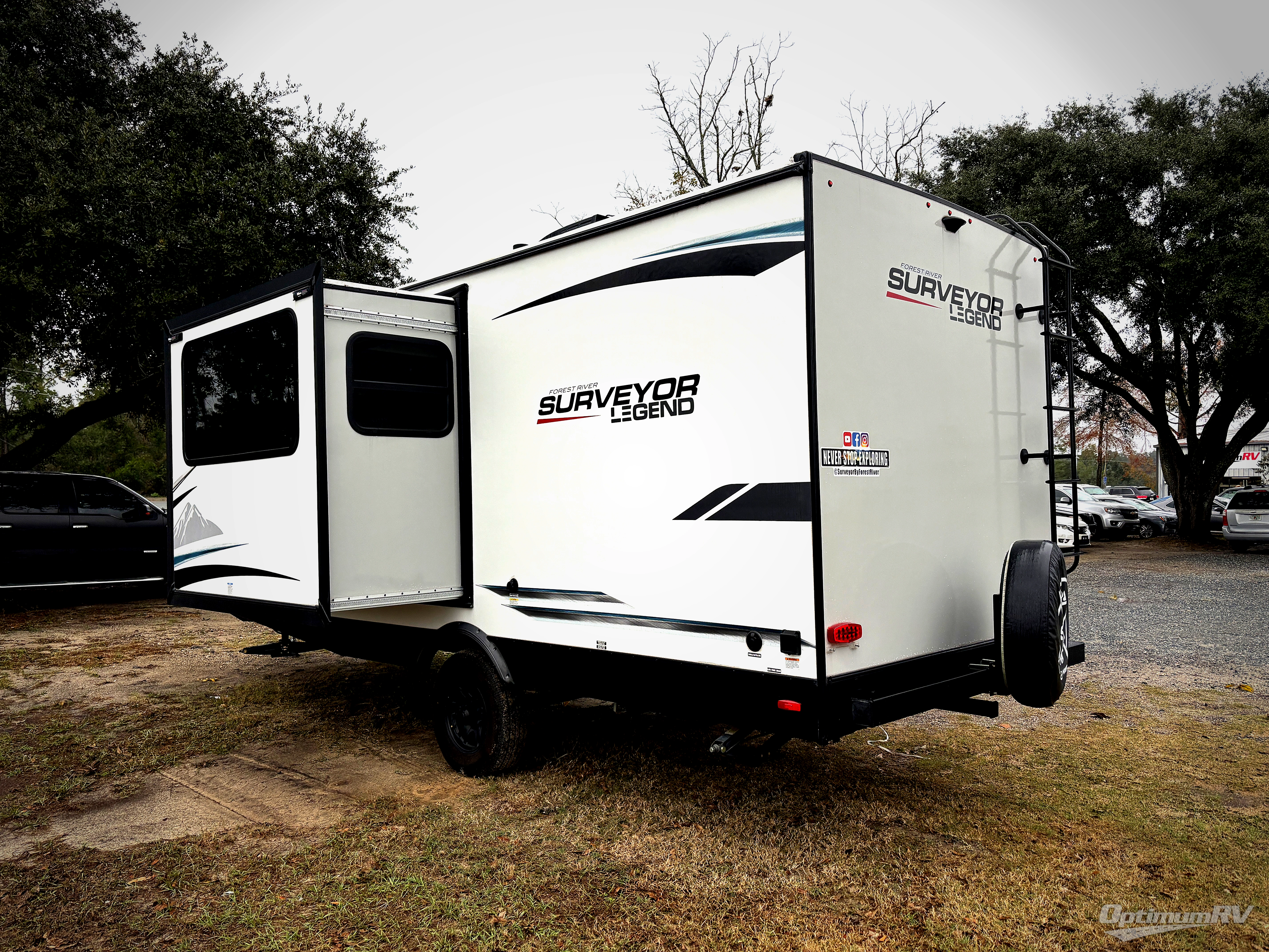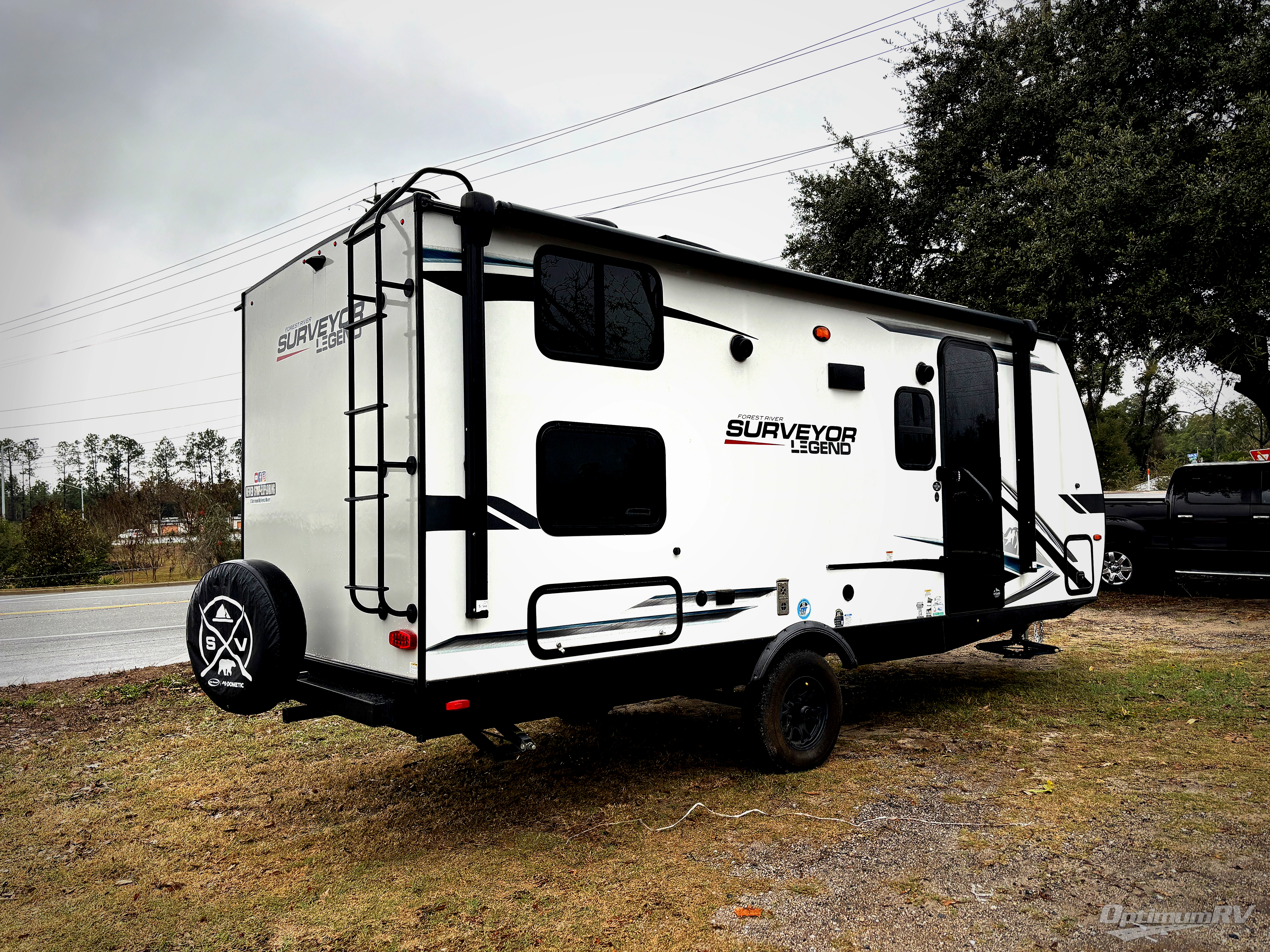 With any Surveyor Legend travel trailer by Forest River you will enjoy quality craftsmanship, convenient amenities, and at-home comforts. The Azdel composite panels provide a longer-lasting trailer, and the power tongue jack will get you back on the road in no-time. Each model includes the Surveyor Legend Package that comes standard with pleated night shades, an automotive style tinted front windshield, a multi-zone Bluetooth stereo, and more. You'll enjoy the one-touch electric awning with LED lights outdoors, plus rooftop solar prep and rear camera prep to make parking easier than ever. The inside will have you feeling right at home with Surf(x) seamless countertops, Congoleum designer carefree linoleum, residential faucets in the bath and kitchen, plus many more essentials you won't want to camp without.