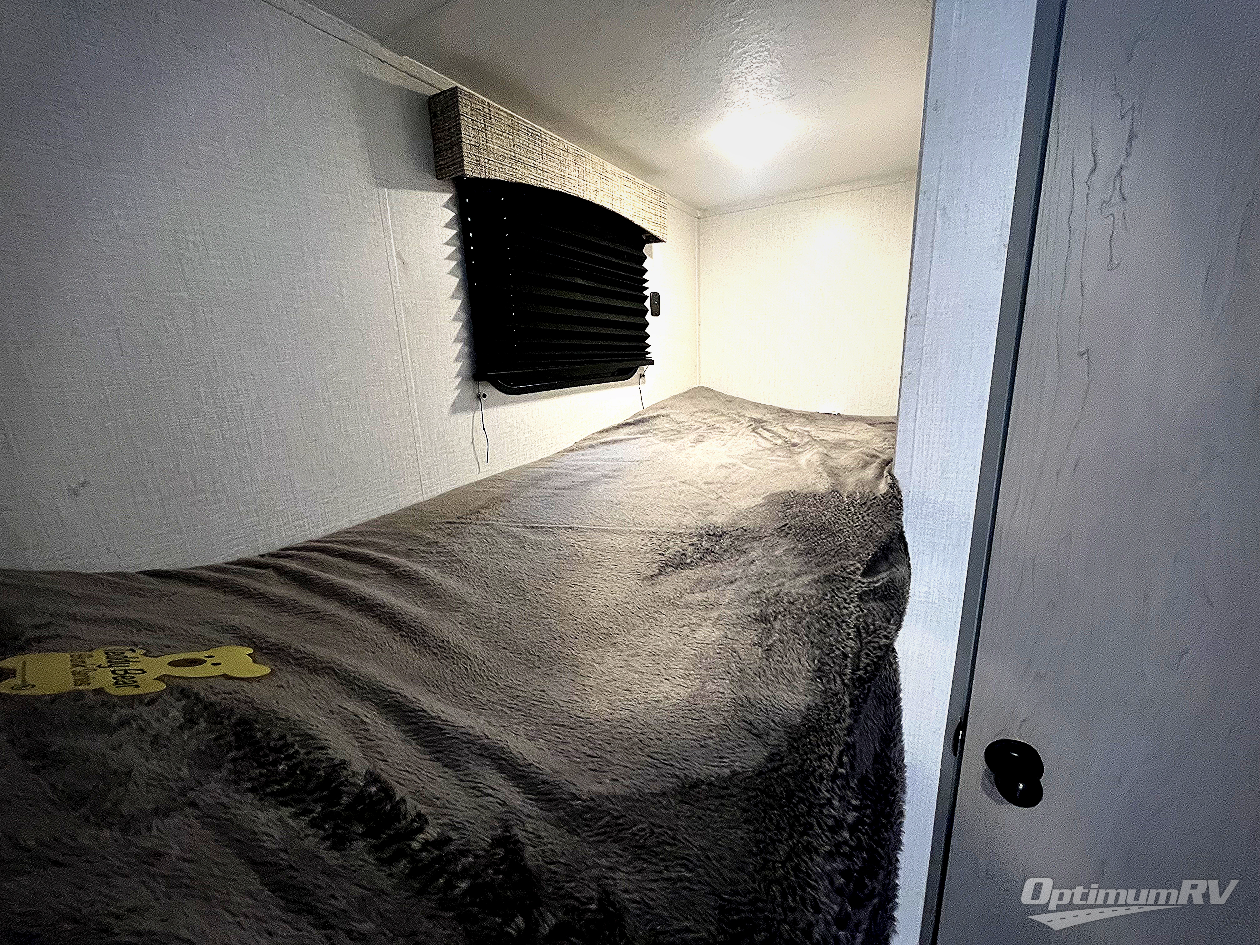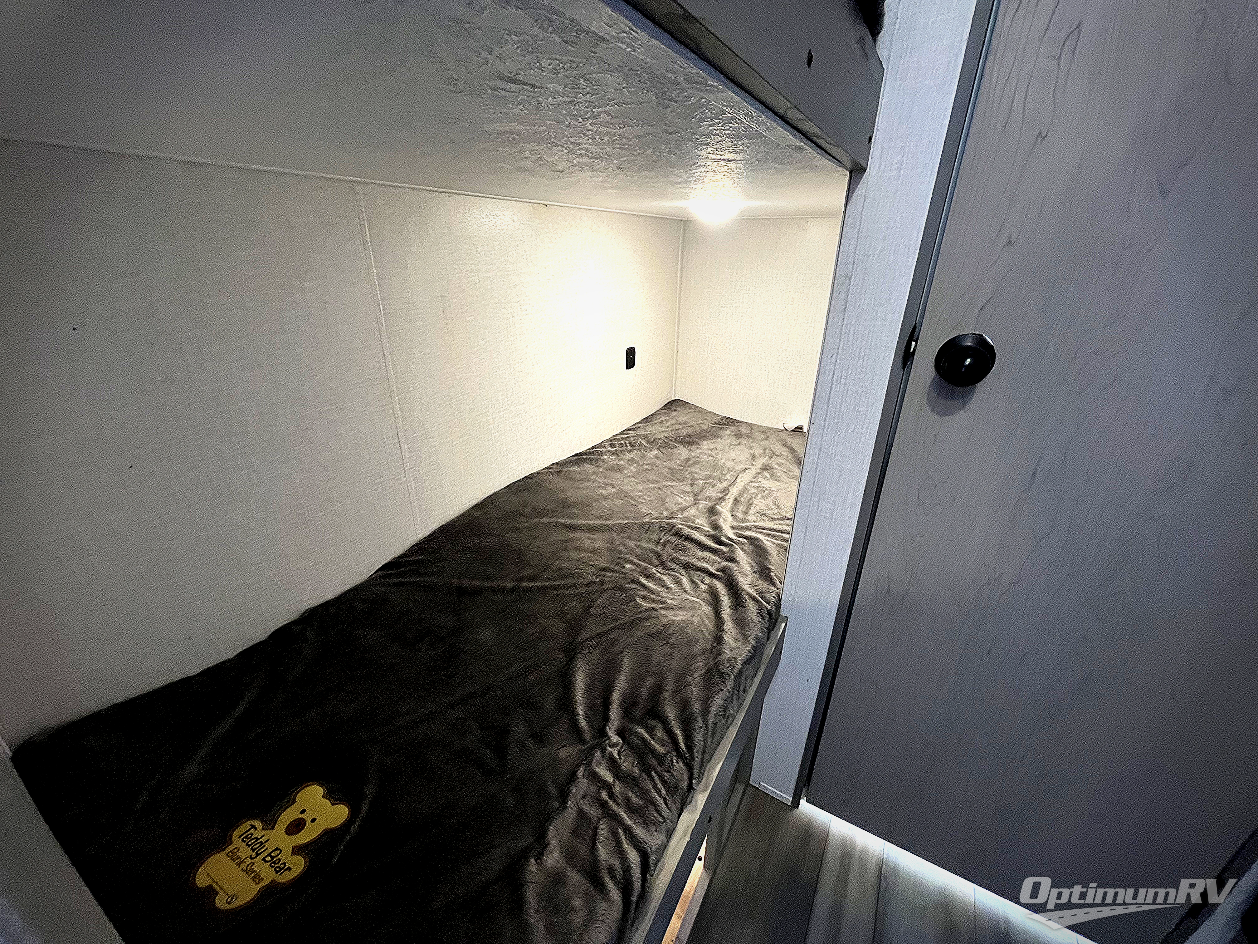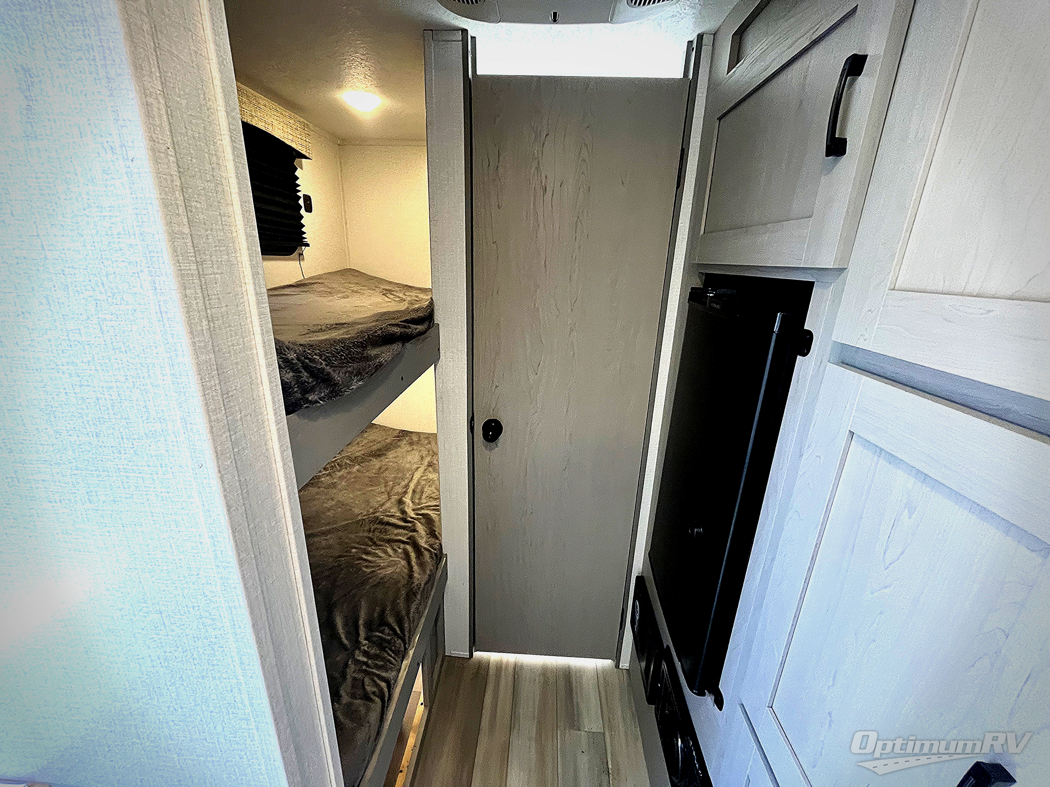 The perfect bunk model for your family or group of four. Twin bunks in the rear corner provide sleeping for the kids, and two can sleep on the front both dinette once converted at night. There is a two burner cooktop and single sink for inside meals, with plenty of storage cabinets both above the kitchen area and along the roadside wall. This is where you will also find a refrigerator for your perishables. The rear corner bath includes a private shower and toilet. You will love the skylight over the shower to provide more headroom and natural lighting inside. There is also an entertainment center just inside the entry/exit door with TV prep area above.