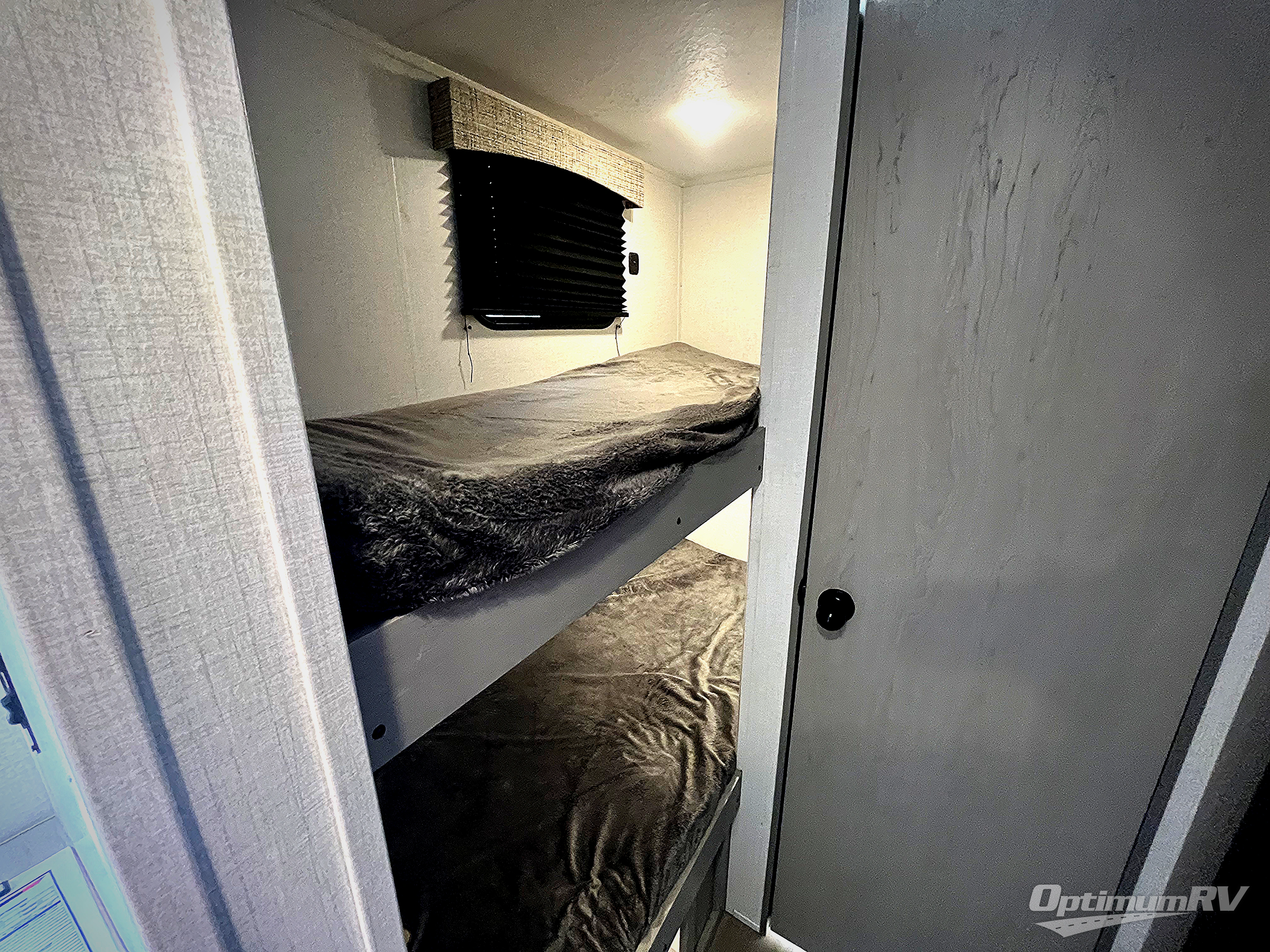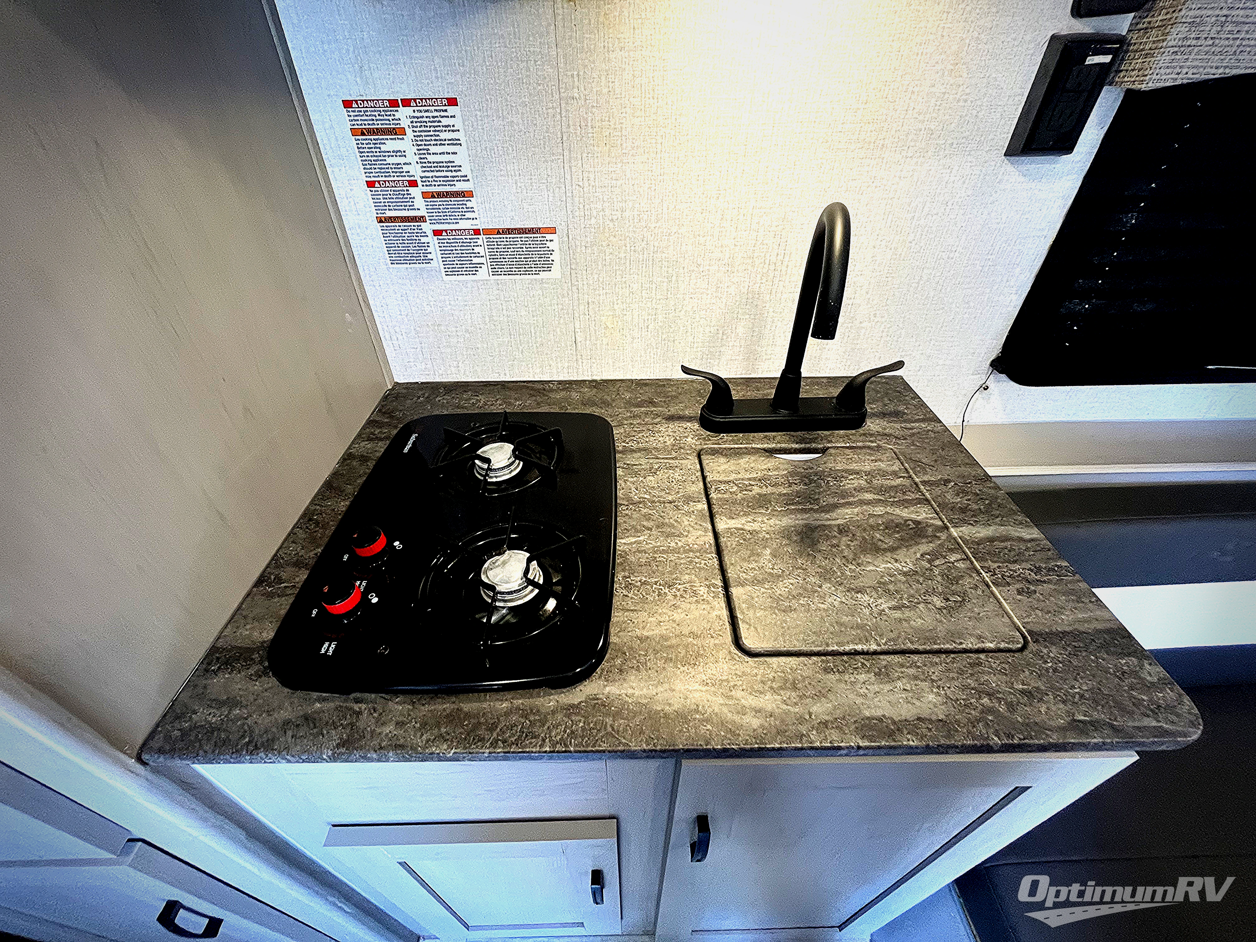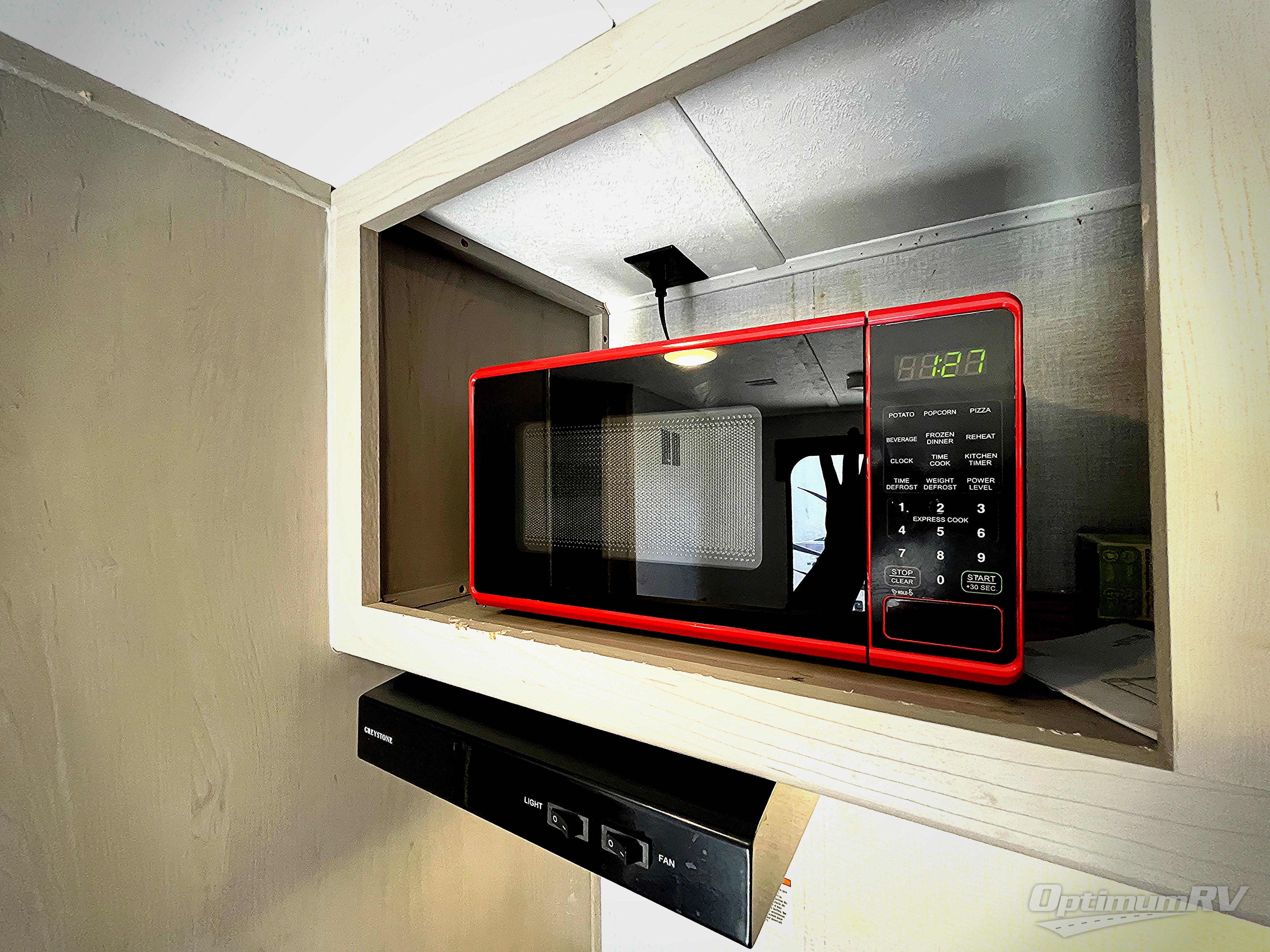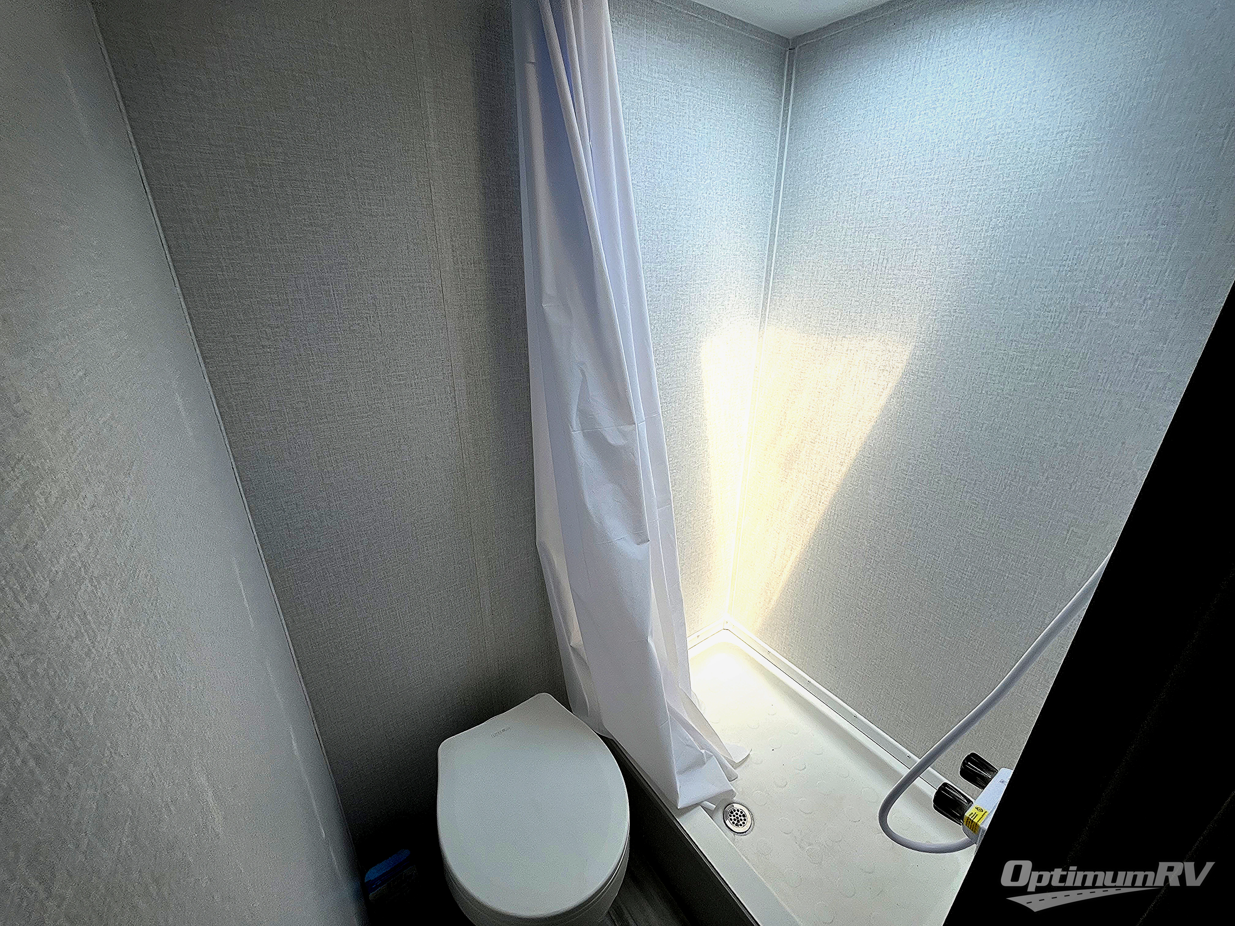 The perfect bunk model for your family or group of four. Twin bunks in the rear corner provide sleeping for the kids, and two can sleep on the front both dinette once converted at night. There is a two burner cooktop and single sink for inside meals, with plenty of storage cabinets both above the kitchen area and along the roadside wall. This is where you will also find a refrigerator for your perishables. The rear corner bath includes a private shower and toilet. You will love the skylight over the shower to provide more headroom and natural lighting inside. There is also an entertainment center just inside the entry/exit door with TV prep area above.
