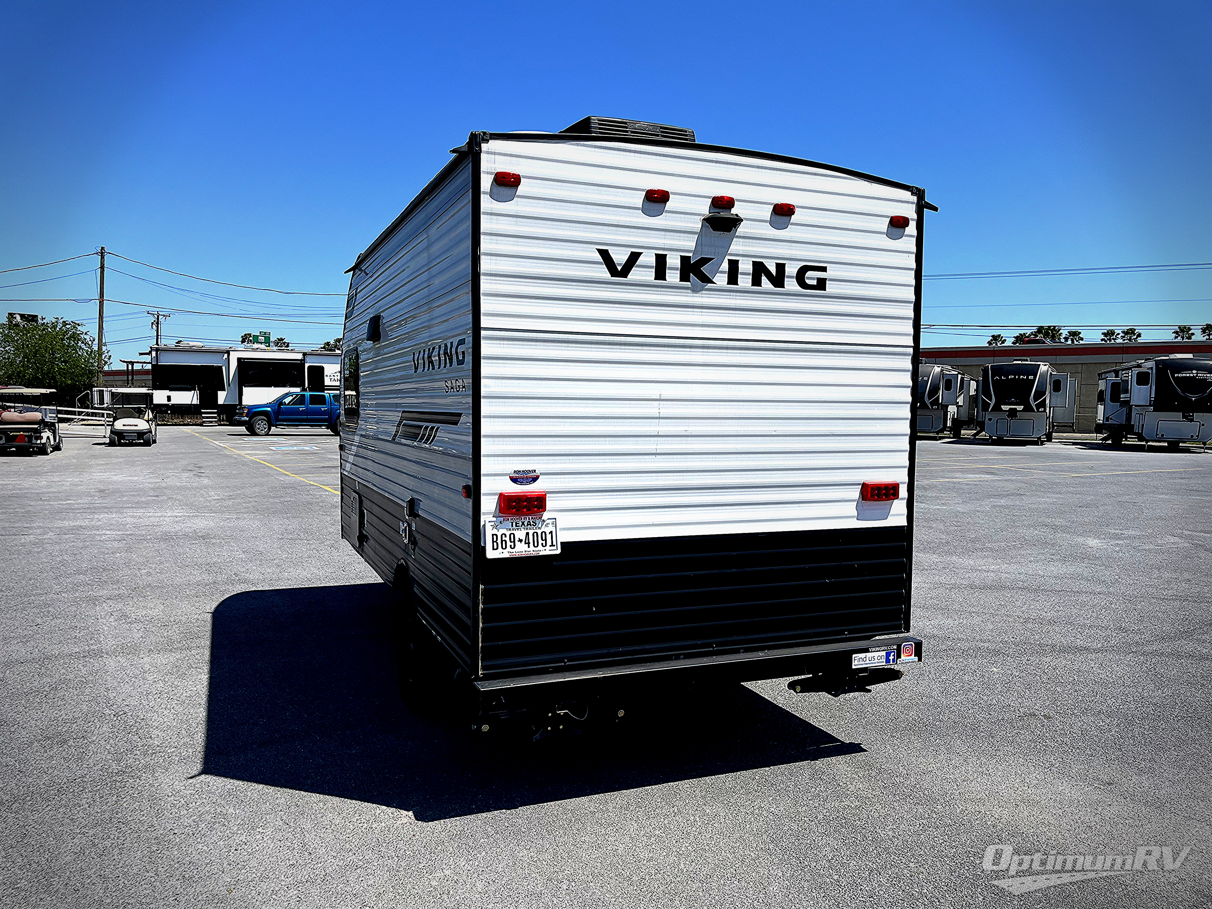 The budget-friendly Viking Saga travel trailers are for the newbie or seasoned RV user. Each model is constructed with a BAL NXG frame with Huck bolt assembly and front diamond plating so that your trailer will last. Towing and setup is made hassle-free with electric brakes, Dexter E-Z lube axles, and two rear stabilizing jacks. The Saga travel trailers include seamless countertops, a two burner cooktop, sink cover, and a bath skylight for adding natural lighting. You will also find a jumbo pass-through storage, USB charging ports to keep your electronics charged, plus both back up camera and solar prep.
