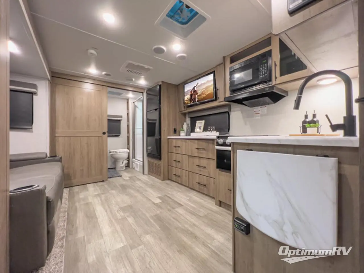 Let your imagination run wild with the possibilities that the Grand Design Imagine XLS travel trailer can provide! The Imagine XLS has been built with oversized tank capacities, an extra-large 2" fresh water drain valve, a ducted A/C system, a power tongue jack, and a heated and enclosed underbelly with suspended tanks. There is a designated heat duct to the subfloor and a residential ductless heating system throughout. For outdoor adventures, the electric awning with LED lights will enable you to stay protected, and the exterior speakers make any time outside a party. You will also love the XLS Solar Package that comes with a 165W roof mounted solar panel, a 25 Amp charge controller, a 12V 10 cu. ft. refrigerator, and roof mounted quick connect plugs!