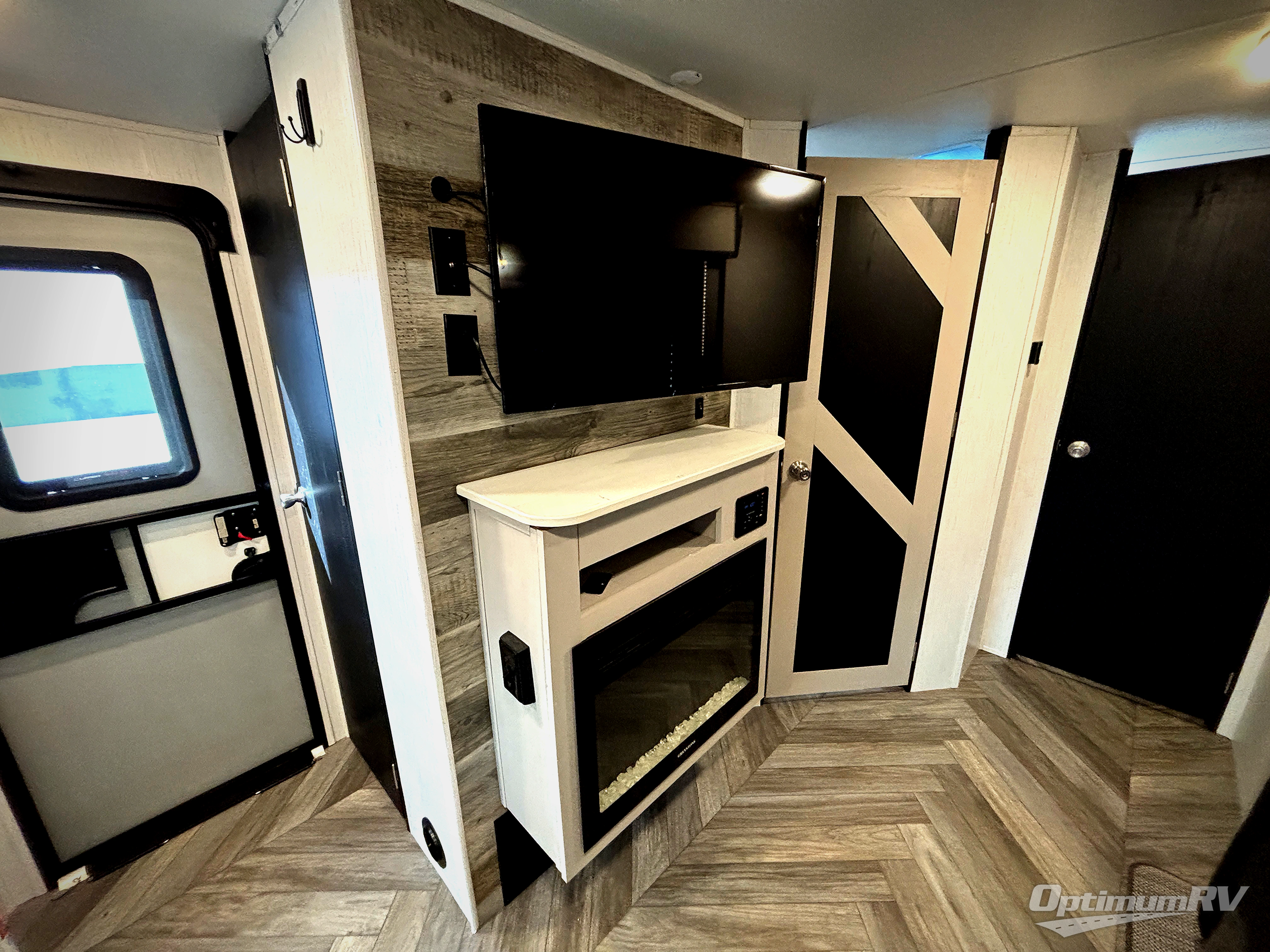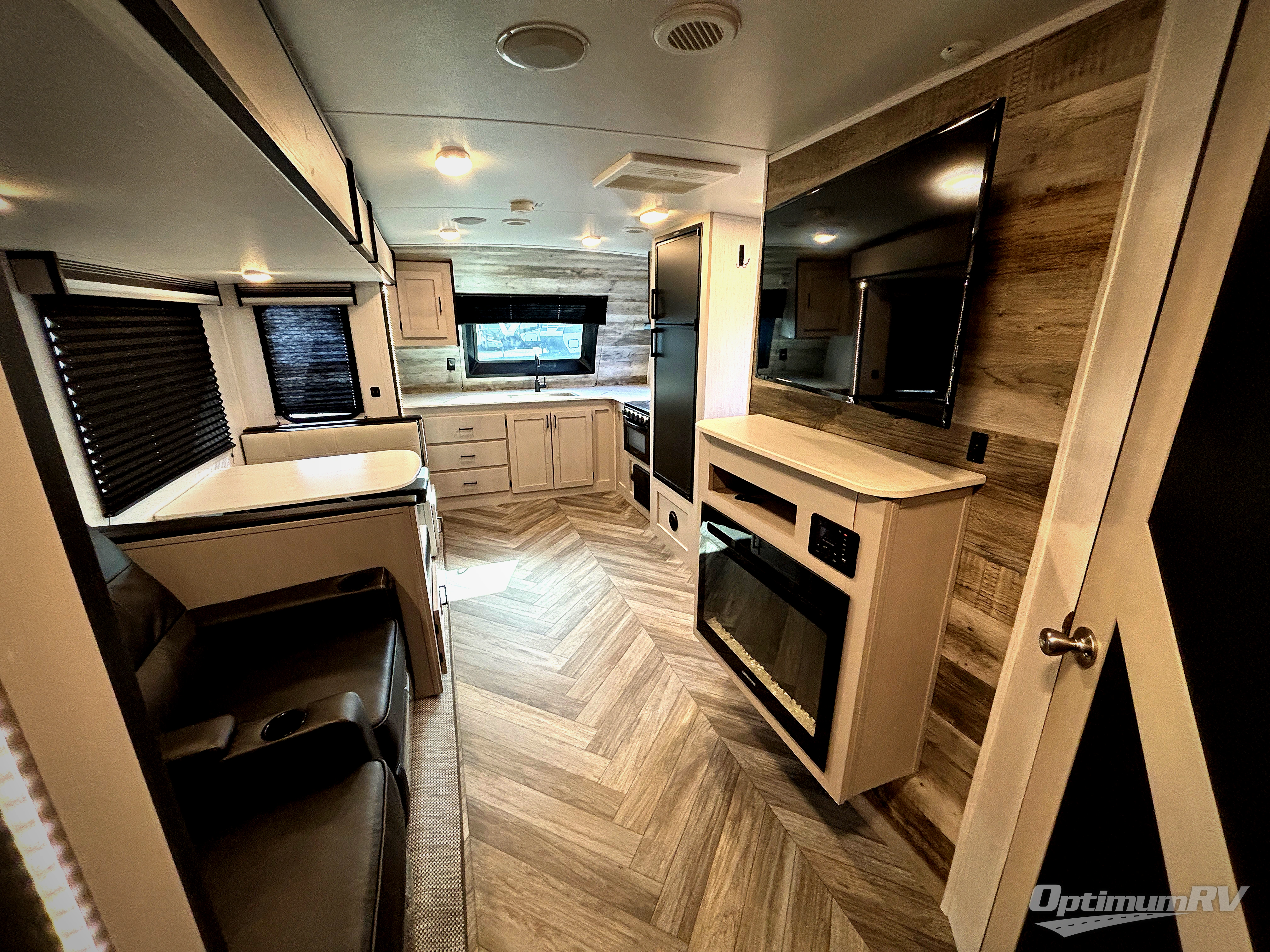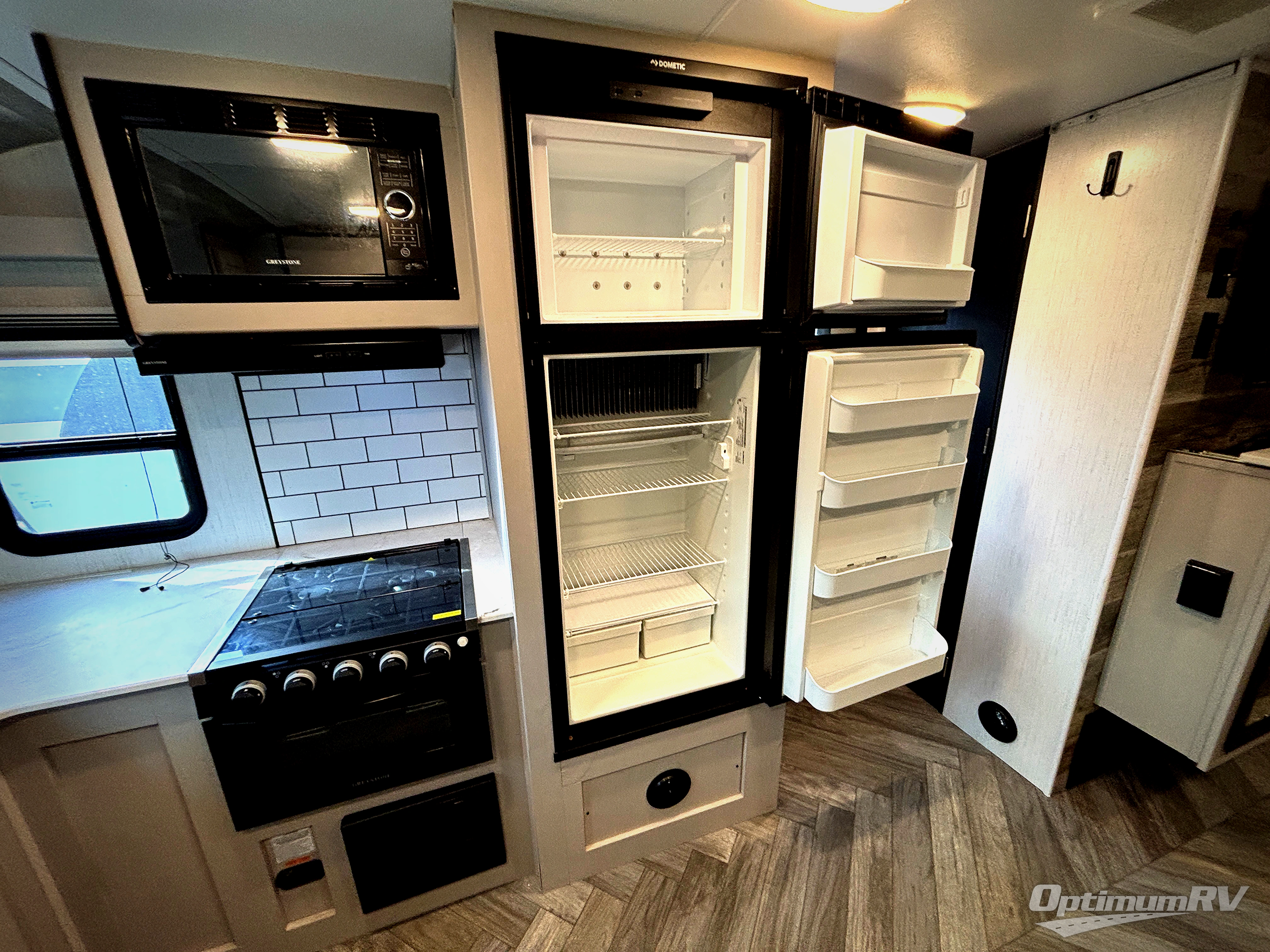 Dual entry doors in this travel trailer will allow you to enter in through the main living area/kitchen, or the rear master bedroom. You will love having a king bed to rest on each night, a wardrobe and closet to store your clothes, and a dual entry bath. After you've spent the day outdoors hiking or biking, plan to spend your evening relaxing on the sofa or playing a game at the booth dinette. The front kitchen includes plenty of counter space, two pantries, plus a three burner cooktop to cook meals on.