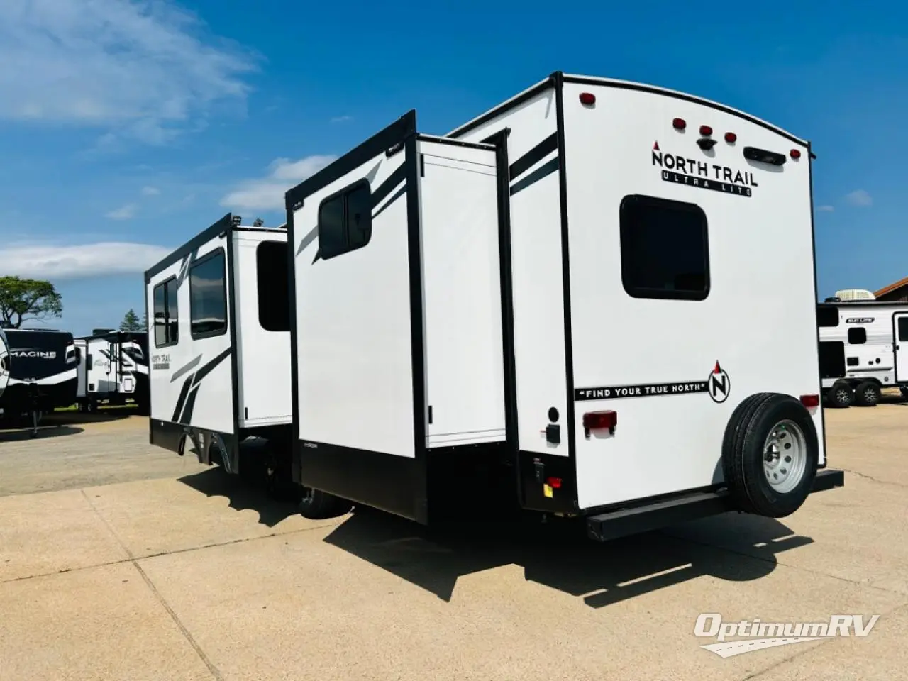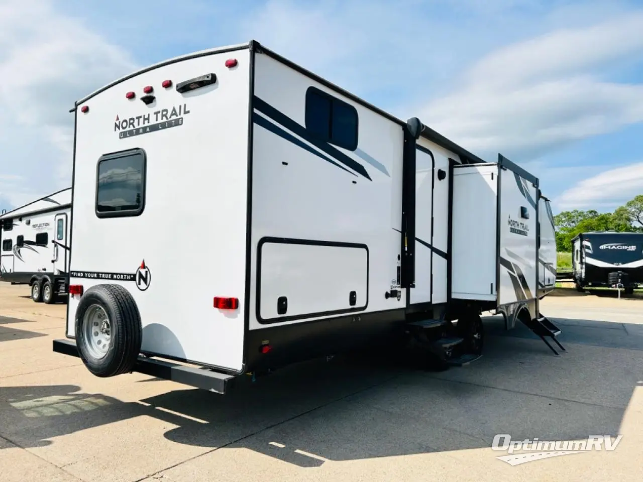 When you choose a North Trail travel trailer by Heartland you are choosing comfort, convenience, and quality craftsmanship at its best. The block foam brick insulation, enclosed and heated underbelly, plus Weather Guard thermal protection mean you can camp all year around. Each model features a Wide Trax suspension for a smooth ride, and the backup camera prep and solar prep make camping that much easier if you choose those options. Some of the other exterior features you will appreciate are the outside shower, the power stabilizer jacks and power tongue jack, and the outside speakers to keep the party going. Head inside to find stainless steel appliances, oversized windows, and premium flooring that is tear, slip, mold, mildew and cold crack resistant! You can't beat a North Trail travel trailer. Choose your favorite floorplan today!