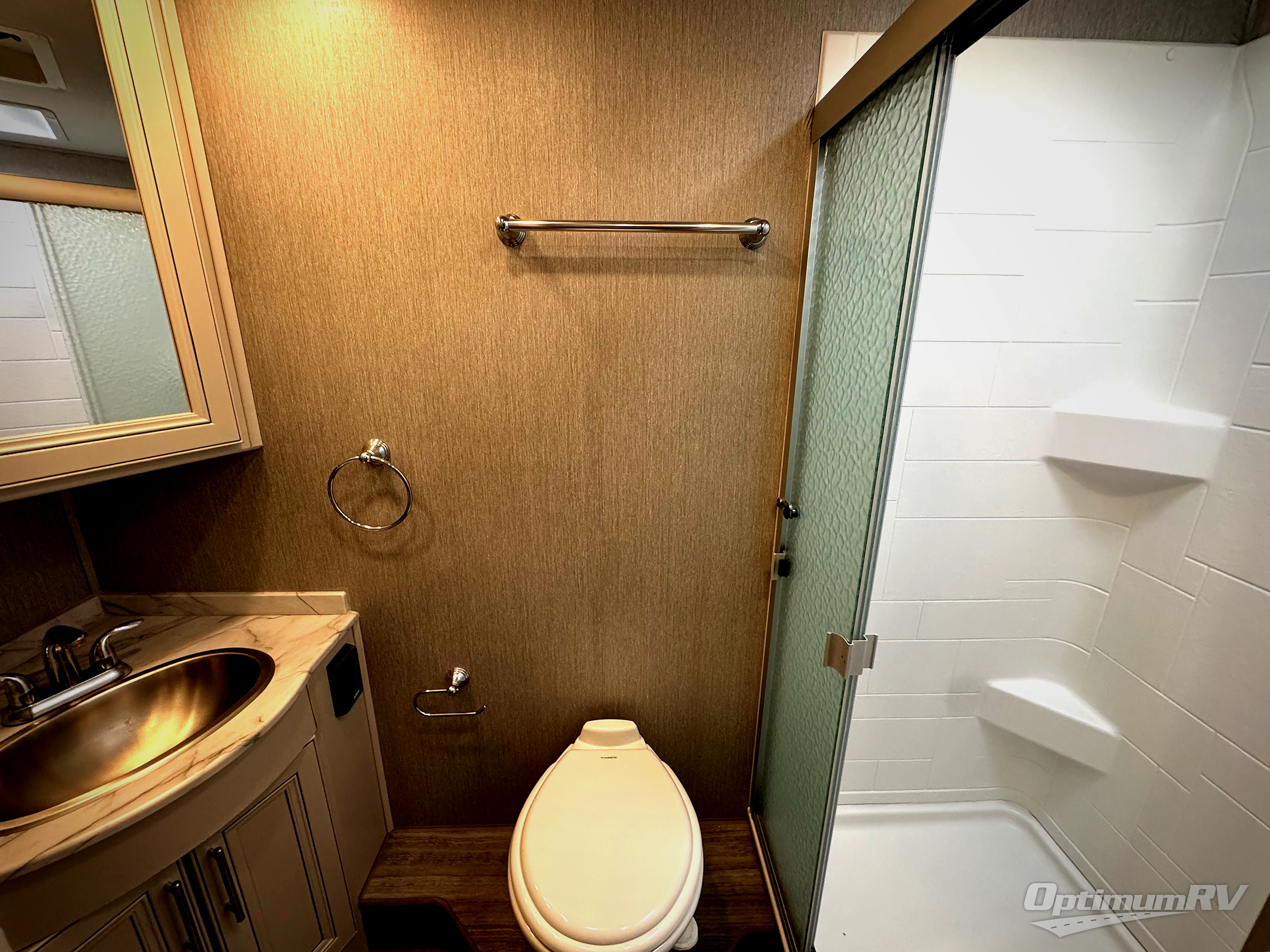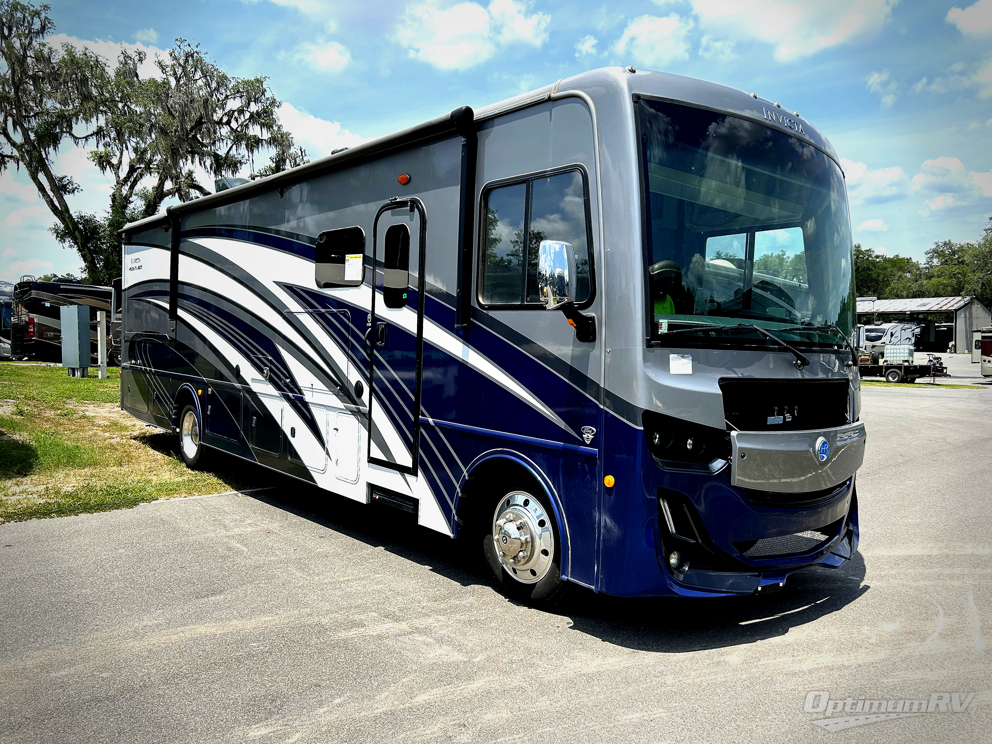 You can take one of these Holiday Rambler Invicta Class A gas motorhomes where ever your heart desires! With a 7.3L Triton V8 engine, a Ford F-53 chassis, an automatic transmission with overdrive and tow haul mode, and standard traction control, they can handle any curve or hill you throw their way. The auto head lights make it easy to see day or night and the electronic instrument panel clearly shows your gauges. The four point fully automatic hydraulic leveling jacks ensure a quick and even set up. Tow your vehicle with peace of mind thanks to the 8,000 lb. tow hitch rating, and easily view it from the remote power heated mirrors as you travel too. You won't even feel like you are traveling with all of the at home comforts throughout the inside. Come see which one best suits your needs today!