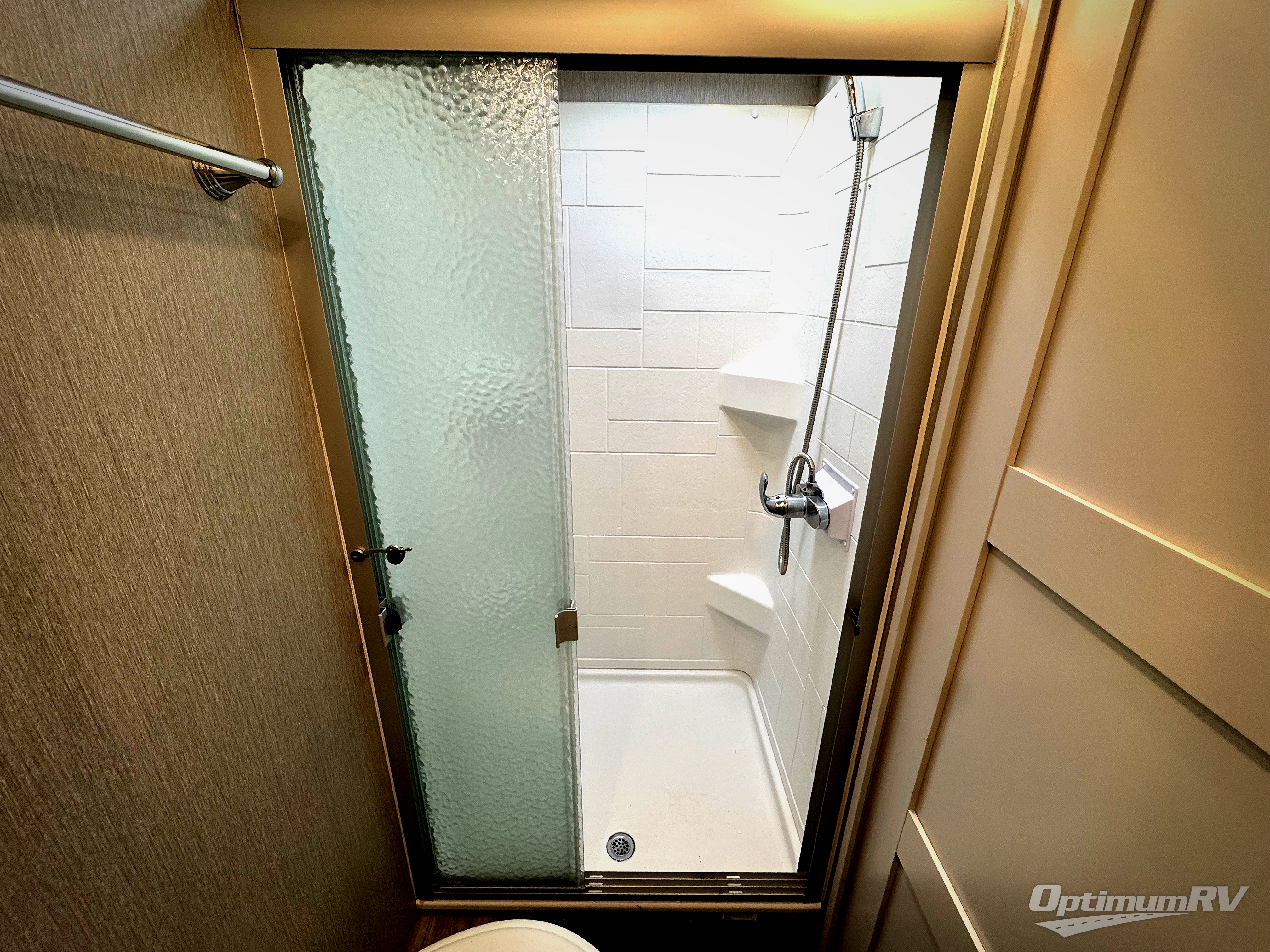 Start taking your best road trips in this motorhome! You will feel right at home sleeping in the rear private bedroom on the Serenity Series king bed slide with CPAP storage above it and a LED TV to watch movies in comfort, plus you have three wardrobes and a dresser for all of your clothes. Prepare your best home cooked meals with the three burner cooktop, store any leftovers in the stainless steel residential refrigerator, and pop a bag of popcorn in the stainless steel over the range convection microwave. Enjoy your meals in comfort at the Dream Dinette then play a card game, but if you're not one for games then you can relax on the jackknife sofa across from the fireplace with a LED smart TV above it!