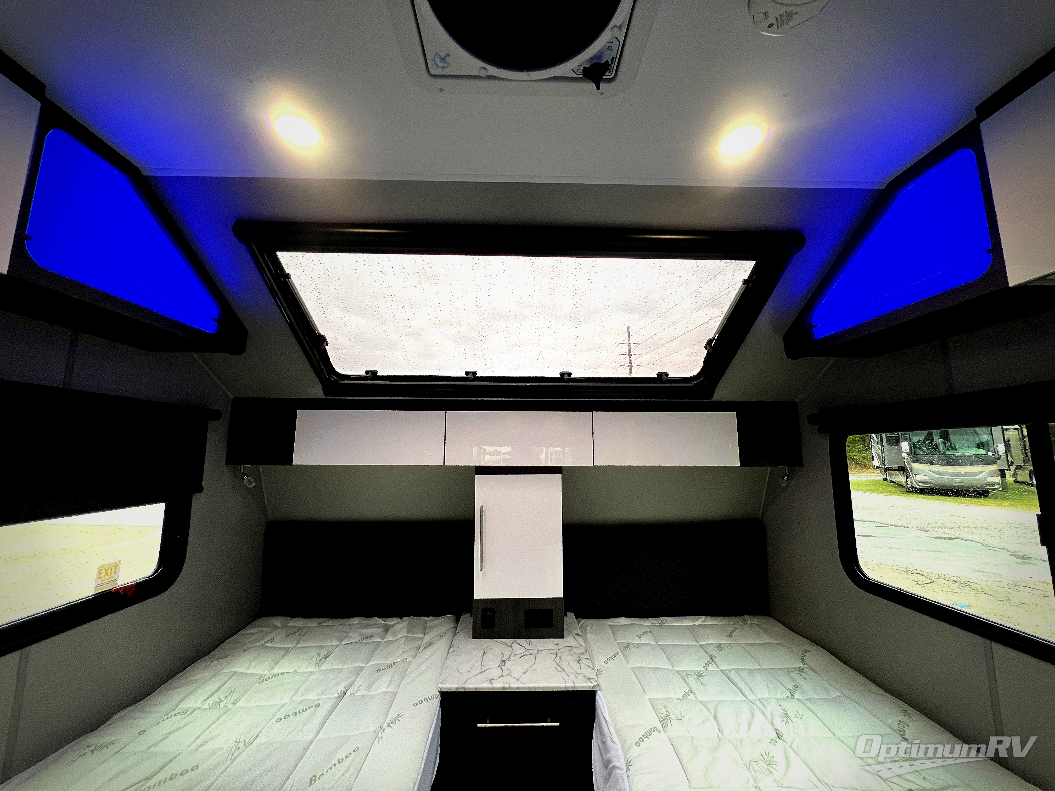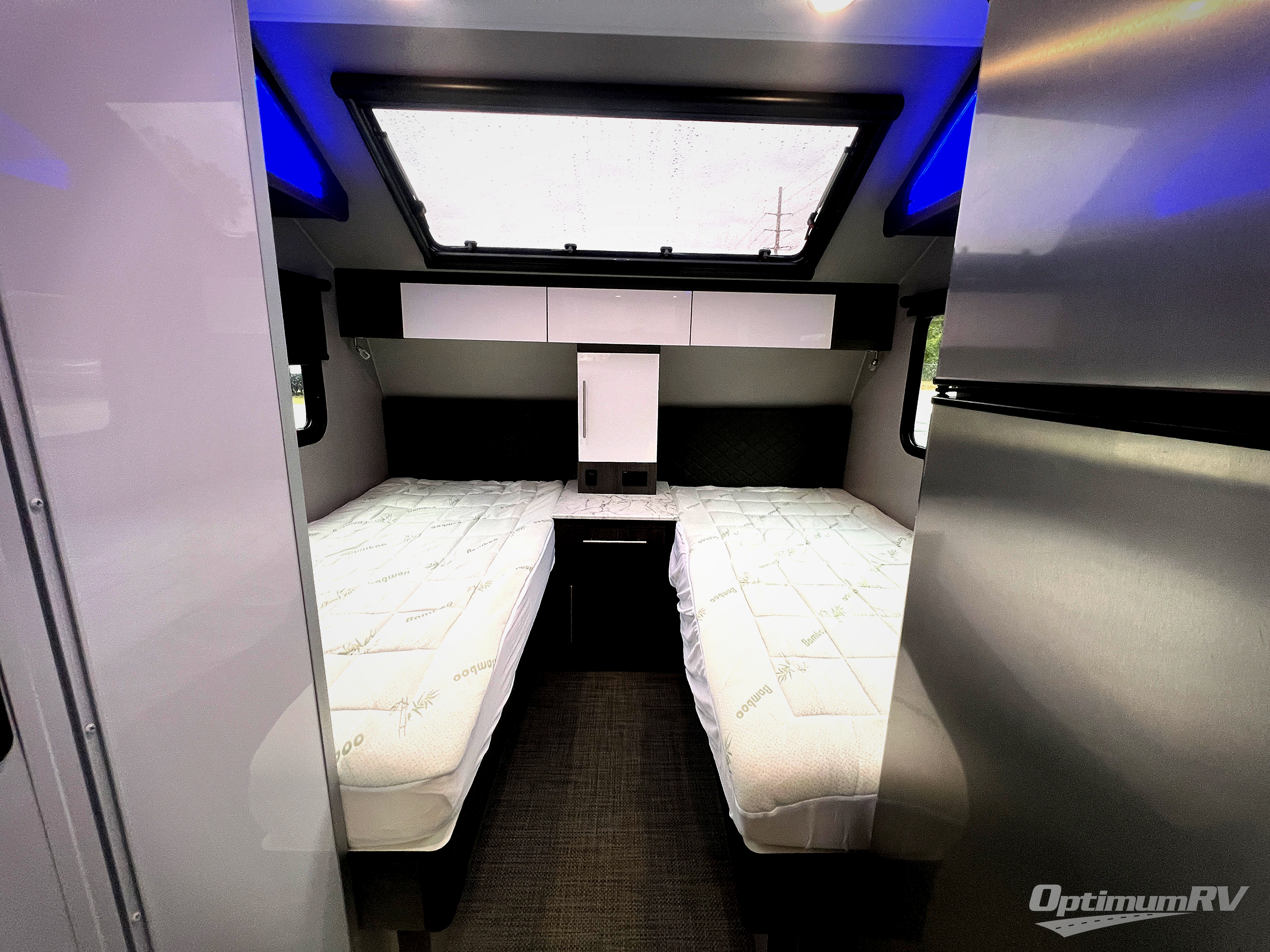 The O-R-V travel trailers and toy hauler by inTech RV allow you to experience adventure off the beaten path with its rugged exterior and lightweight construction provided by the all-aluminum fully welded cage frame. The power tongue jack will make setting up camp a breeze, plus there is a fold-away double entry step and exterior lighting for added convenience. Inside, you'll find a large farmhouse style sink, a MaxxAir vent for ventilation, plus infinity woven flooring. There is a Bluetooth stereo with four speakers and a 32" Smart TV included with each model, plus USB and 110V outlets to keep your electronics charged and ready to go. Further customize your O-V-R by adding the optional power awning or the optional solar package with 400 watts of solar power, 20 amp hours of lithium batteries, and a 2,000 watt inverter!