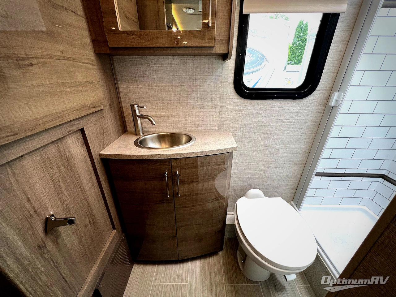 Each Melbourne Prestige Class C diesel motorhome by Jayco includes sidewall, rear wall and slide room walls that are bonded together with Stronghold VBL lamination to create the lightest, yet strongest construction available in the RV industry. There is also a one-piece, seamless front cap that resists wear and tear from years on the road. The interior offers an overhead bunk with 750 lbs. capacity which is way over the industry standard and allows for more overnight guests. And you will find seatbelts installed in every designed seating location to keep your favorite people safe. Other standout features include the JAYCOMMAND powered by Fireplay giving you full control of key operations from your phone or tablet, a Truma AquaGo Comfort Plus tankless water heater, a water filtration system, ball-bearing drawer guides, and an 80-inch interior ceiling height with a padded vinyl ceiling giving you more space to enjoy.