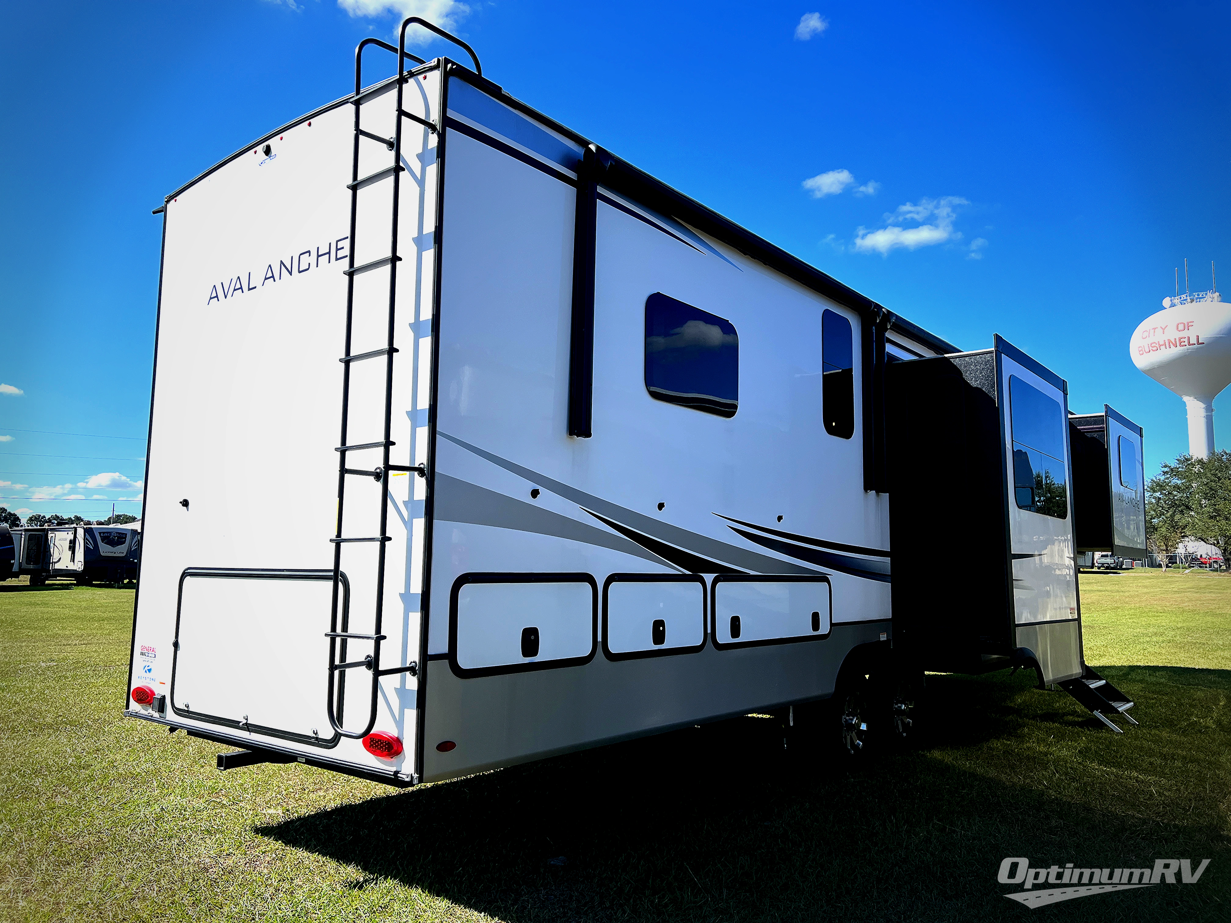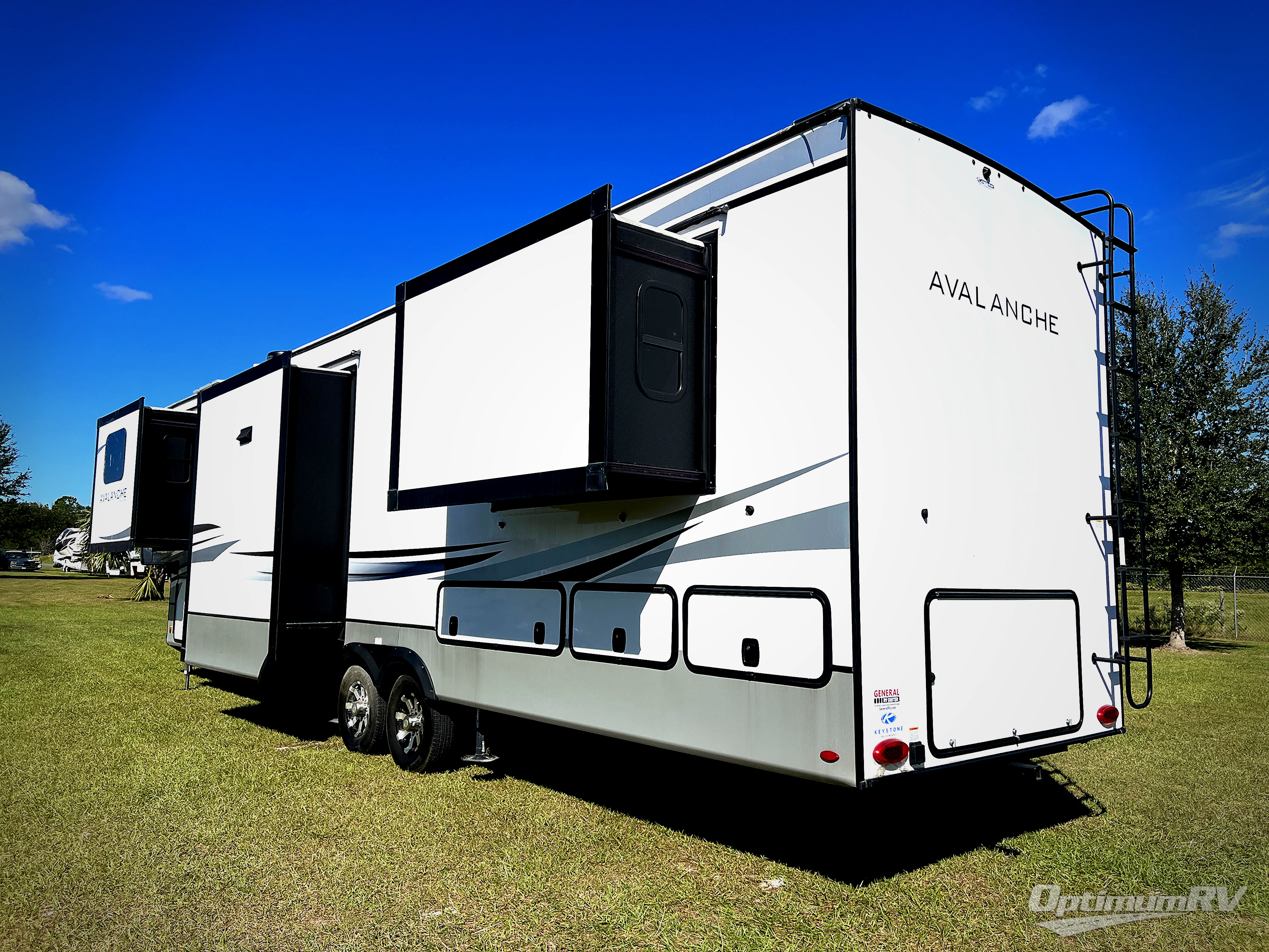 With any Keystone luxury full-profile Avalanche fifth wheel, you will experience wide-body construction that allows you to stretch out and stay awhile during any season thanks to the Polar Pack All Season Protection that includes a heated and enclosed underbelly, an Astro foil reflective layer on the roof, front and rear walls, and two static attic vents, plus more! The interior offers hardwood slide out fascia with wood accents, crown molding, plus your choice of modern interior design. There are many more Keystone exclusives, like the Tru-Fit slide construction, the in-floor heating ducts, the 4G LTE and Wi-Fi prep, and much more to bring you a full-packed, luxury fifth wheel!